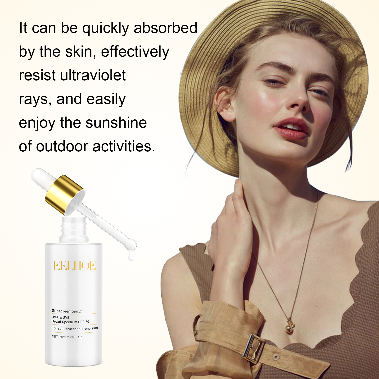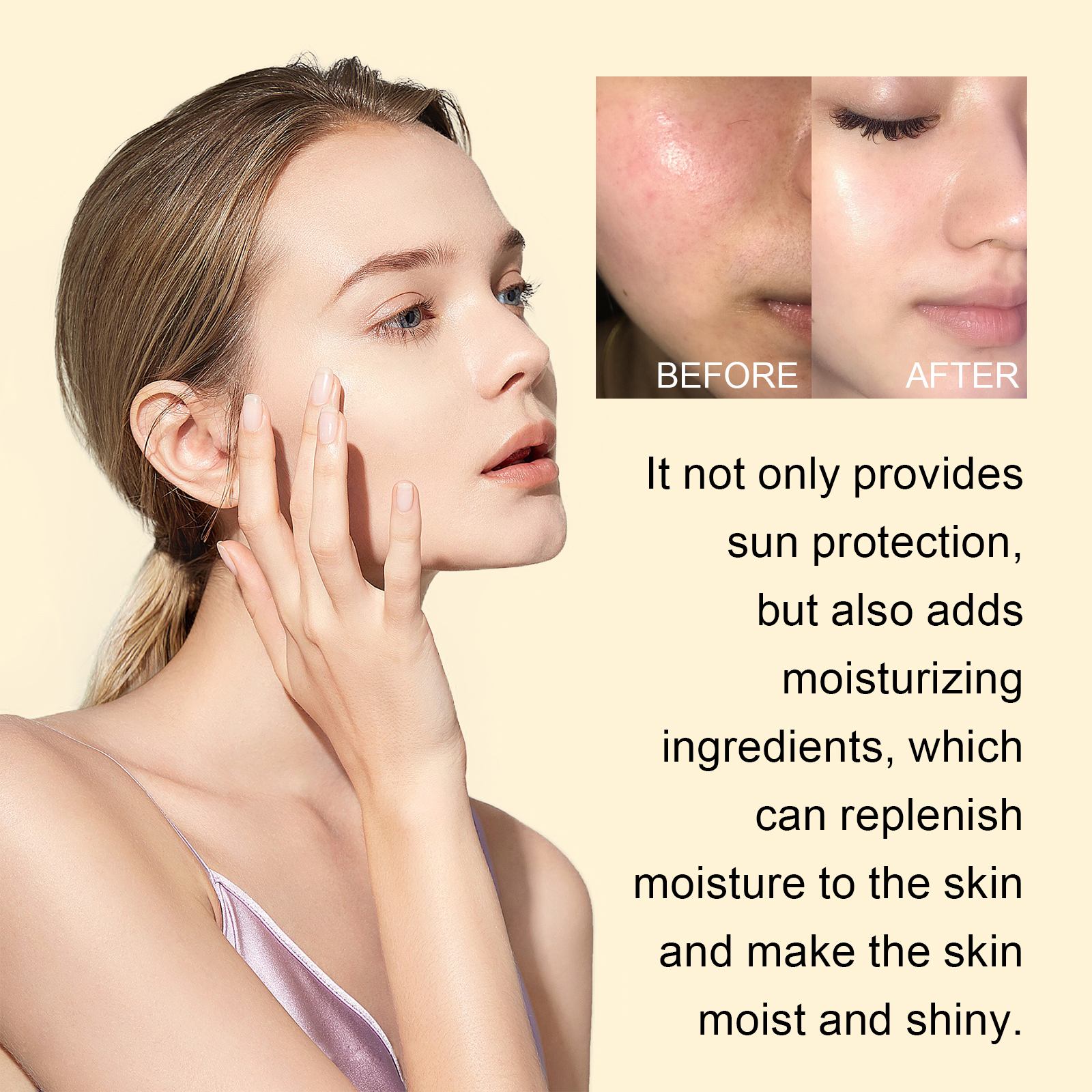 Our Sunscreen Serum contains Hyaluronic Acid, Ferulic Acid, Niacinamide. It can be quickly absorbed by the skin, effectively resist the ultraviolet light, and easily enjoy the sunshine outdoor activities, not only provides the sun protection function, but also adds moisturizing ingredients, can replenish the skin moisture, make the skin moist and shiny. Its use method is very simple: 15-20 minutes before going out, evenly apply the product on the face or body parts that need sunscreen massage until completely absorbed, natural film can be formed. If you need to apply makeup, use the makeup before applying it, and reapply it every 2-3 hours if you are exposed to the sun for a long time. It can repair sun damage, prevent skin aging, and replenish skin moisture.