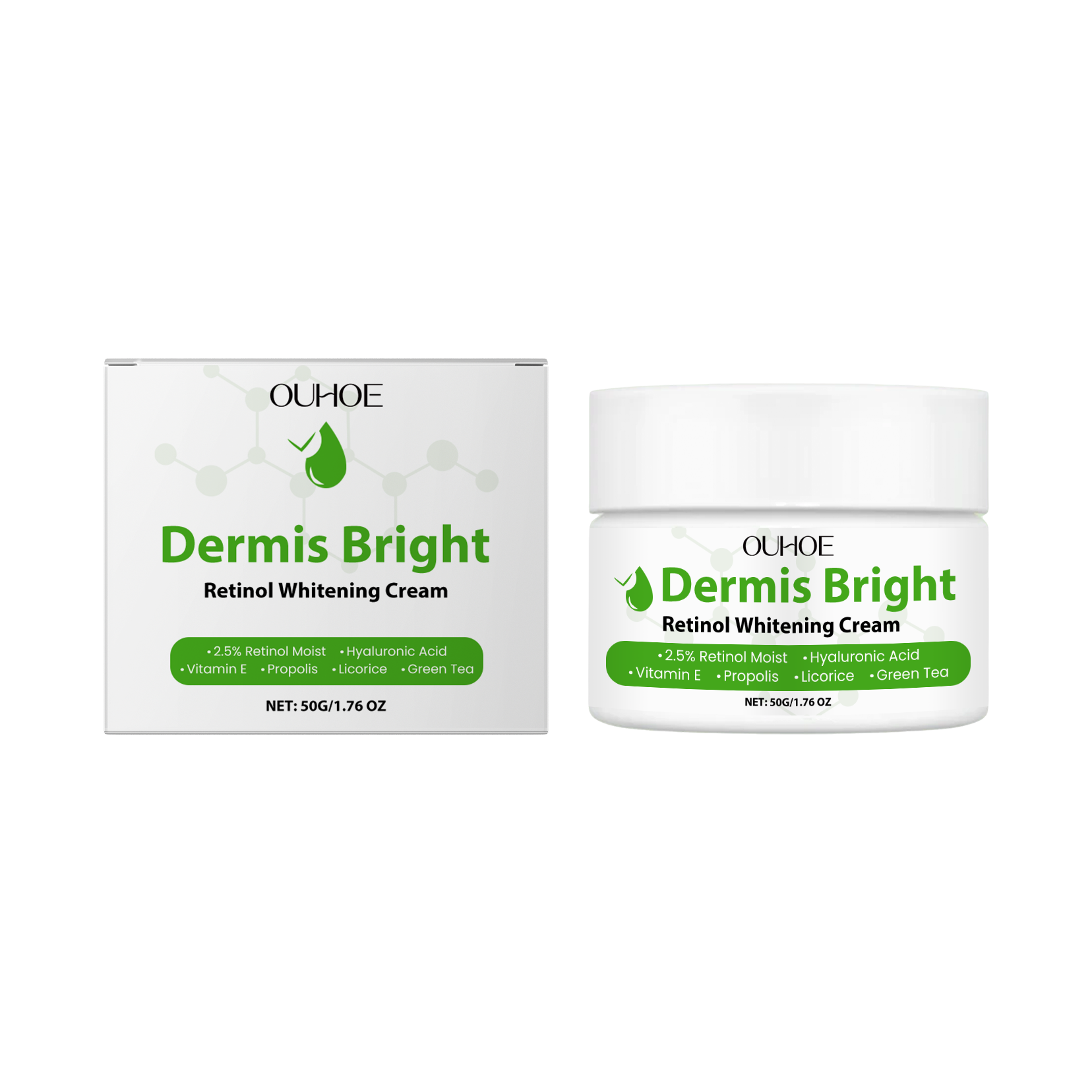 Our retinol brightening cream contains retinol, hyaluronic acid and tocopherol. It can effectively dilute melanin, reduce pigmentation, improve skin gloss, make skin more transparent and uniform, and brighten skin tone. Its application is simple: thoroughly clean and dry the skin. Apply appropriate amount of this product evenly on the face, elbows, knees, armpits and other skin parts. Massage gently to promote complete absorption. It can also remove dullness, restore skin luster, and make skin glow. Even out skin tone and make muscles look healthier and younger.