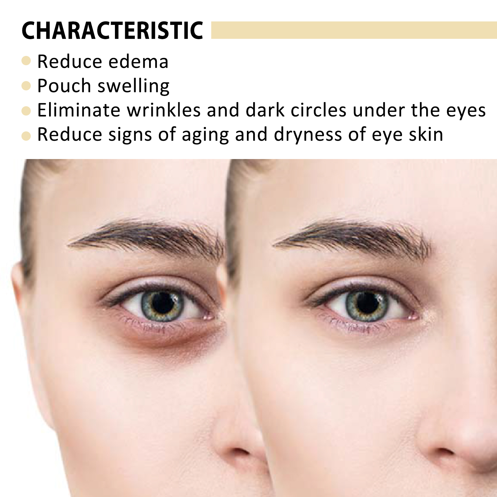 Our retinol eye mask contains aloe vera, retinol and soy. It helps fade fine lines. The way to use it is simple: 1. Clean your face and eyes with warm water. 2. Place the blindfold under your eyes and press gently to secure them. 3. Suitable for 15-20 minutes. 4. Remove the eye mask and clean your face with warm water. Anti-wrinkle moisturizing after use, lasting moisturizing. Natural ingredients provide long-lasting moisture to the skin around the eyes.