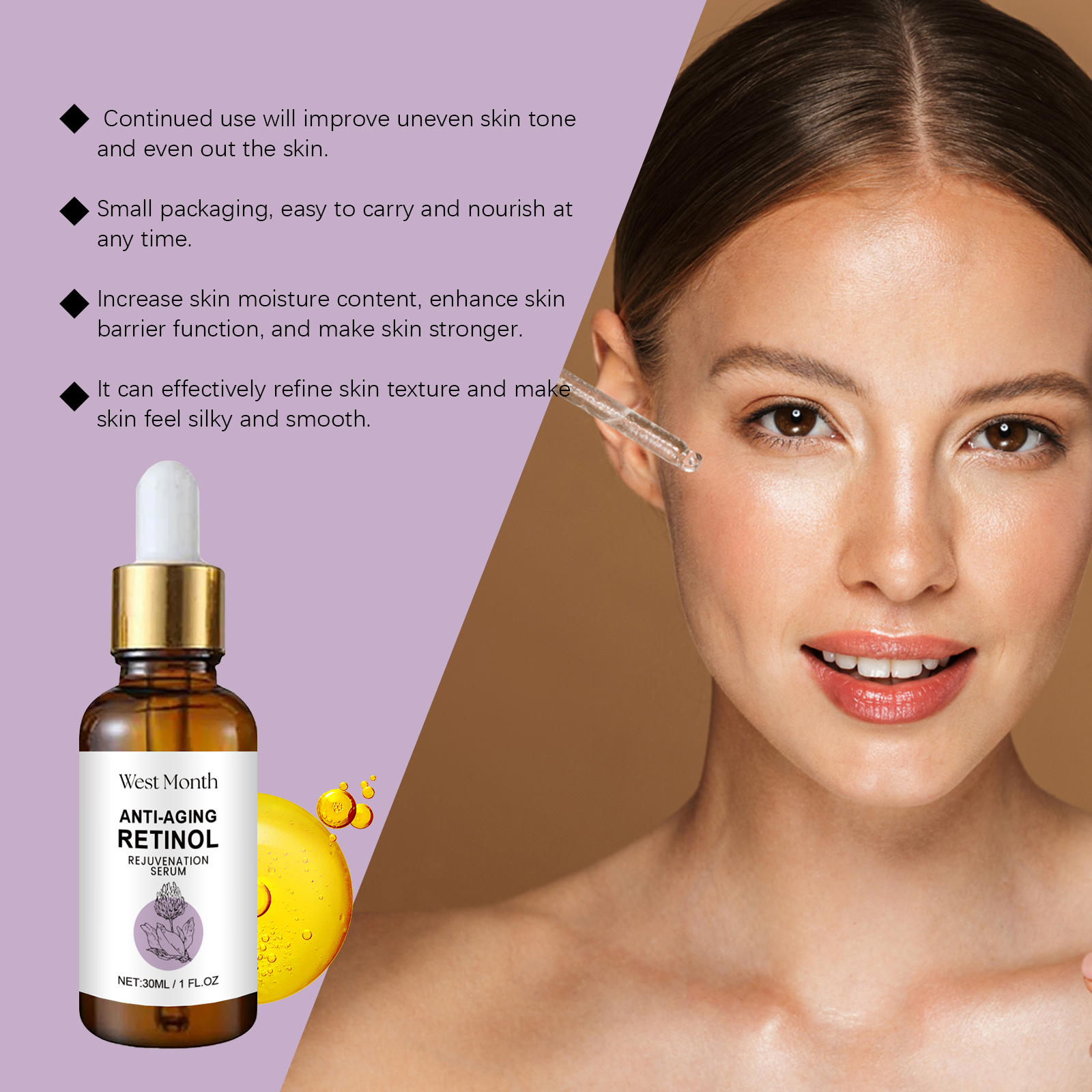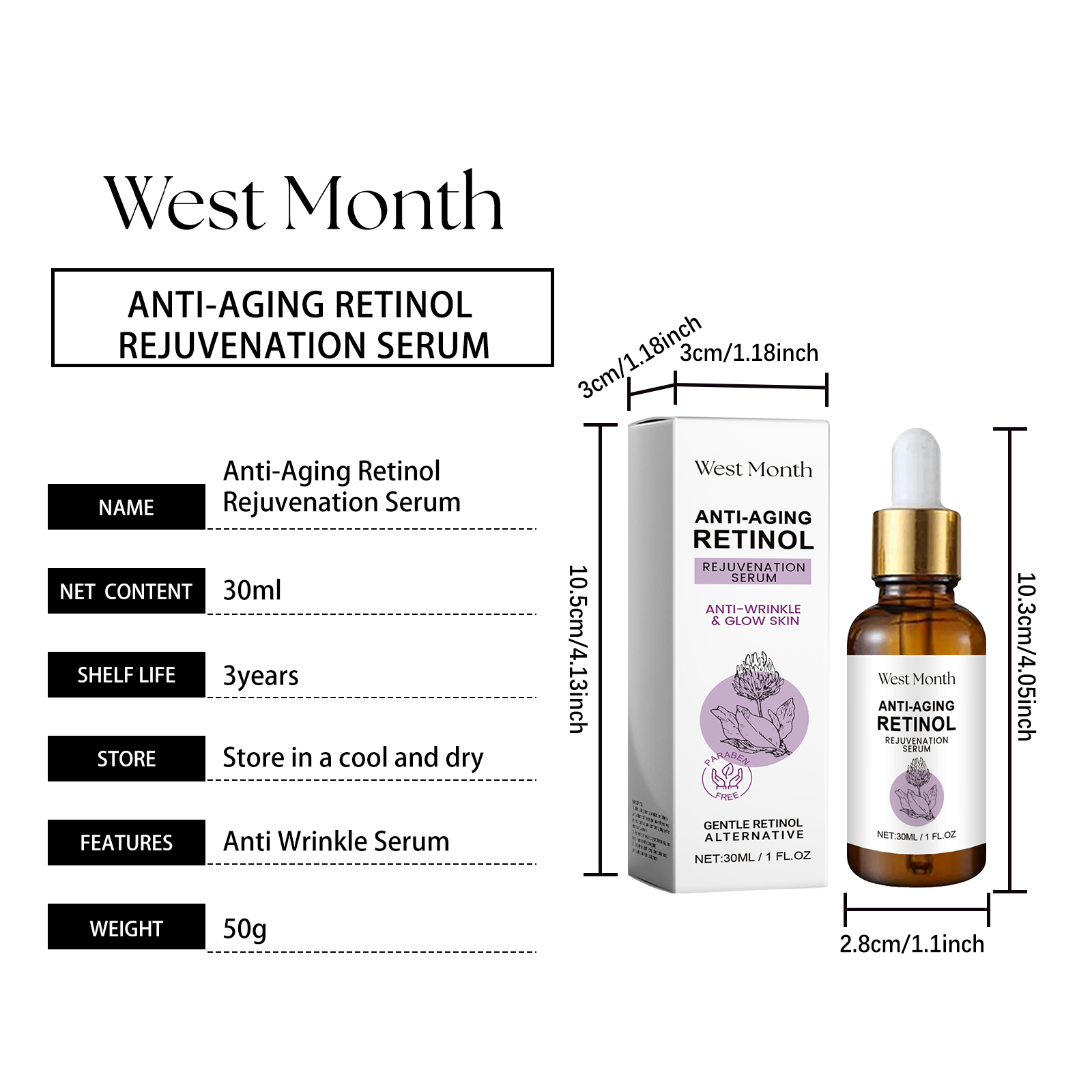 Our retinol eye serum contains triethanolamine, retinol and snowdrop extract. It can enhance skin elasticity and firmness, fill in fine lines, and restore smooth skin. Powerful antioxidants that protect skin from free radical damage and slow aging. Promote cell metabolism, accelerate skin renewal and reduce wrinkles. Its application method is simple: 1. Clean and dry facial skin; 2. Apply 3-5 drops of serum evenly to the face; 3. Gently massage until absorbed. Restore skin elasticity, firming and improving; Strong anti-oxidation, anti-external damage; Protect young skin.