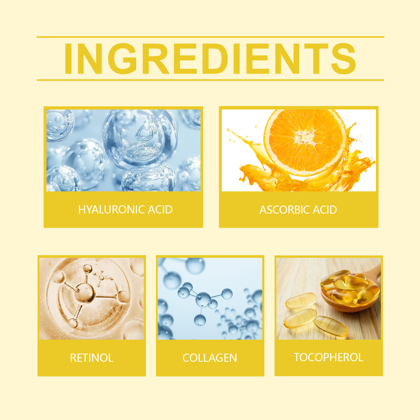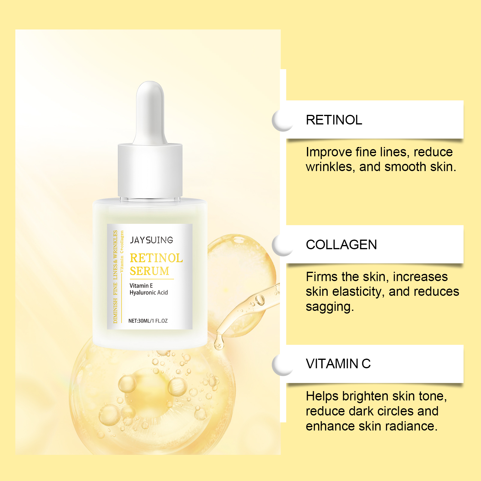 Our retinol firming serum contains ascorbic acid (vitamin C), tocopherol (vitamin E), and acetyl tripeptide-1. It can effectively reduce fine lines and wrinkles around the eyes and show smoother skin. Its application method is very simple: clean the facial skin to keep the skin dry, take an appropriate amount of essence, evenly apply on the facial skin, gently massage until completely absorbed. And can improve fine lines, reduce wrinkles, smooth the skin.