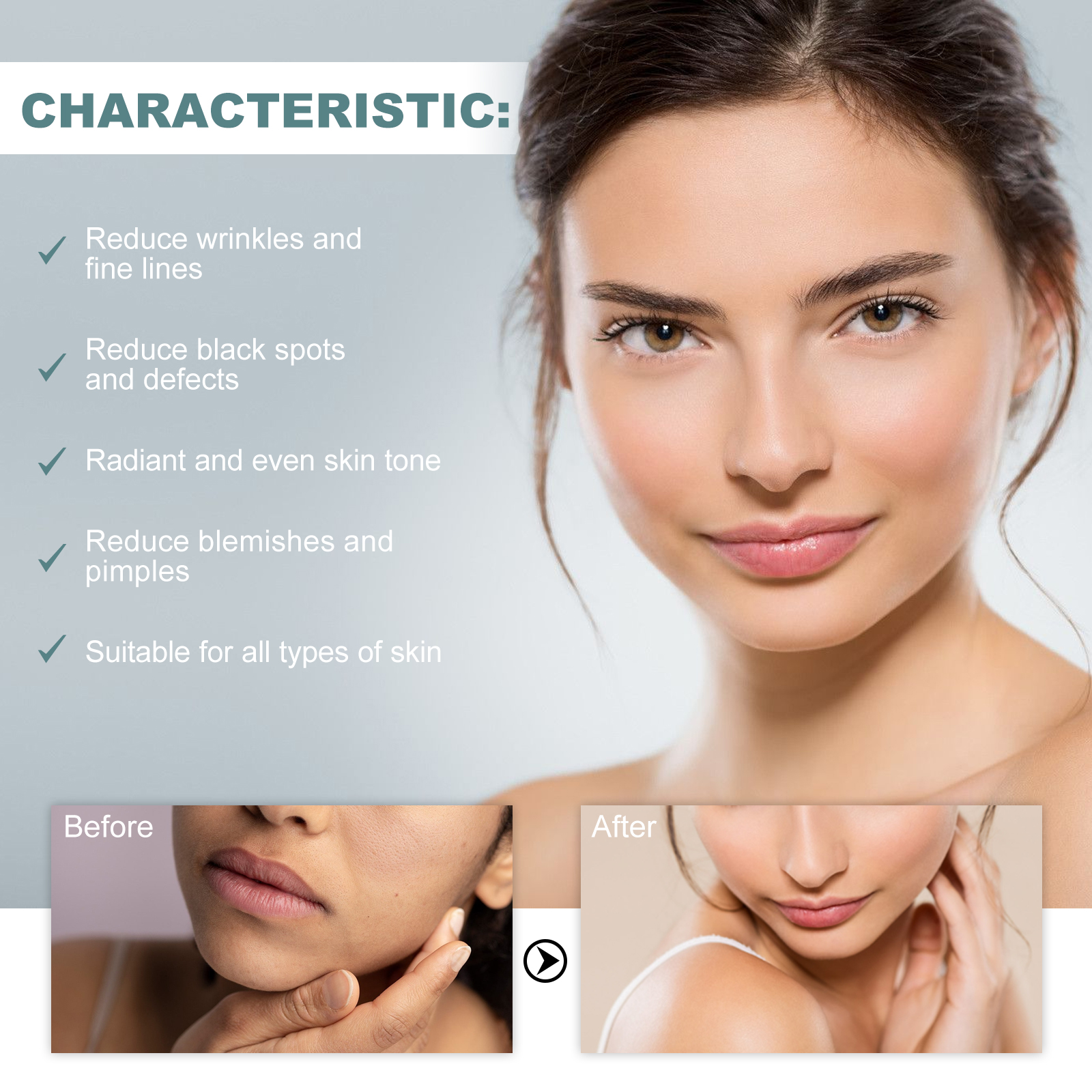 Our retinol serum contains retinol, acetyl hexapeptide-8. It reduces blemishes and pimples and moisturizes the face. Its use method is very simple: after cleansing and conditioning, take appropriate amount of essence evenly apply on the face, gently massage with your hand in circles, let it absorb. And can be suitable for all types of skin, suitable for moisturizing the eye area, neck, hand skin, etc., to make the face more youthful.