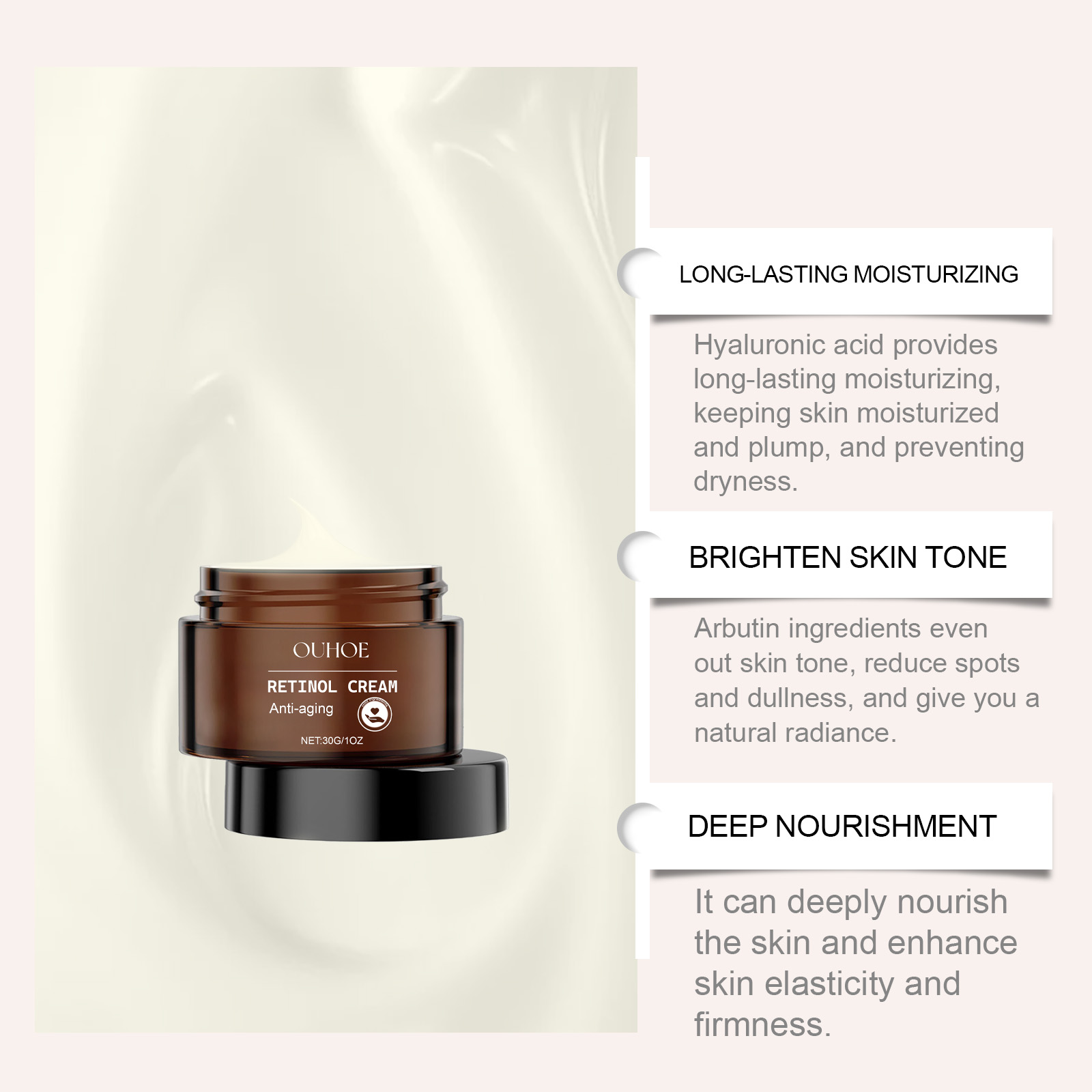 Retinol Wrinkle Reducing Cream Moisturizing Skin Smoothing Tightening Lifting Cream