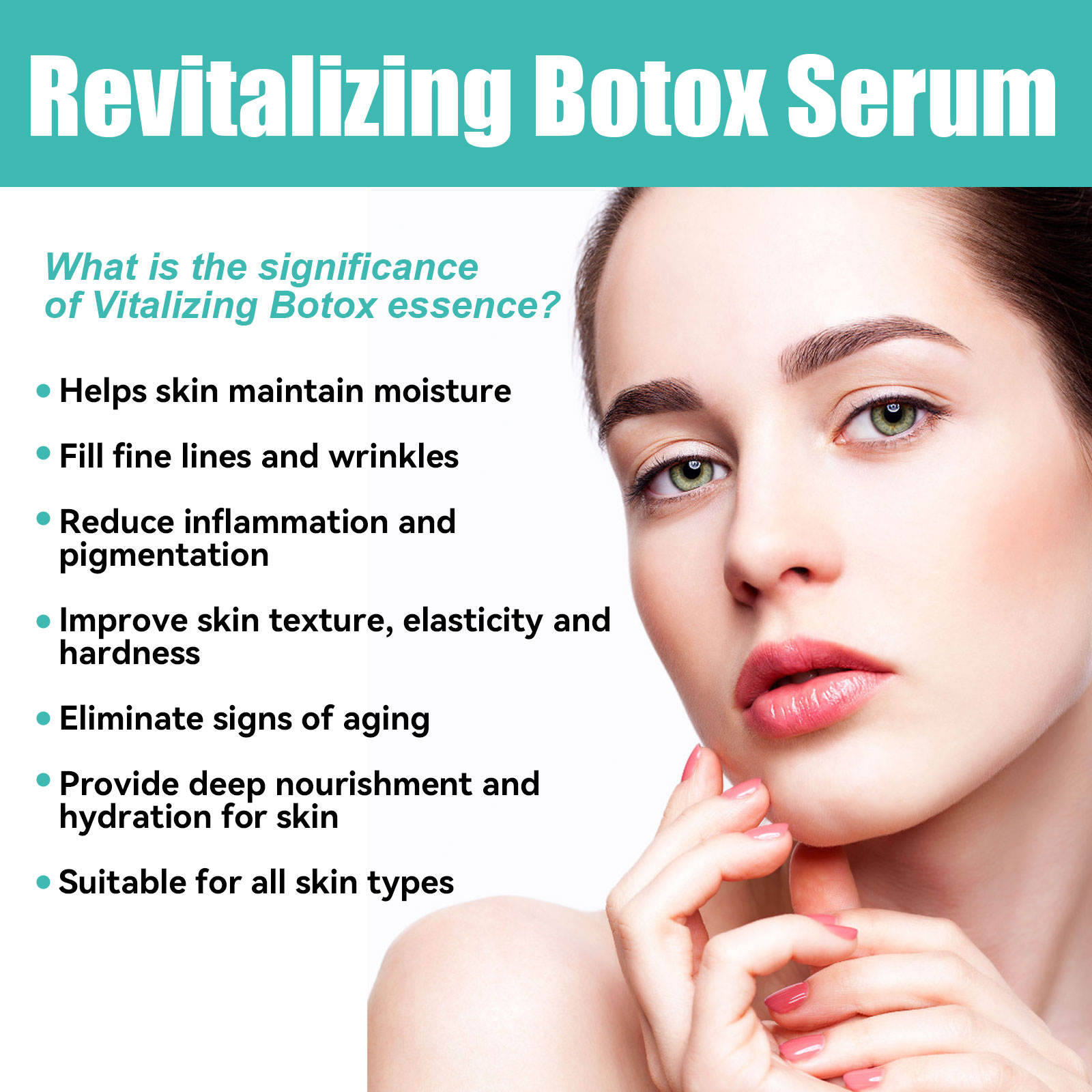 Our revitalizing face serum contains oligopeptide-1, hyaluronic acid, and hexapeptide-1. It helps the skin retain moisture and eliminates fine lines and wrinkles; Reduces inflammation and pigmentation; Improves skin texture, elasticity and firmness. Its application is simple: apply two to three drops of essence to the face and neck and massage upward and outward until absorbed. For best results, repeat this process twice a day, once in the morning and once in the evening. Eliminate signs of aging, provide deep nutrients and moisture to the skin, suitable for all skin types.