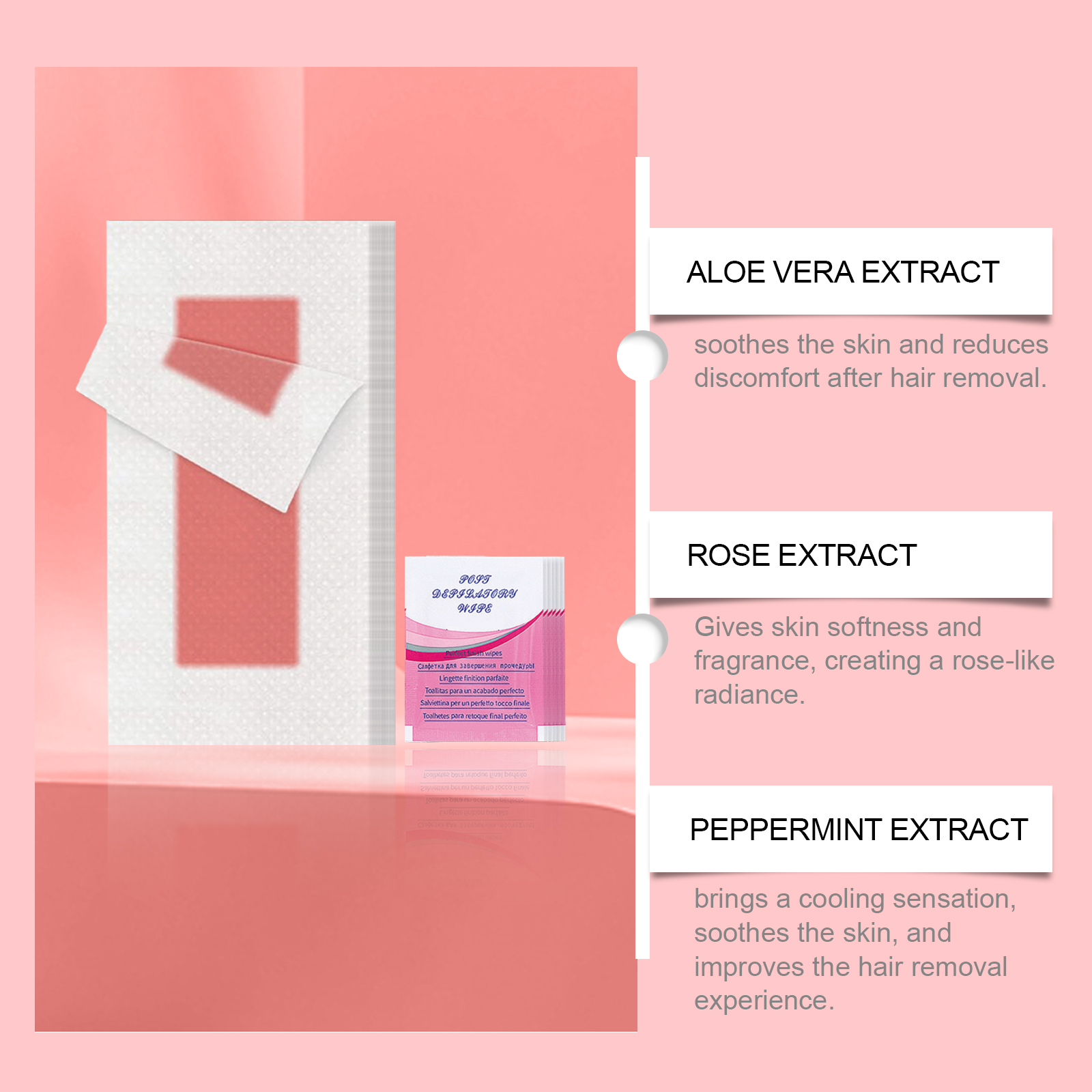 Our Rose Mild Facial hair removal strips contain glycerin, aloe vera extract, rose extract. It penetrates into pores and removes hair completely. Stick to the contours of the face and remove hair more thoroughly. How to use it is simple: 1. Clean and dry your face. Take a wax strip and apply it to the area where hair needs to be removed; 2. Pull your hair down in the direction it grows. 3. Gently wipe the hair removal area with moisturizing cotton. Say goodbye to tedious waxing with a single tear.
