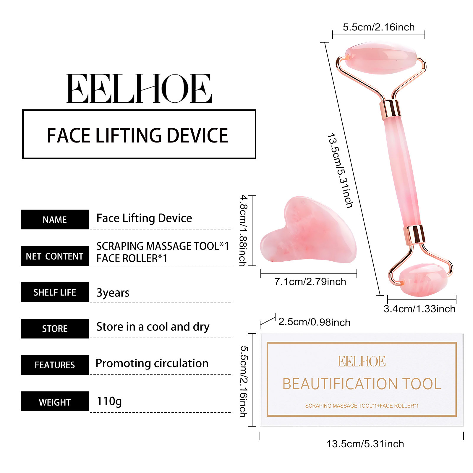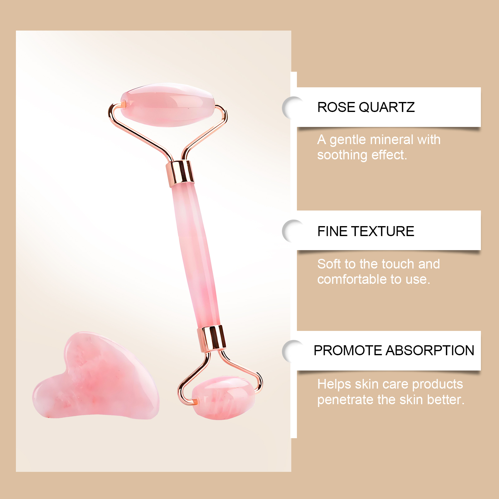Rose Quartz Roller Massager Set Skin Relaxation Facial Tightening Skincare Massager