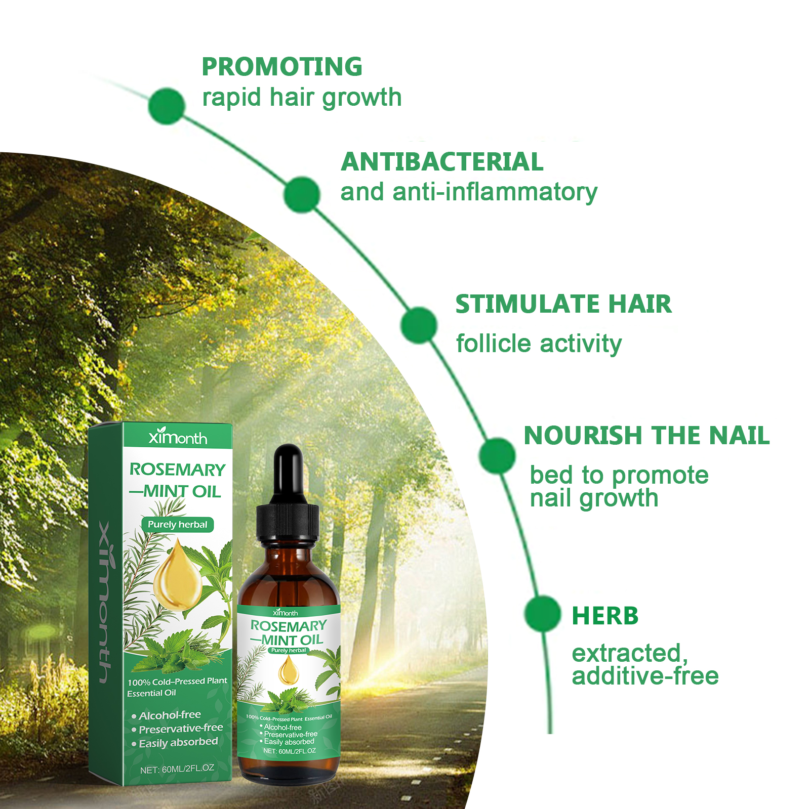 Our Rosemary Mint Oil contains Rosmarinus Officinalis(Rosemary) Leaf Extract, Mentha Piperita(Peppermint)Leaf Extract, Butyrospermum Parkii(Shea) Oil. It can eliminate nail and toenail fungal infections, repair and renew damaged nails, effectively maintain the strength and beauty of nails, enhance the natural shine of nails and rejuvenate them. The way to use it is very simple: wash and dry your nails or hair first, take 1-2 drops of essence, apply to the desired part, and gently massage until absorbed. Can help nourish and replenish hair moisture, improve scalp health, can be used to strengthen nails, help you recover damaged nails, and promote healthy nail renewal.