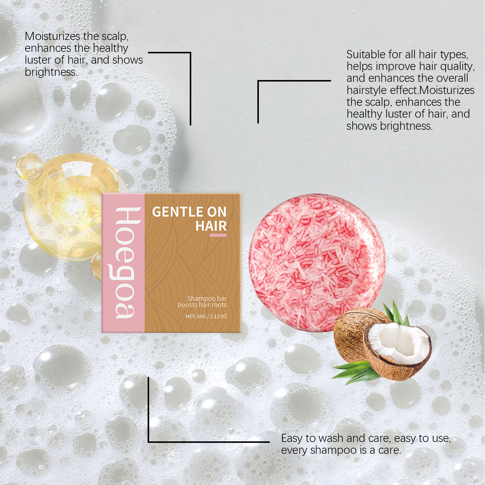 Our rosemary shampoo soap contains Polygonum multiflorum extract, rosemary leaf extract and lilacum extract. It can provide a full range of scalp care, promote hair growth and prevent hair loss. Its use is simple: wet your hair with warm water and rub the soap in the palm of your hand: bubbles are formed. Wash your hair and scalp in gentle circular motions. Flush the bubbles with warm water. And it can enhance the strength of the hair roots, making the hair more elastic and elastic.