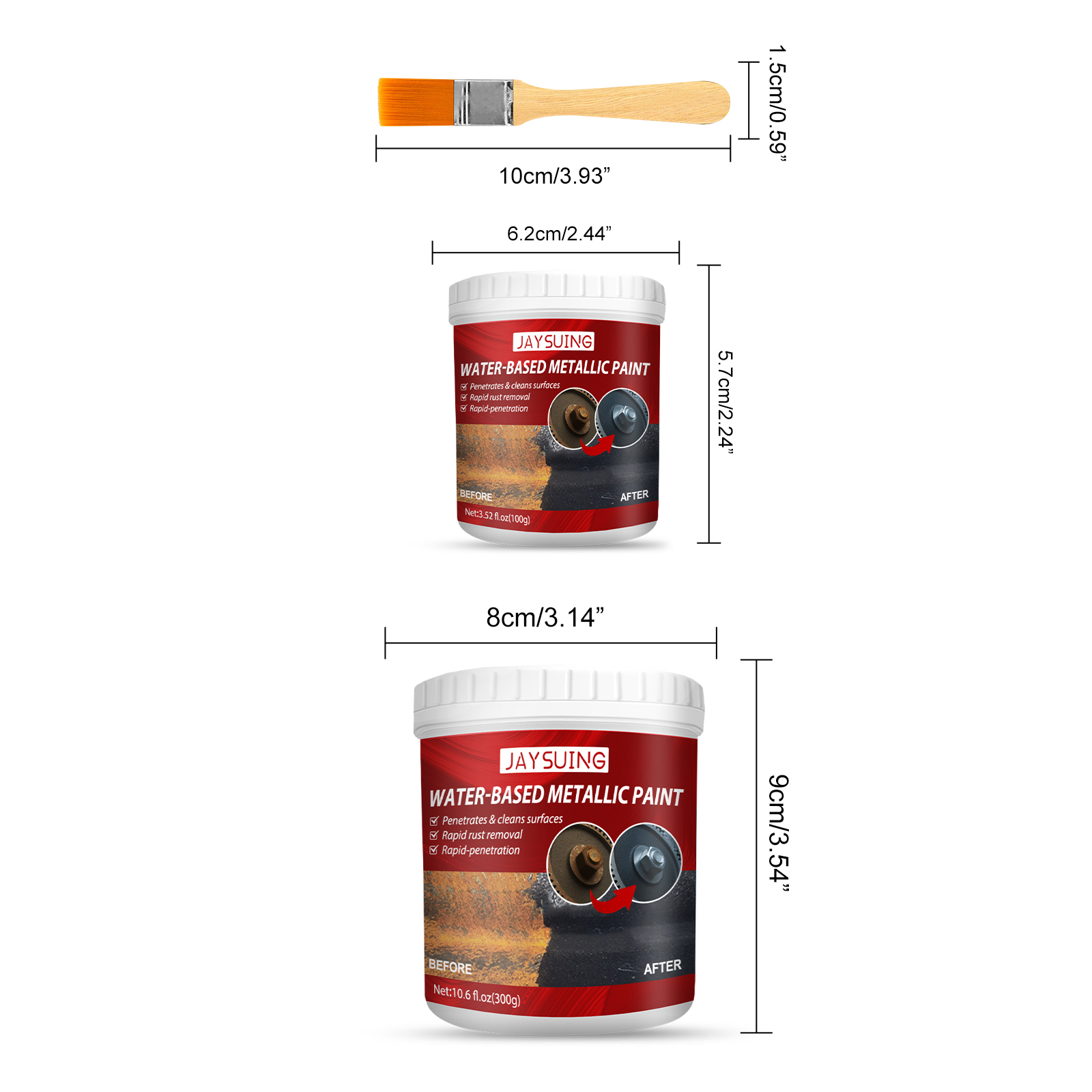 Our rust free primer contains citric acid and sodium gluconate. It can leave a thin composite film that sticks to the metal for months. Protect the metal surface from oxidation! Its use method is very simple: remove the floating dust oil stains and rust stains that are easy to fall off the surface of the painted object. After cleaning, paint the metal surface. After applying anti-rust paint, the original rust is transformed into a composite film with strong adhesion. Wait 10 minutes for the rust to turn into a black primer. And can restore luster, prevent rust again. Suitable for cars and homes.