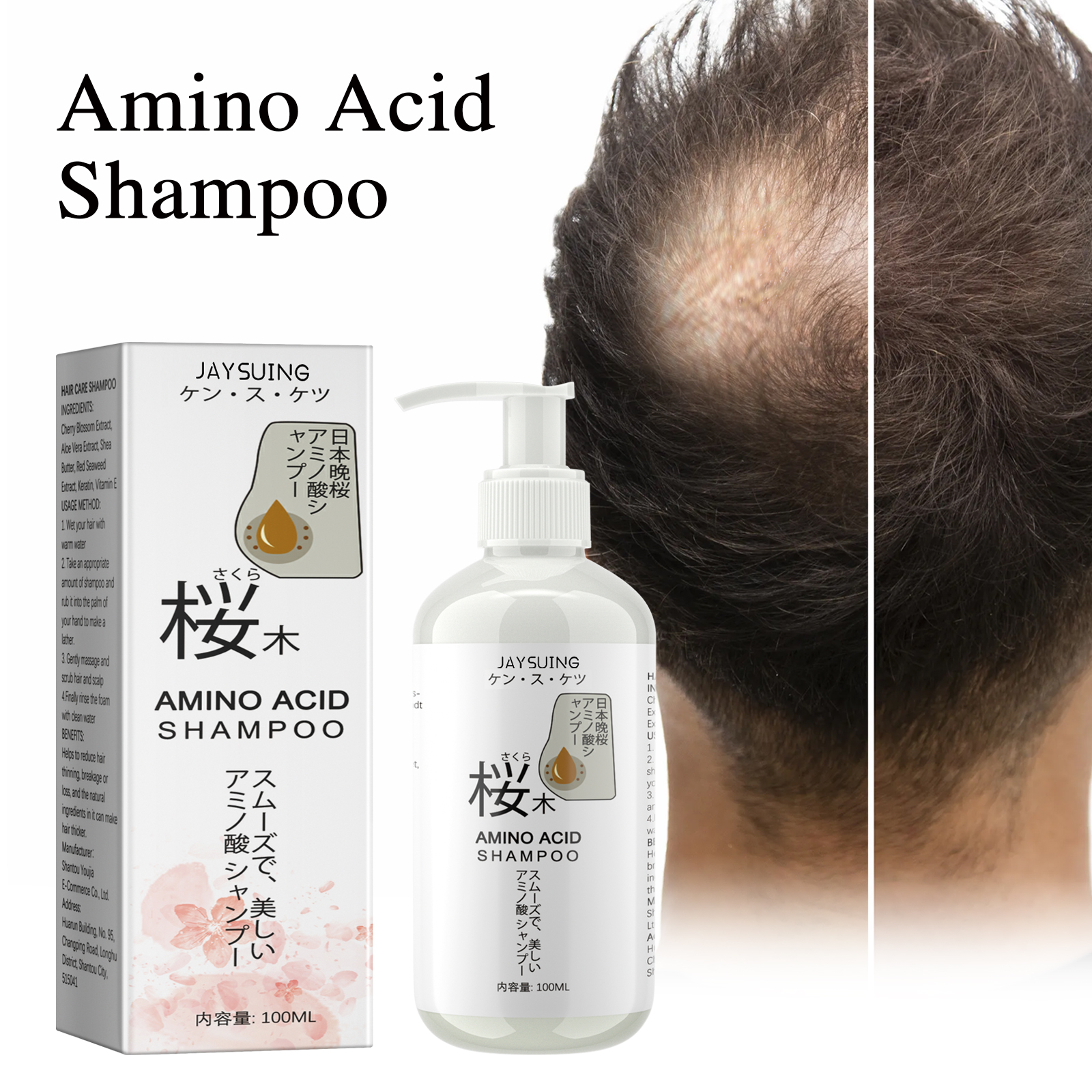 Our cherry blossom shampoo contains keratin and vitamin E. It can improve the texture and texture of hair, increase its volume, and improve its appearance. The way to use it is simple: 1. Wet your hair with warm water. 2. Take proper amount of shampoo and rub it into your palm to make it lather. 3. Gently massage and scrub your hair and scalp. 4. Finally rinse the foam with water. And it can soften and moisturize the hair.