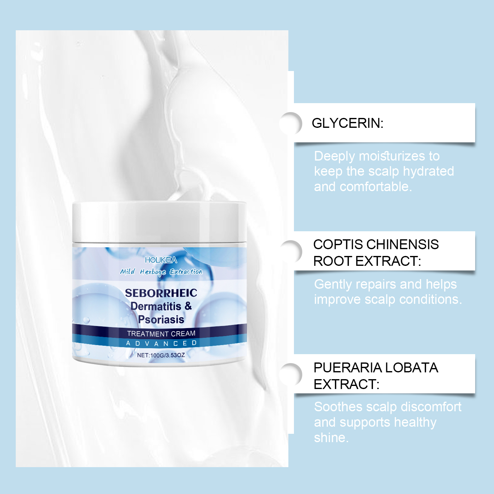 Our scalp cream contains coptis root and Jojoba oil. It can help relieve itching and burning sensations, making the scalp more comfortable. Improves dandruff problems for a fresh, clean feeling. Its application is simple: simply apply it directly to the scalp area and gently massage until it is fully absorbed. It also provides long-lasting moisture, keeping the scalp moisturized and tender.