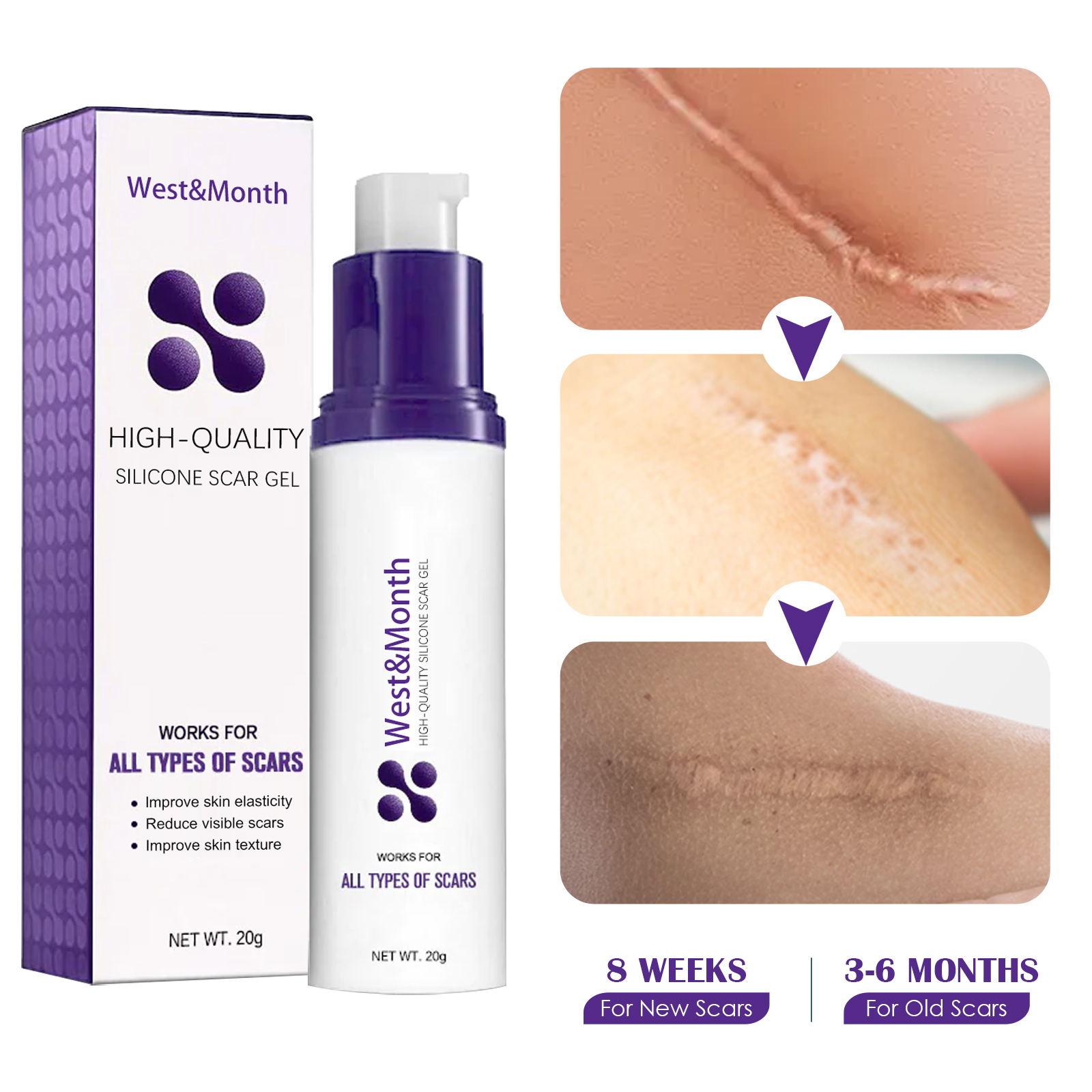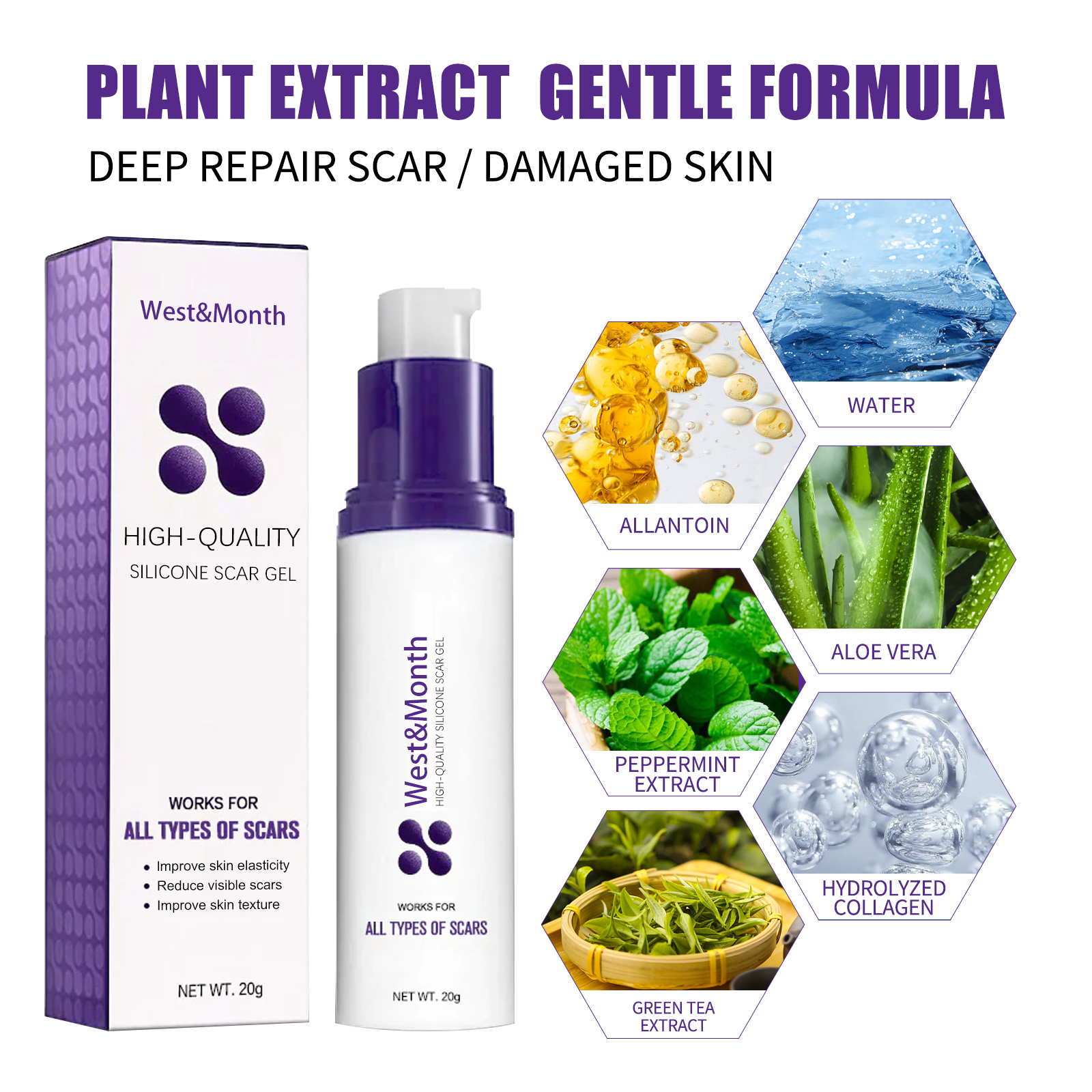 Our High-quality Silicone Scar Gel contains peppermint extract, allantoin, hydrolyzed collagen. It can moisturize skin, soften scar tissue, reduce melanin precipitation, promote skin metabolism, and improve tissue metabolism of necrotic tissue. Its use method is very simple: wash and dry the skin of the scar, to the appropriate amount of repair cream gently massage along the circumference of the hand until completely absorbed, adhere to daily use, the effect is better. Mild, odorless, invisible repair, reduce redness, soften and smooth scars.