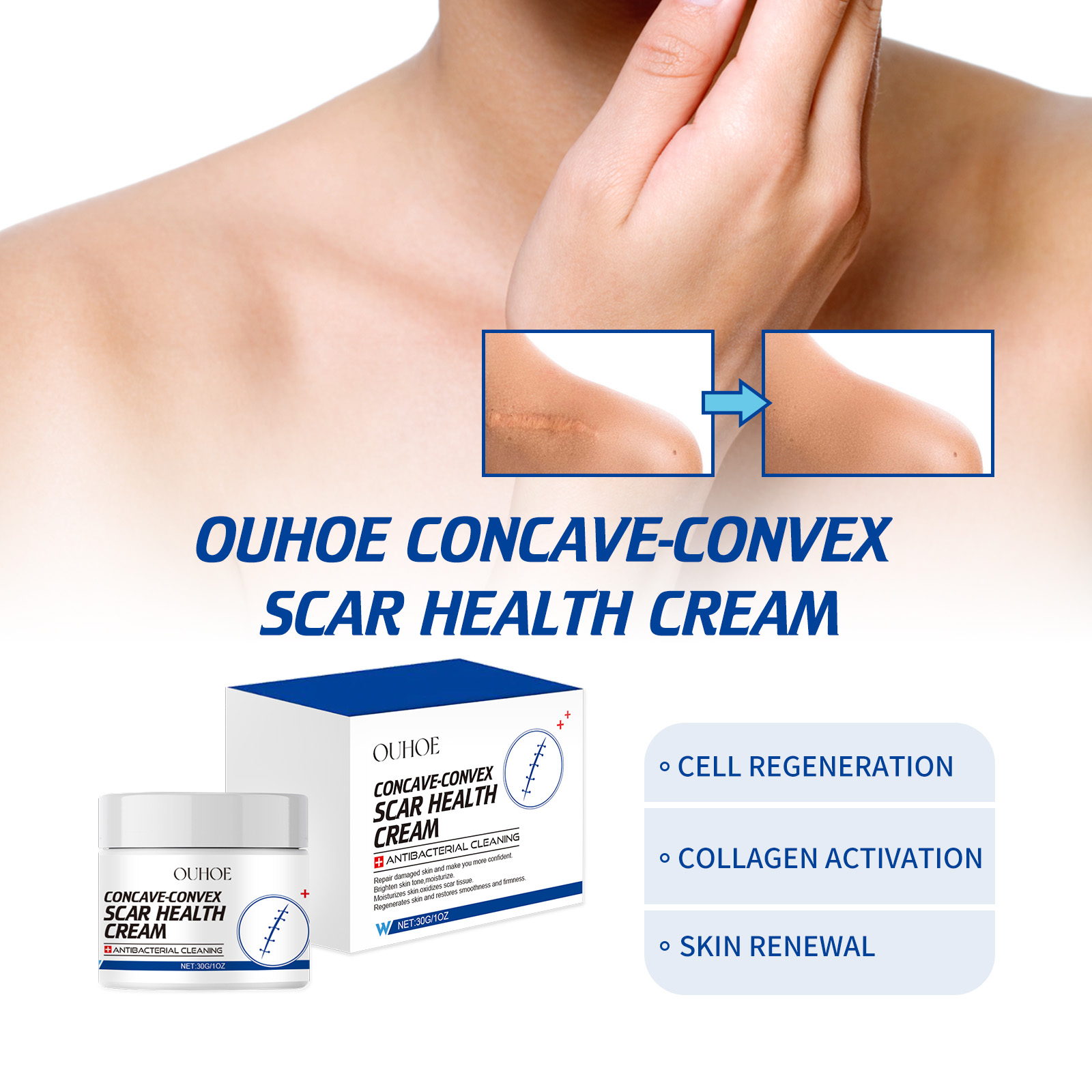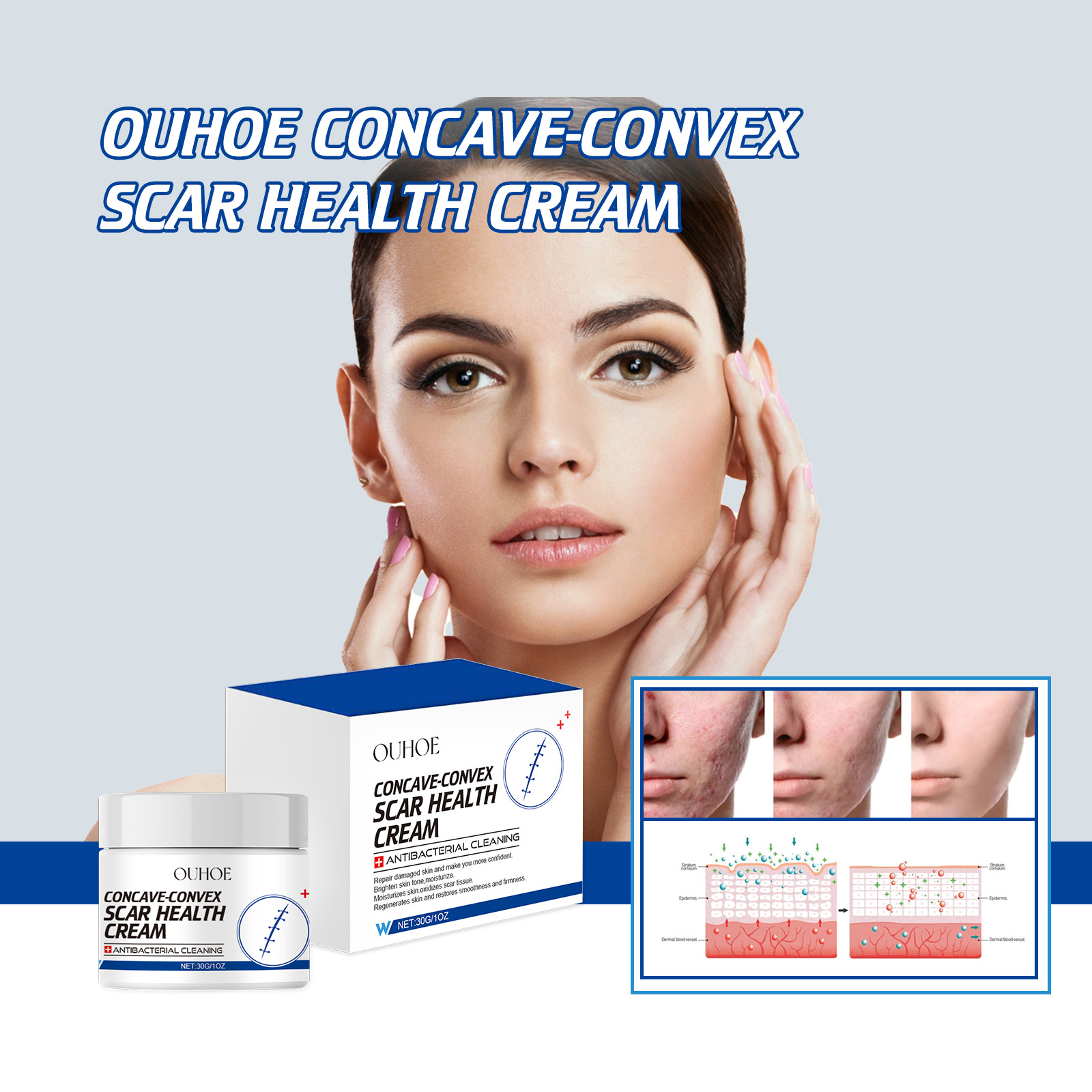 Our Concave-Convex Scar Health Cream contains Allantoin, Aloe Barbadensis Leaf Extract, Camellia Sinensis Leaf Extract. It can effectively fade scars, improve skin quality, restore even smooth skin appearance, moisturize skin, make it soft and reduce roughness. Its application method is very simple: clean and dry the skin of the scar area, apply appropriate amount of this product evenly on the skin, massage gently with your hand until absorbed. It can soothe the skin, relieve the discomfort of the scar area, and help the skin to return to a healthy state.