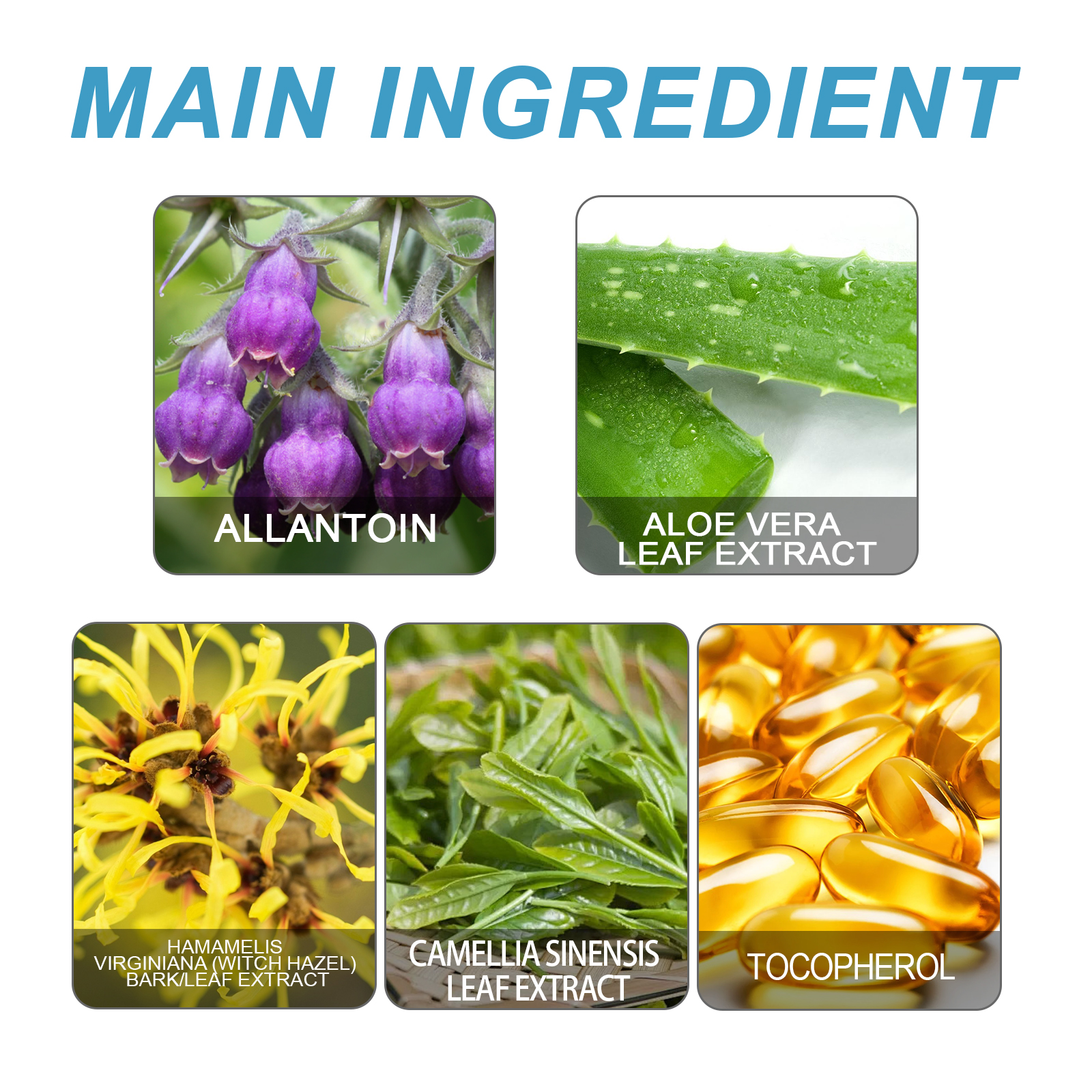 Our Scar Serum contains Allantoin, Aloe Vera Leaf Extract, Hamamelis Virginiana (Witch Hazel)Barki Leaf Extract. It can effectively promote the synthesis of collagen and further repair damaged skin. Its use is simple: before use, wash and dry the affected area, apply an appropriate amount of serum to the affected area, and gently massage until fully absorbed. It can repair damaged skin and fade scars.