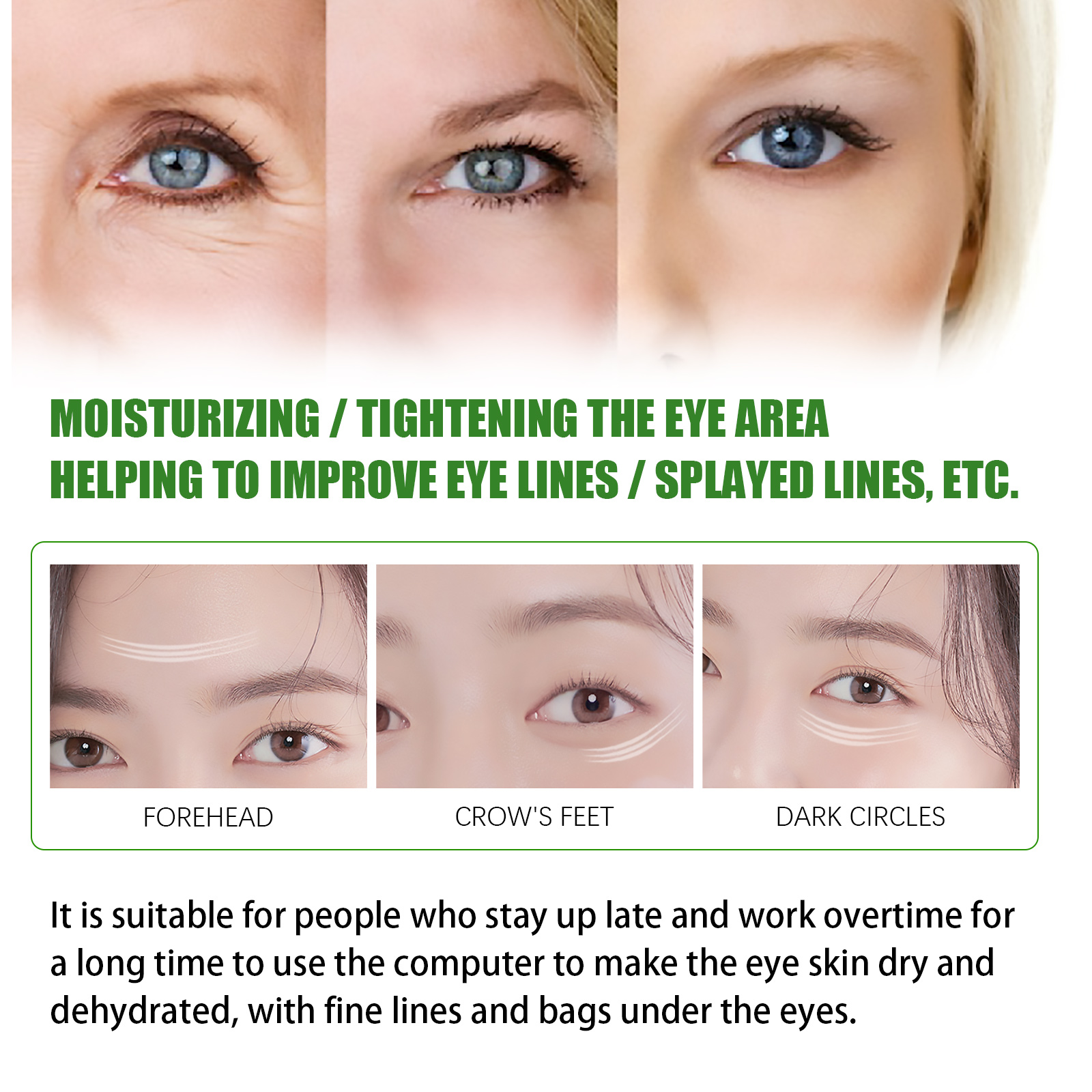 Our seaweed firming eye mask contains seaweed extract, licorice extract, sodium hyaluronate. It helps to repair eye wrinkles, dark circles and so on. Its use method is very simple: the first step: use after cleansing. Step 2: Gently remove the blindfold with a special spoon. Step 3: Gently smooth from corner of eye to end of eye. Step 4: After applying the eye mask for 15-20 minutes, gently massage the eye from inside to outside with your fingers to promote the absorption of the serum. After use, it can improve eye bag edema, double eye collagen absorption capacity, accelerate blood circulation, and fundamentally improve eye bag edema and other problems