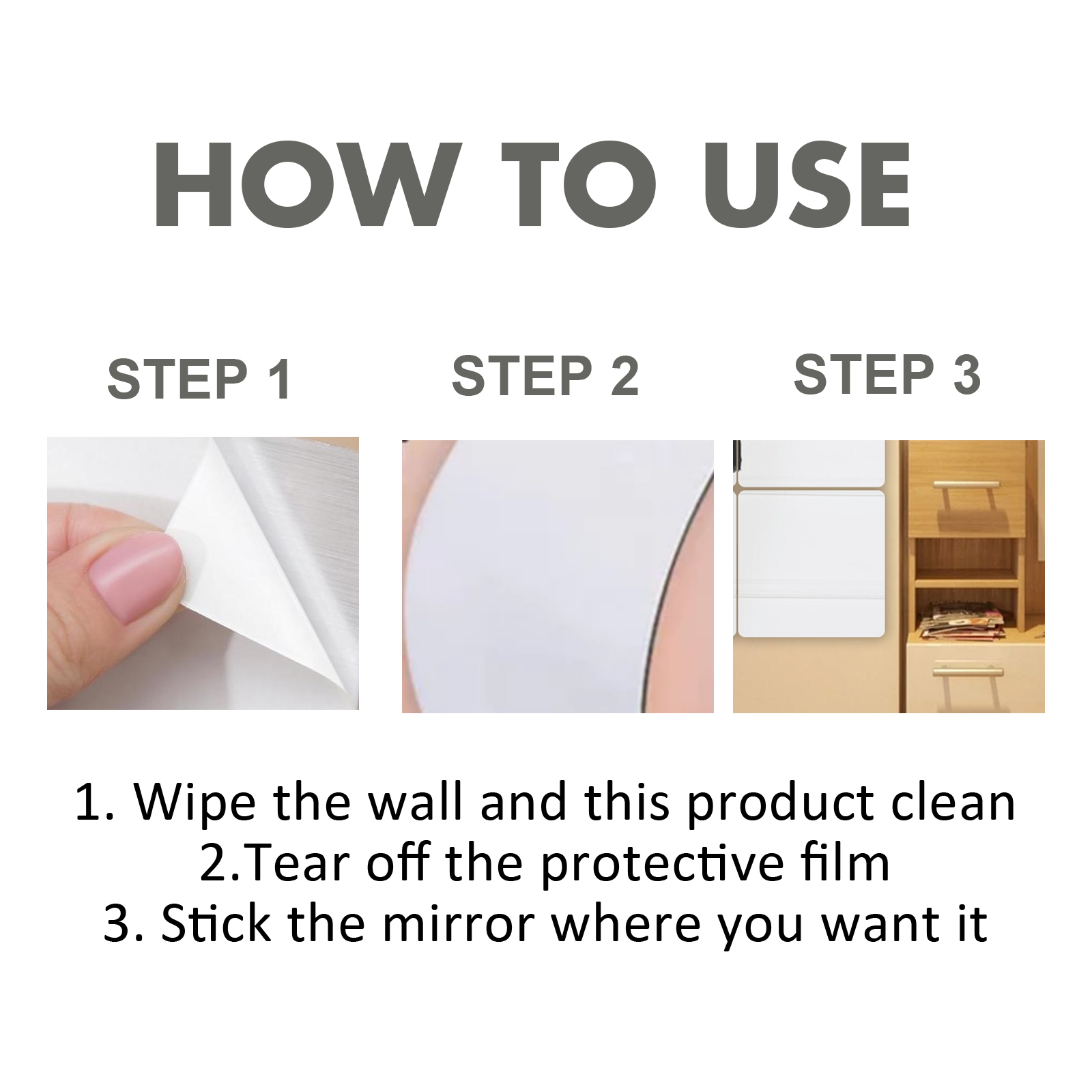 Our self-adhesive fall-proof wall mirrors contain acrylic. It can clearly reflect things, high transparency, good reflective effect. Its use method is very simple: 1. Wipe the wall and the product clean. 2. Remove the protective film. 3. Stick the mirror where you want it. And can reflect the high definition mirror, free combination, rounded corner design, waterproof material, easy to install.