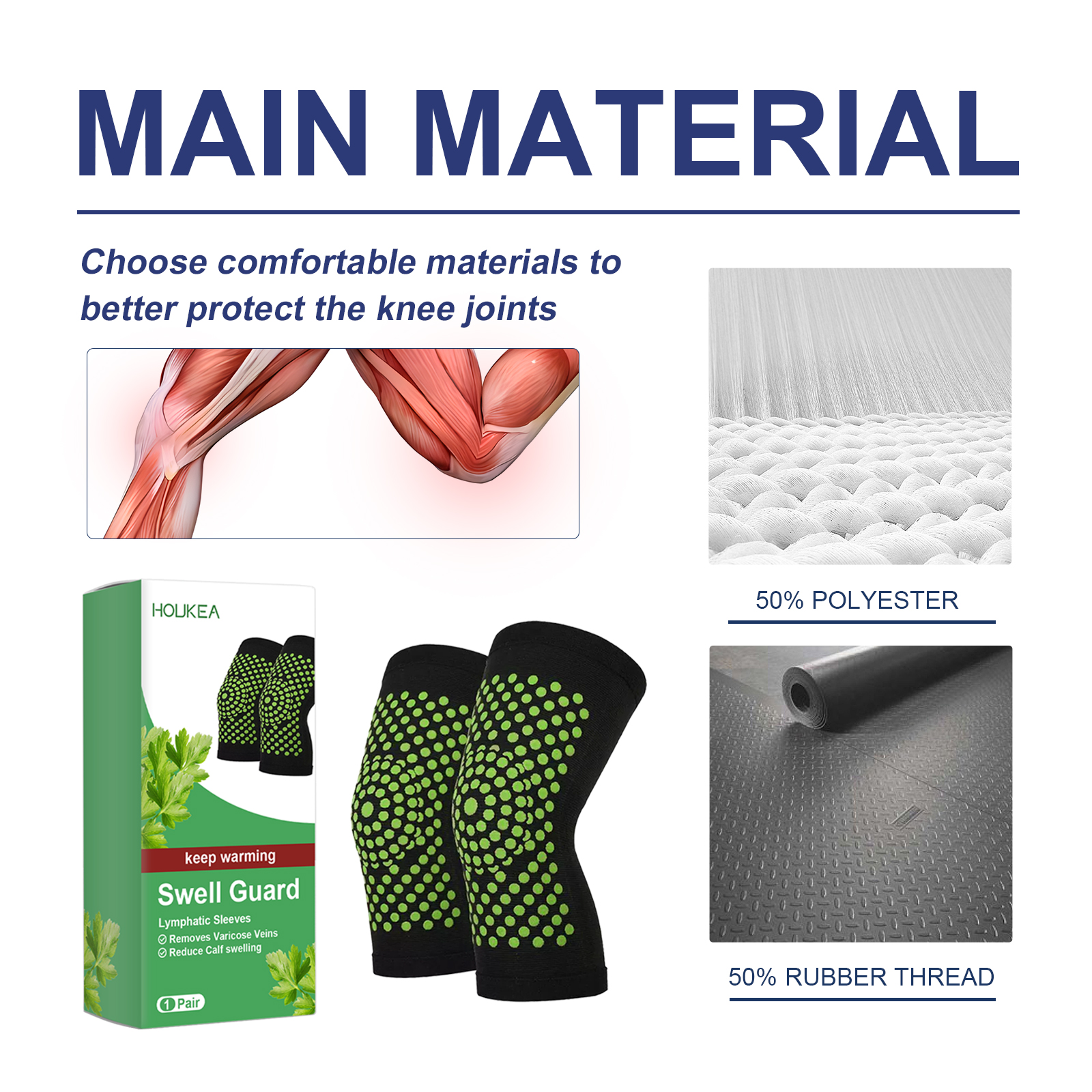 Our Swell Guard contain 50% polyester and 50% rubber threads. It can help relieve swelling, pain and discomfort in your leg muscles, penetrate deep into the muscle tissue, increase leg temperature, speed up metabolism, effectively relieve fatigue, and improve overall leg health. The way to use it is simple: make sure the skin on your legs is clean and dry, put your legs over your legs and adjust them as needed. It can provide even and effective support for the legs while maintaining air permeability and comfort, suitable for long-term wear.