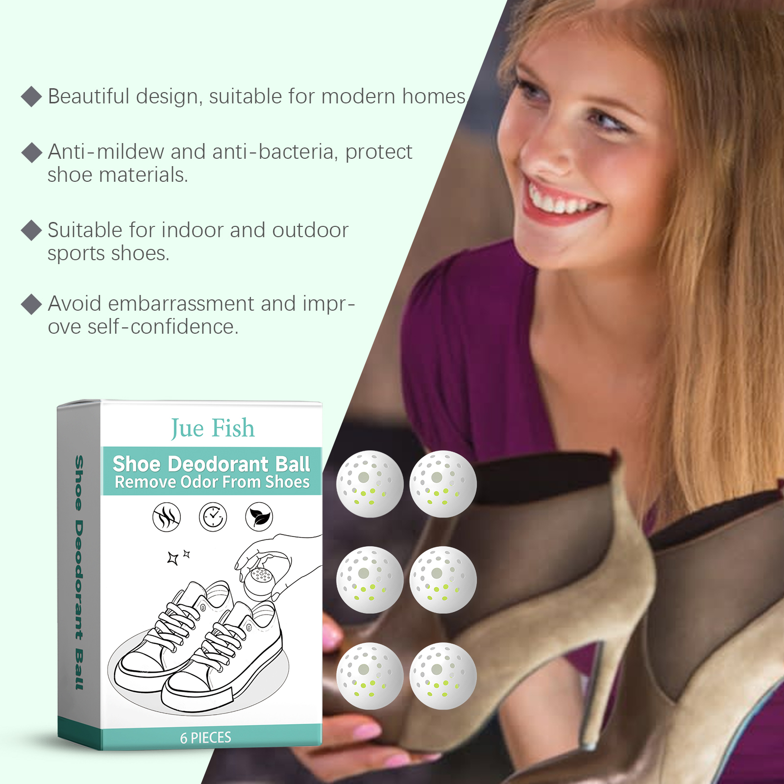 Our shoes and socks deodorant balls contain tea tree oil and eucalyptus oil. It can provide a cool feeling and neutralize odors. The way to use it is very simple: just take a perfume bead and put it in the place where you need to deworm and deodorize. And it can stay fresh for a long time.