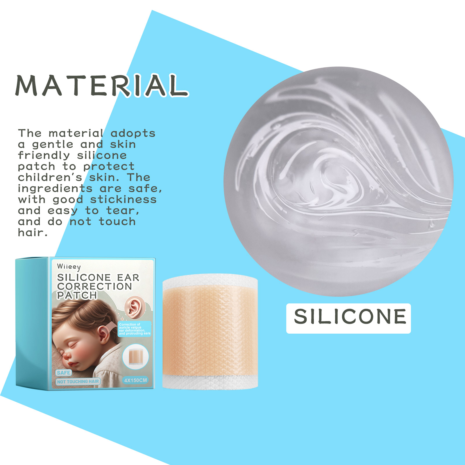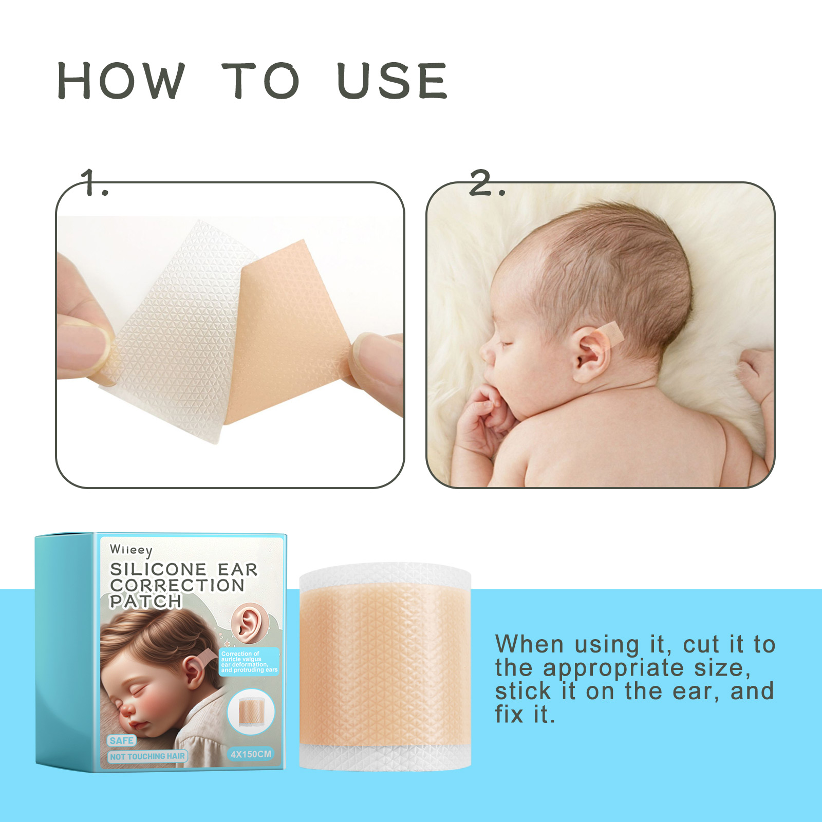 Our Silicone Ear Correction Patch contain silicone. It can help correct minor ear and auricle abnormalities in children aged 0-3 years, such as ectrosion, windward ear, ear shape squeezing, so that the child's ear can return to normal shape. The way to use it is very simple: when using, cut it to the right size, stick it on the ear, and fix it. The material is made of gentle and skin-friendly silicone patch to protect children's skin. The ingredients are safe, sticky, easy to tear, and do not touch hair.