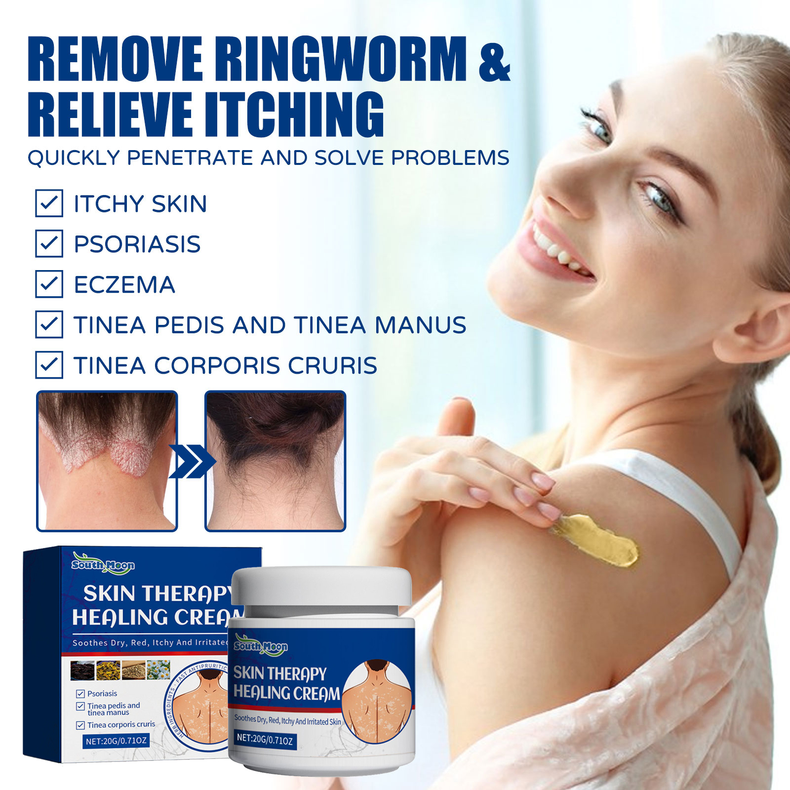 Our skin care cream contains snake bed fruit extract, chrysanthemum extract. It can reduce redness and inflammation, relieve itching and peeling, effectively suppress fungi, and restore smooth skin. Its application method is very simple: first clean and dry the affected area, ensure that the ingredients of the product are not allergic to the premise, apply the appropriate amount of cream on the affected area, and finally gently massage until completely absorbed. After use, it can effectively repair itching caused by moss, protect damaged skin and maintain skin health.