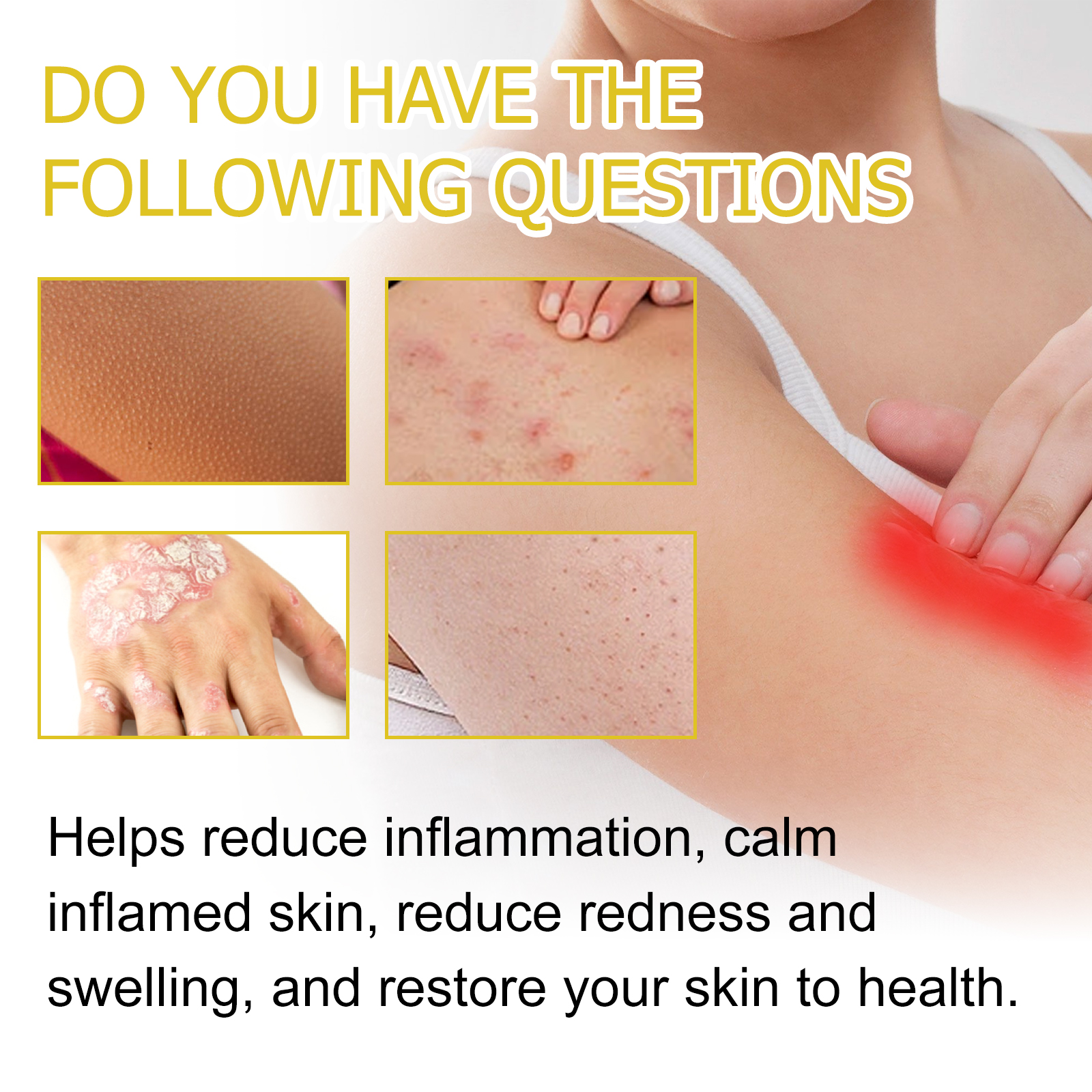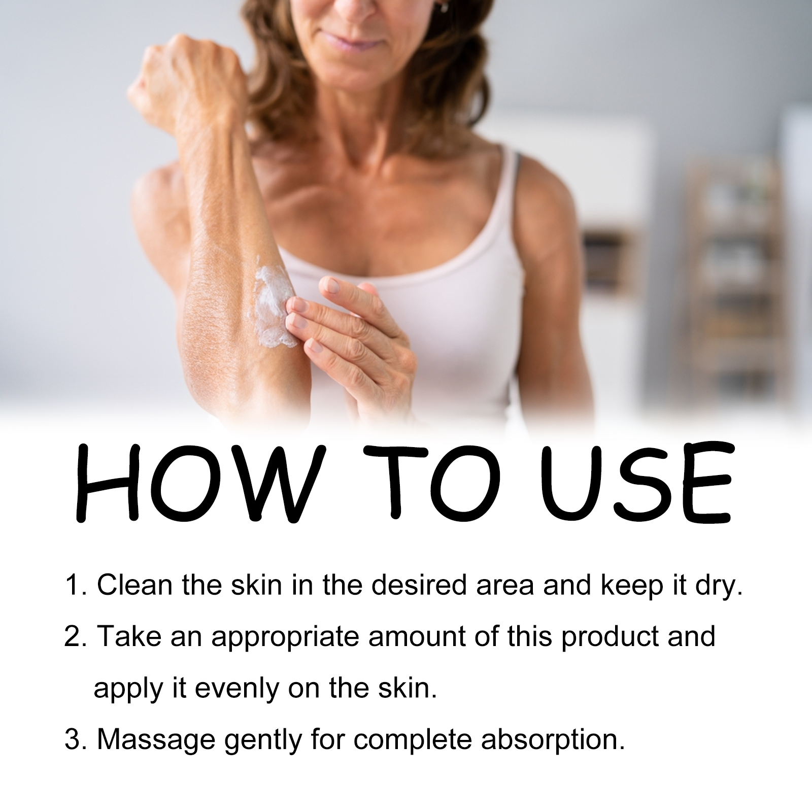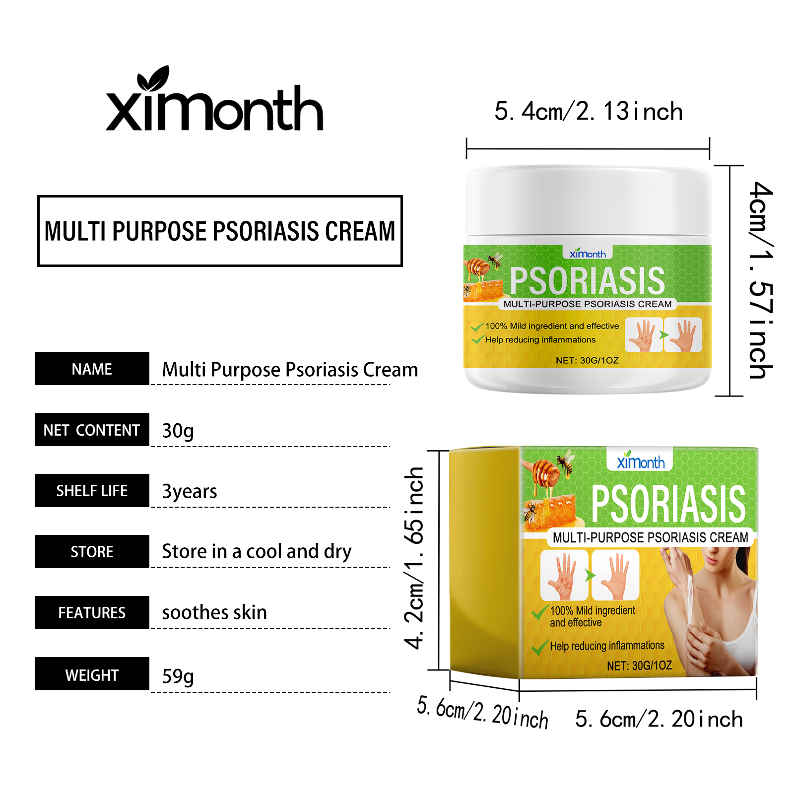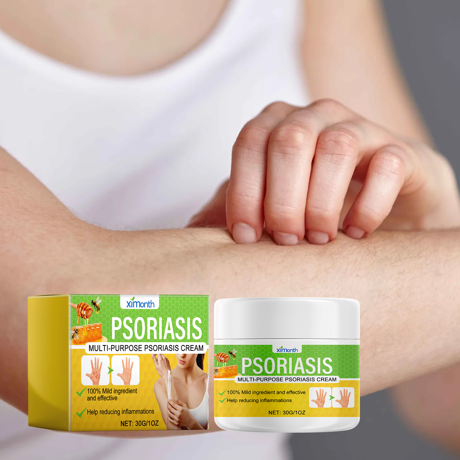 Our Multi Purpose Psoriasis Cream contains Aloe Barbadensis Leaf Extract, Cholecalciferol, Lonicera Japonica(Honeysuckle)Flower Extract. It reduces inflammation, calms inflamed skin, reduces redness and swelling, restores your skin to health, helps penetrate deep into the skin, rehydrates the skin, and prevents dryness and cracking. Its application method is very simple: clean the desired area of the skin and keep dry, apply an appropriate amount of this product evenly on the skin, gently massage until it is completely absorbed. This product is light in texture, easy to be absorbed by the skin, so that you enjoy fresh and non-greasy skin, mild ingredients, suitable for all types of skin.