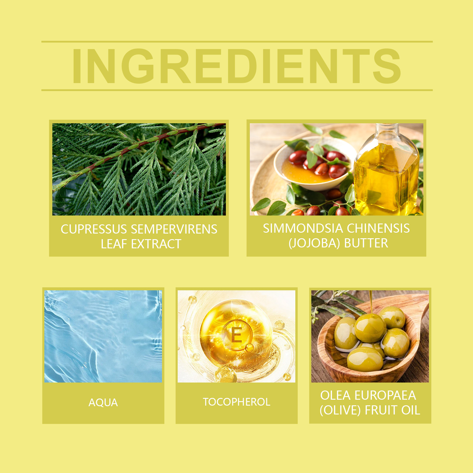 Our skin care oil contains vitamin E, cypress leaf extract, olive oil. It can reduce scars and restore smooth skin; Reduces fine lines and improves skin elasticity. The way to use it is simple: 1. Clean the face and body. 2. Apply appropriate amount of the product evenly on the face and body, gently massage in circles to promote absorption. Deep cleansing reduces blackheads and pimples.