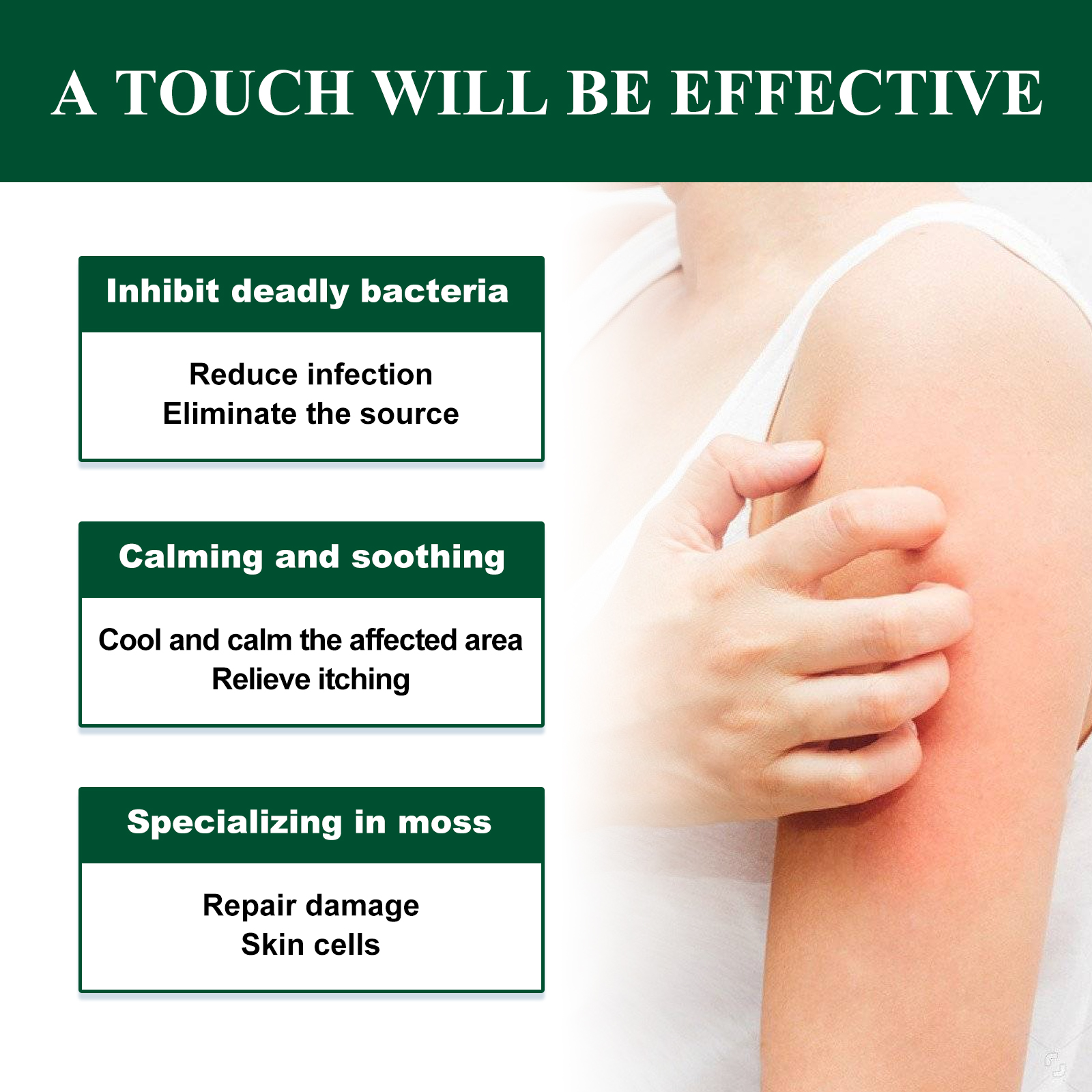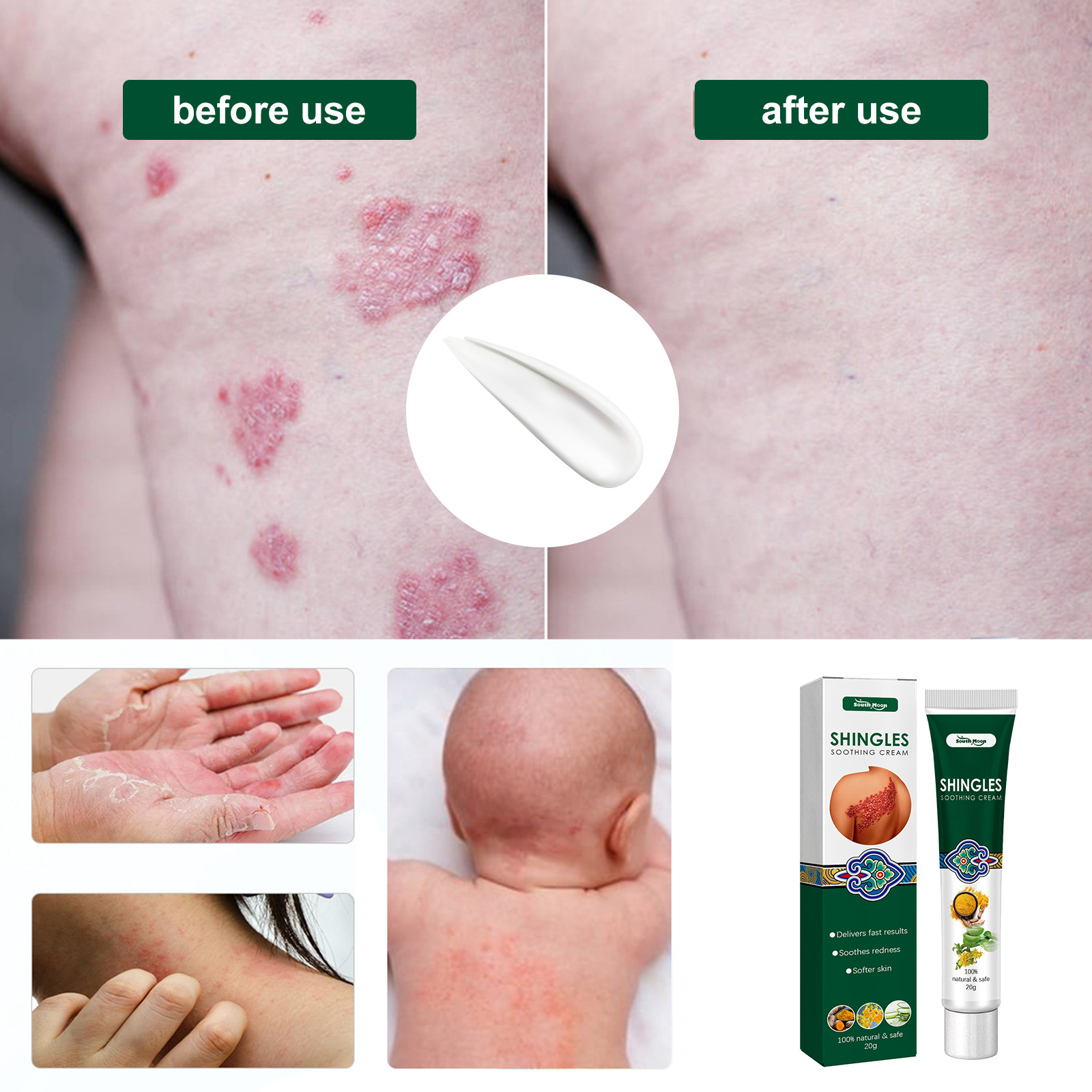 Our skin repair cream contains calendula extract, allantoin. It can relieve skin itching, wet itching, redness and itching. Its use method is very simple: clean and dry the affected area, evenly apply appropriate amount of this product, on the uncomfortable area, gently massage until absorbed, it is recommended to use once in the morning and evening. And it can promote the better absorption of Chinese herbal essence, consolidate the foundation from the inside out, and refuse to repeat.