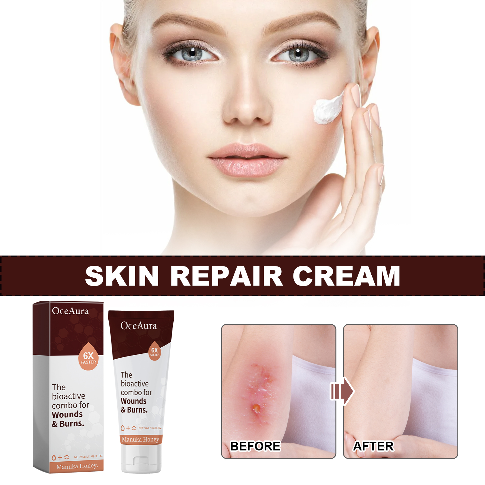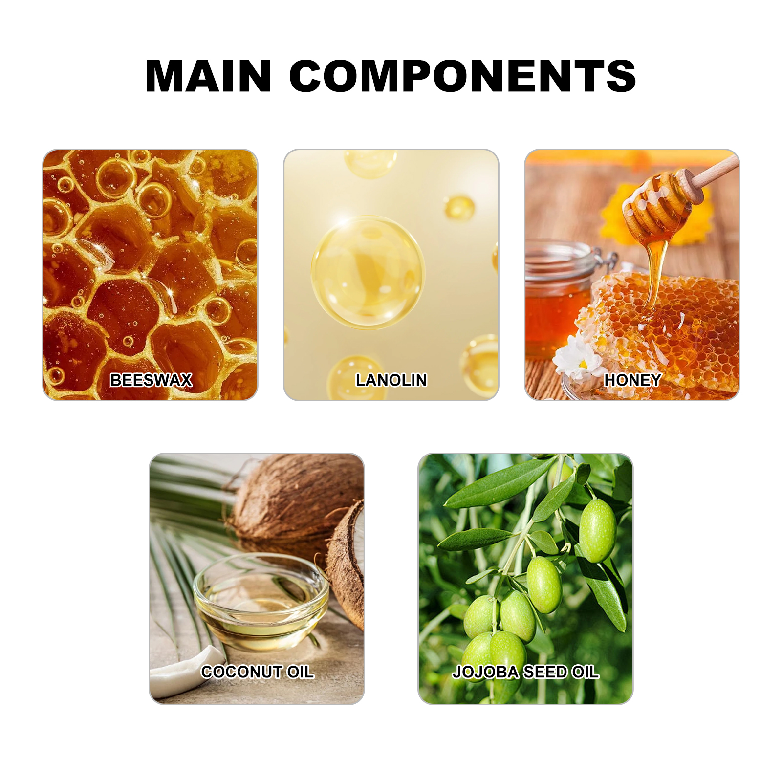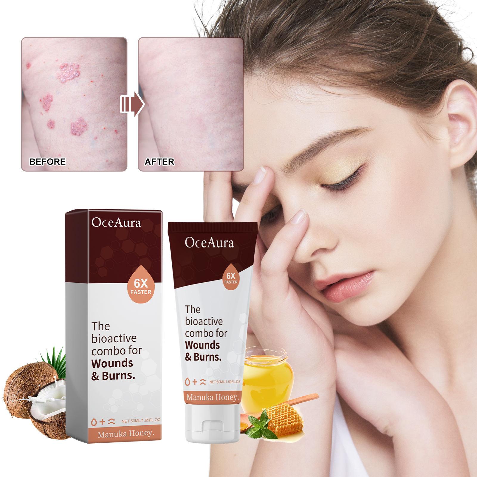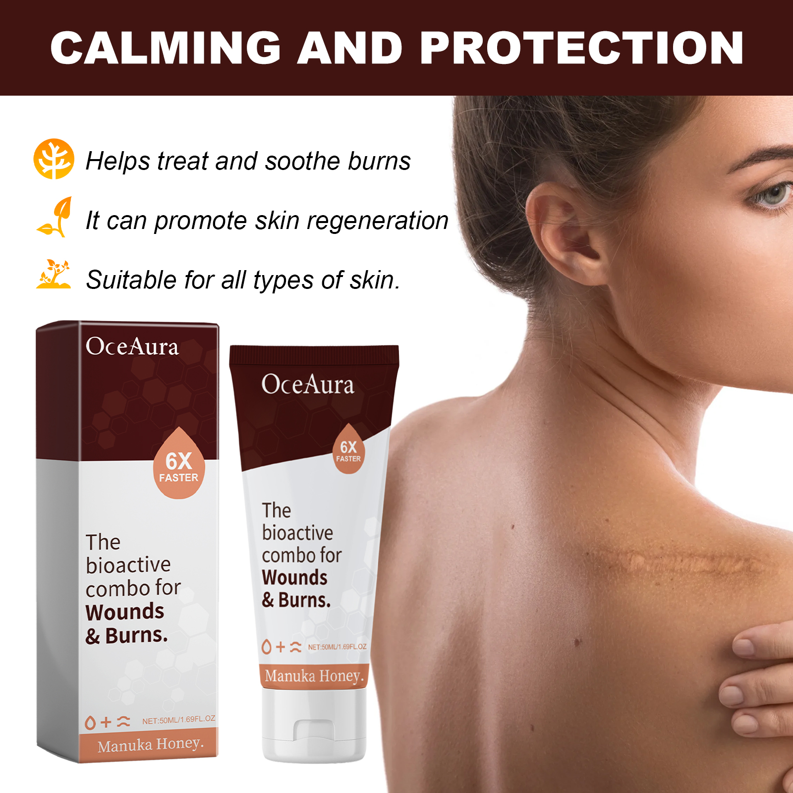 Our The Bioactive Combo For Wounds& Burns contains Beeswax, Lanolin, Honey. It can help treat and relieve burns and promote skin regeneration. Its application method is very simple: clean and dry the skin, apply appropriate amount of this product evenly to the affected area, massage gently with your fingertips, and let the skin fully absorb it. Can effectively relieve hands and feet skin redness, itching, make you more comfortable.