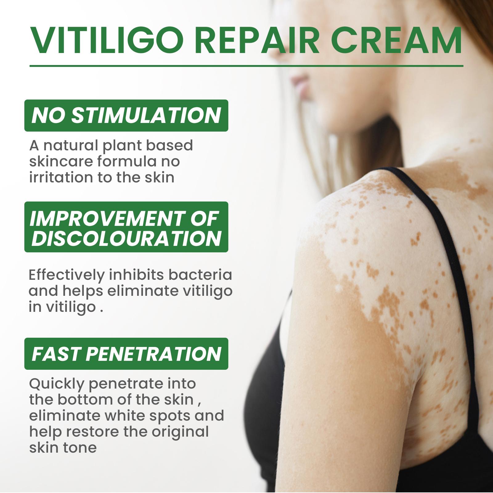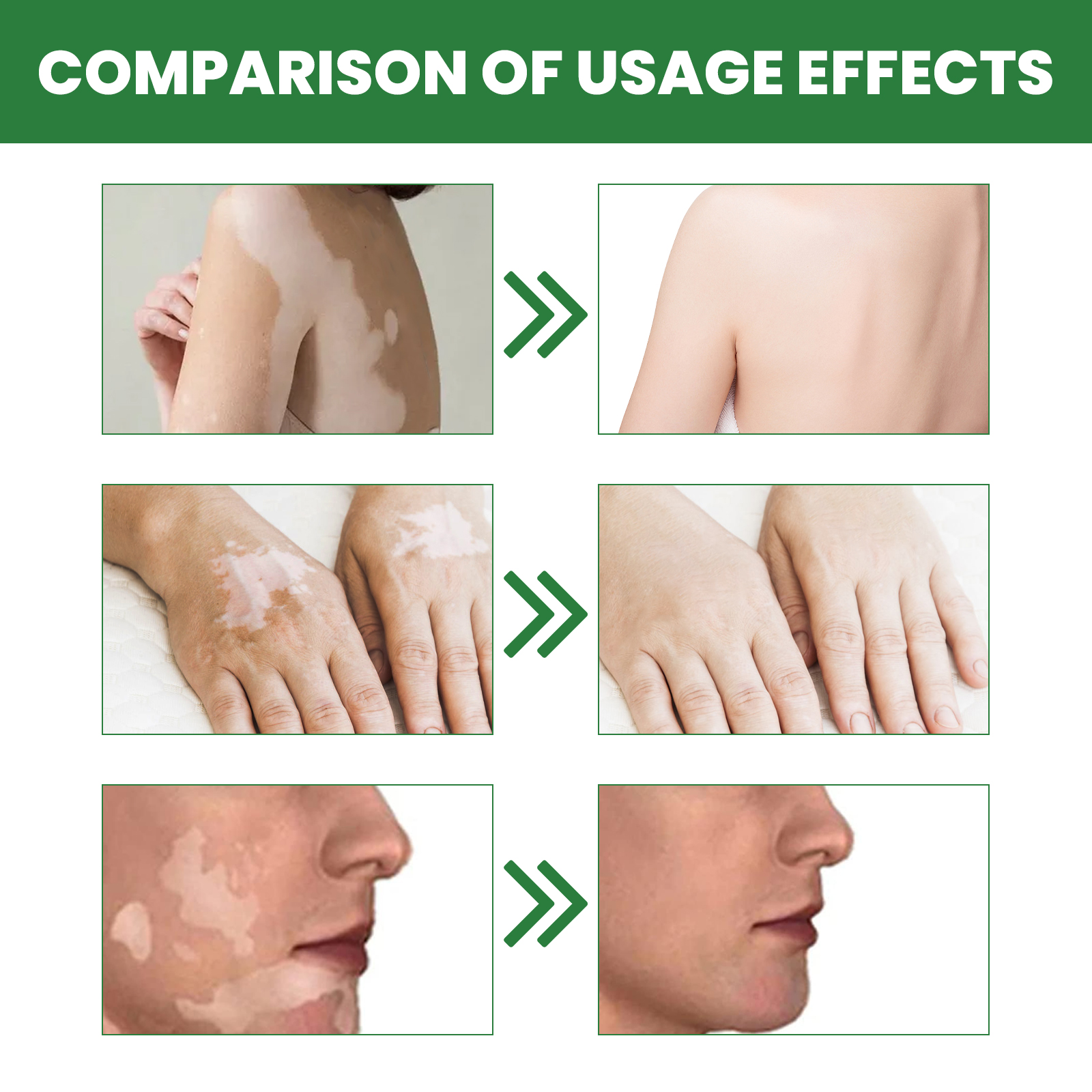 Our White spot repair cream contains safflower extract, psoralen, comfrey extract. It can help to improve the physiological balance of melanocytes and keratinocytes in the epidermis of leukoepilepsy, regulate skin pigmentation, repair leukoepilepsy, and promote the recovery of melanin. Its use method is very simple: first clean and dry the skin, then take an appropriate amount of repair cream, evenly apply on the skin with white spots, and then gently massage with the hand in a circular motion until absorbed, use every day to achieve better results. After use, it quickly penetrates into the bottom of the skin, cures the white spots on the skin, restores the primary color of the skin, and makes your skin beautiful.