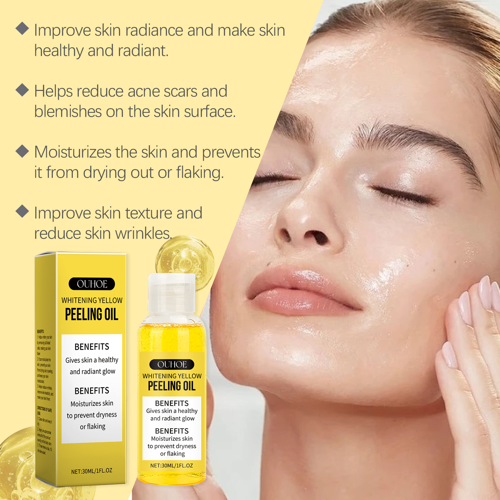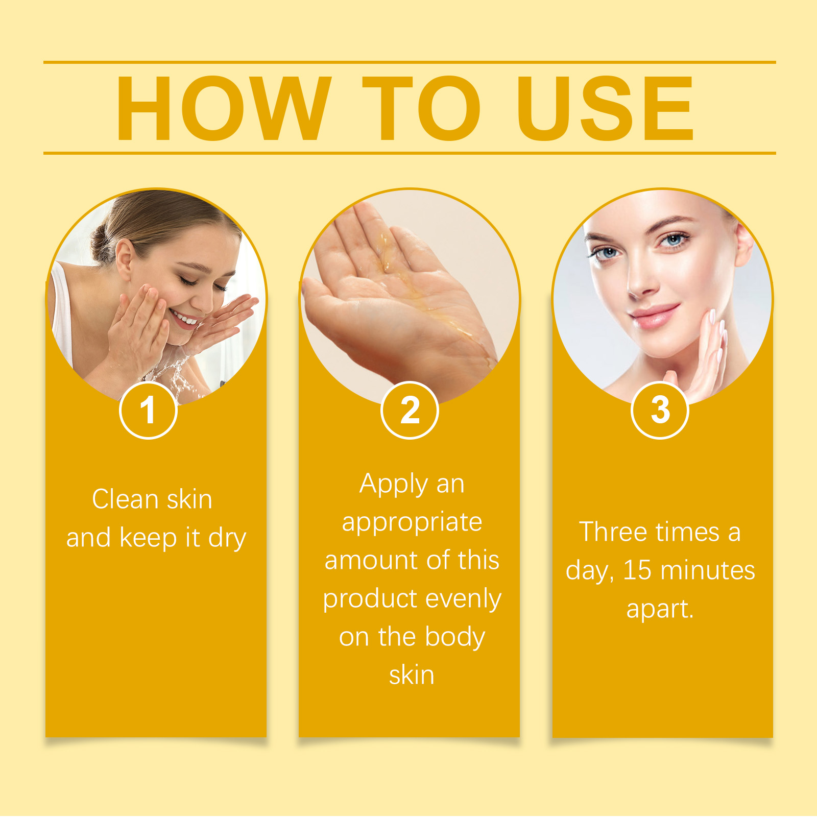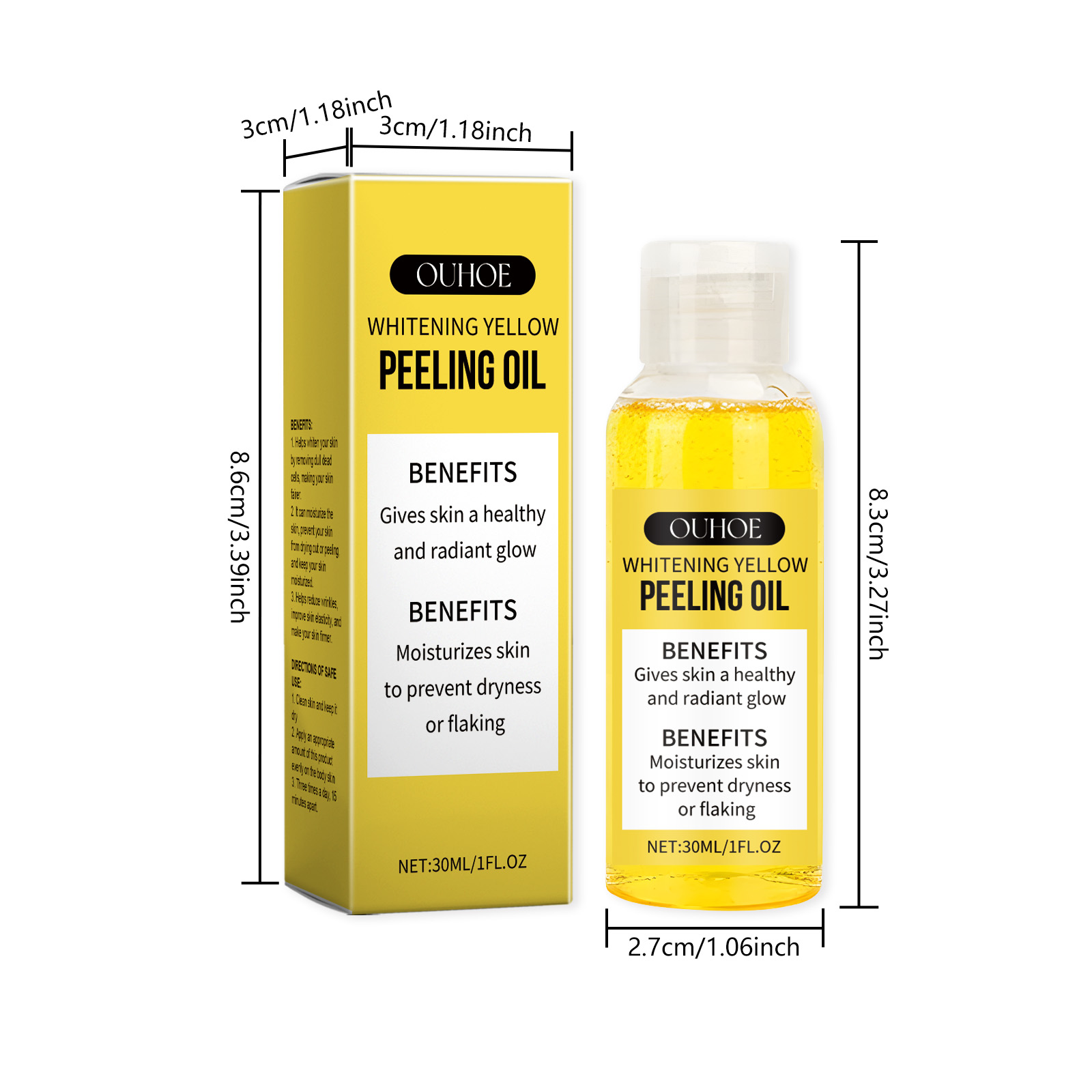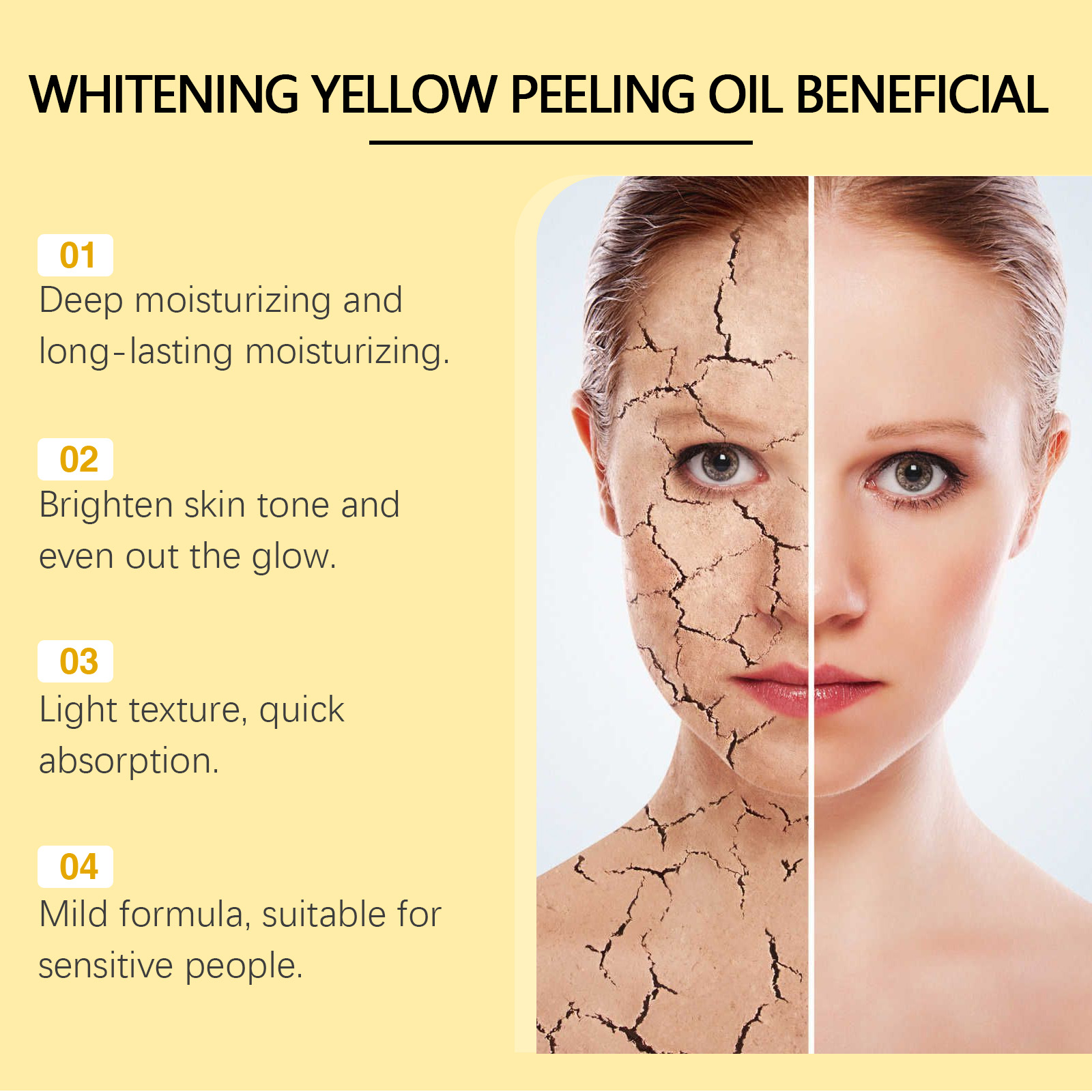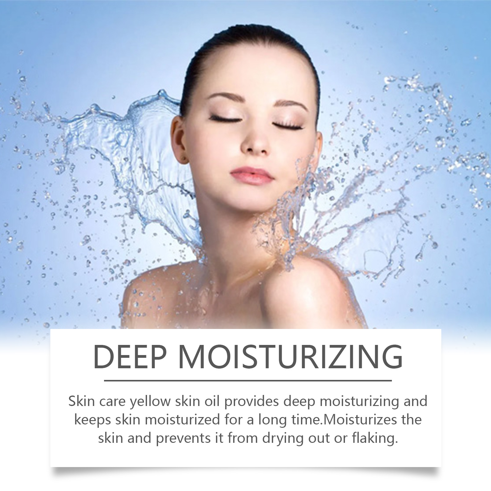 Our skin oil contains lactic acid, tocopherol (vitamin E), aloe vera leaf extract in Curacao. It provides deep moisture and keeps the skin moisturized for a long time. Moisturize the skin and prevent it from drying out or peeling. Its application method is simple: 1. Clean the skin and keep it dry; 2. Apply appropriate amount to skin evenly; 3. Take 15-minute intervals three times a day. Skincare Yellow skin oil is effective in brightening the complexion and leaving skin glowing. Light texture. Fast absorption, non-greasy, suitable for all skin types.