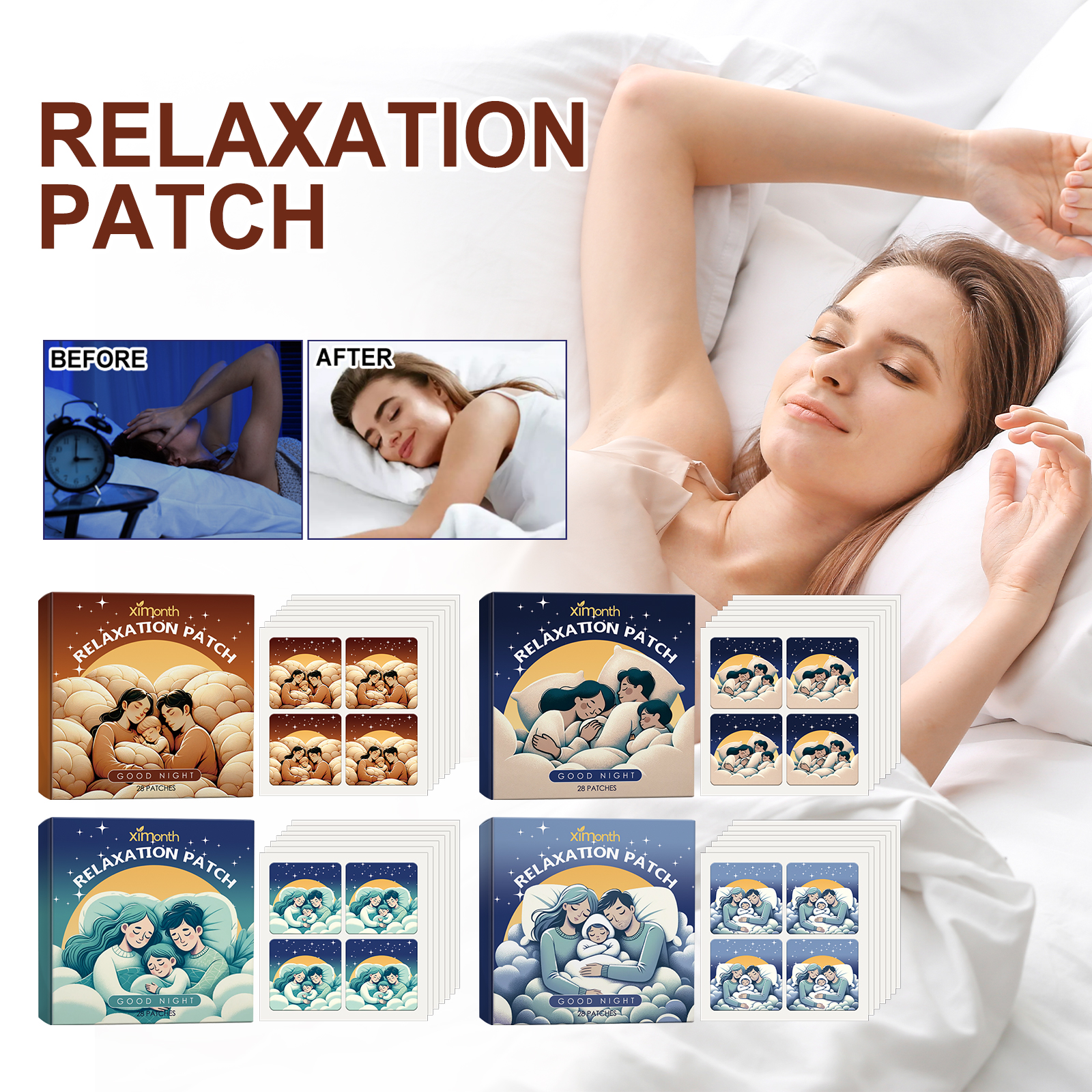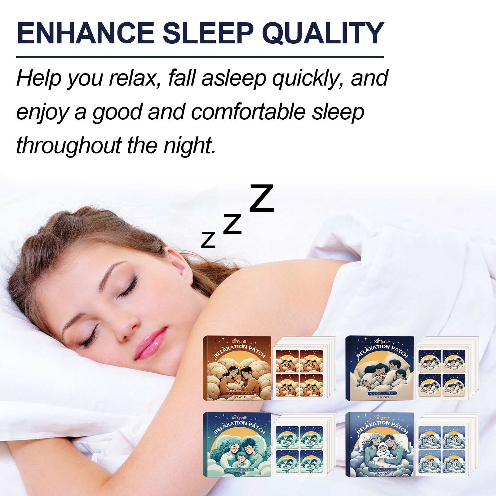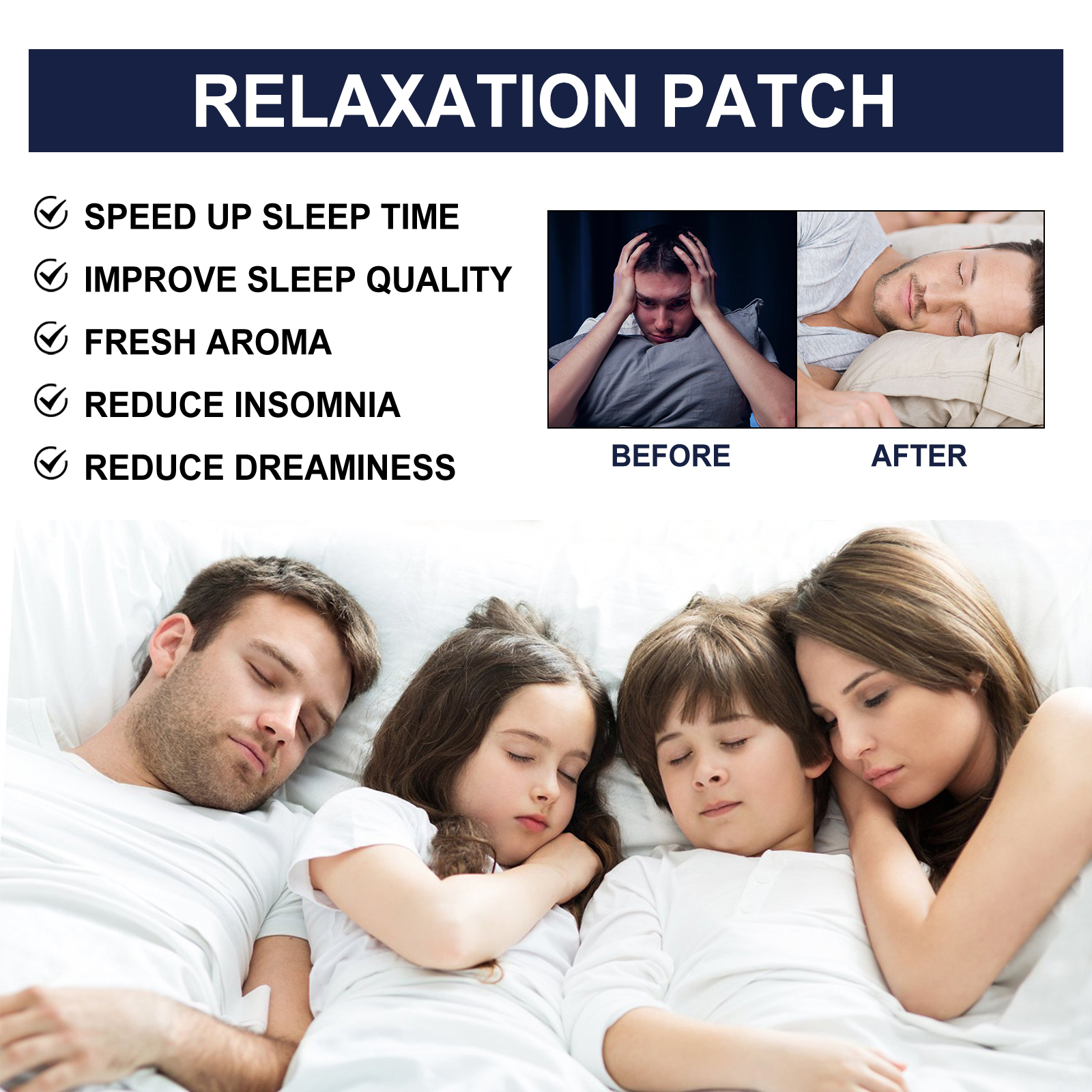 Our Relaxation Patch contain non-woven fabric. It can improve sleep quality, reduce insomnia and dreaminess, help you relax, fall asleep quickly, and enjoy a good and comfortable sleep all night. Its use method is very simple: tear the package to take out the product, tear the patch from the anti-stick layer to stick on the pillow, collar, chest, etc., can not directly contact the skin. Suitable for the elderly, people affected by chronic stress, people affected by jet lag, night shift workers and people who need sleep during the day.
