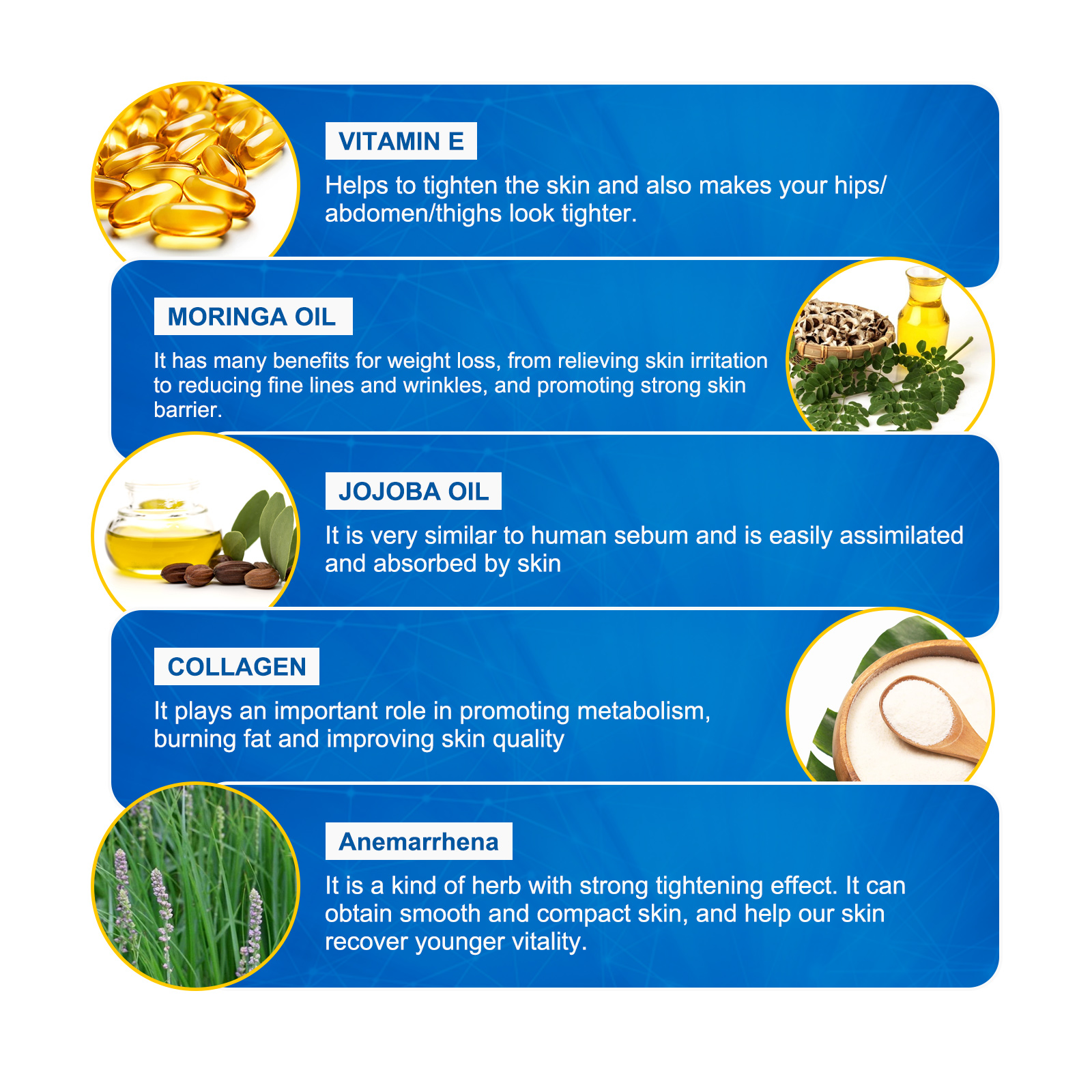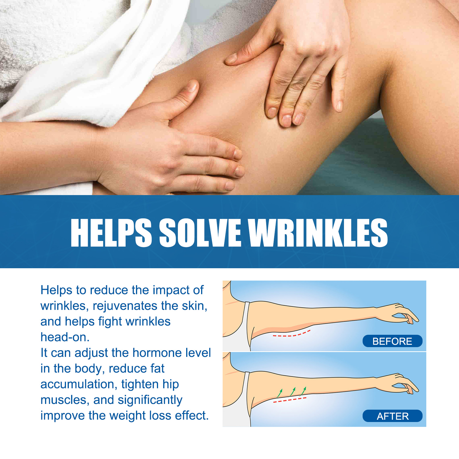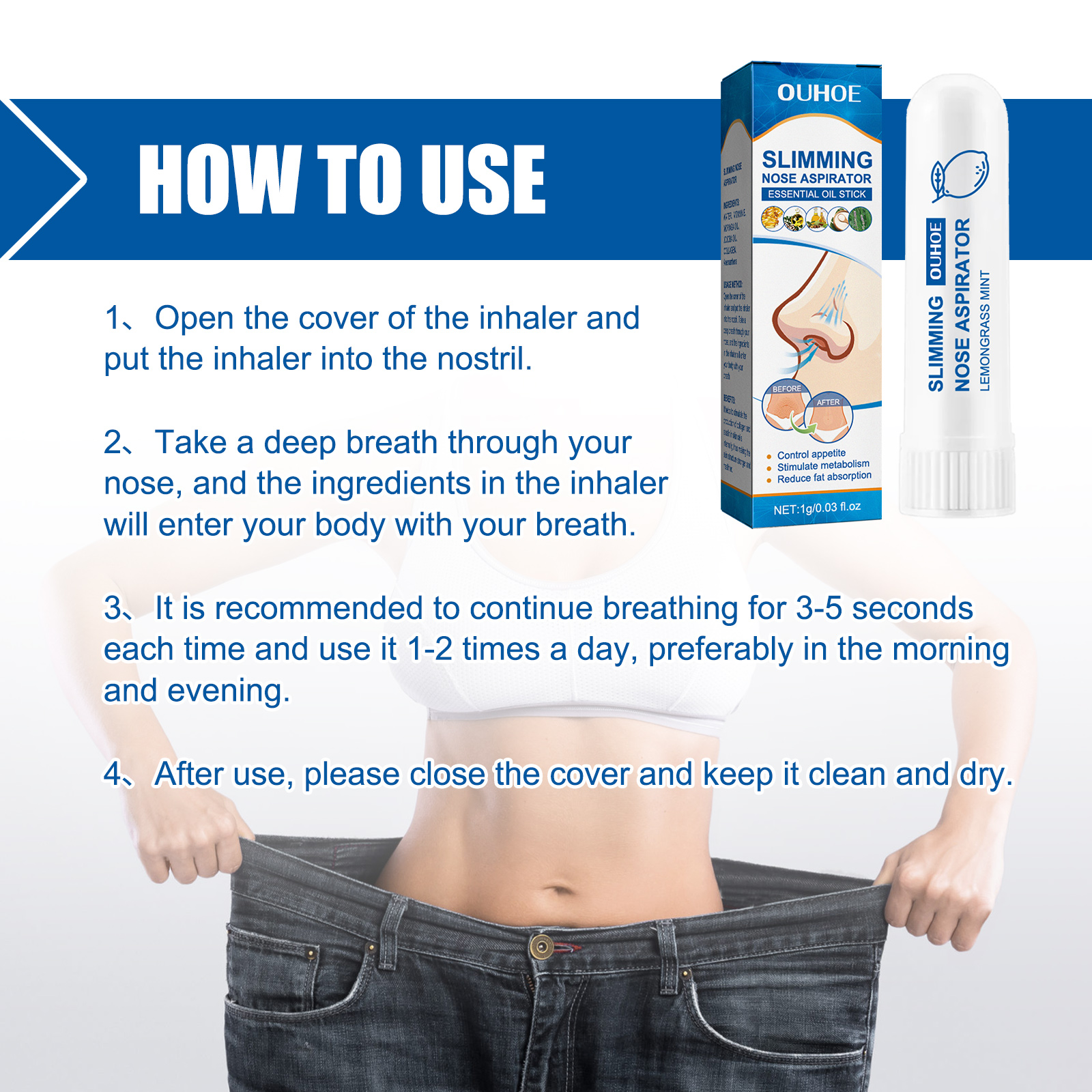 Our body Toning lotion contains vitamin E, moringa oil, collagen. It stimulates the production of collagen and elastin inside skin cells, which makes the skin structure stronger and healthier, while helping to reduce the effects of wrinkles, rejuvenate the skin, and help fight wrinkles. Its use is simple: First open the lid of the inhaler, then put the inhaler into the nostrils, deep breathing through the nose, the ingredients in the inhaler will enter your body with your breath, it is recommended to continue breathing for 3-5 seconds each time, use 1-2 times a day, morning and night is better, after use, help regulate the hormone level in the body, reduce fat accumulation, tighten the hip muscles, significantly improve weight loss effect, Make your body slimmer.
