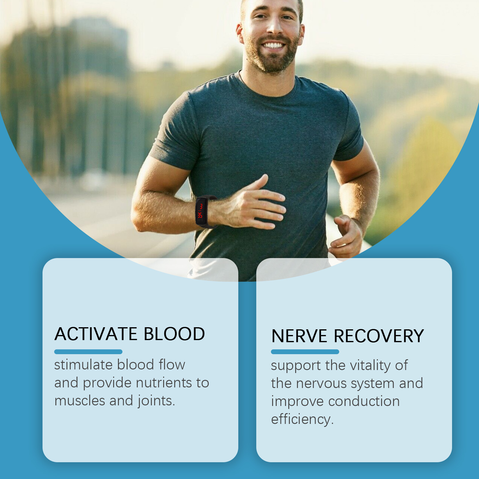Our sports watches contain silicone. It can stimulate blood flow, support the vitality of blood vessels, provide nutrients to the nervous system, muscles and joints, and improve conduction efficiency. Its use is simple: simply wear the product directly on your wrist. And can be lightweight silicone material, comfortable to wear all day.