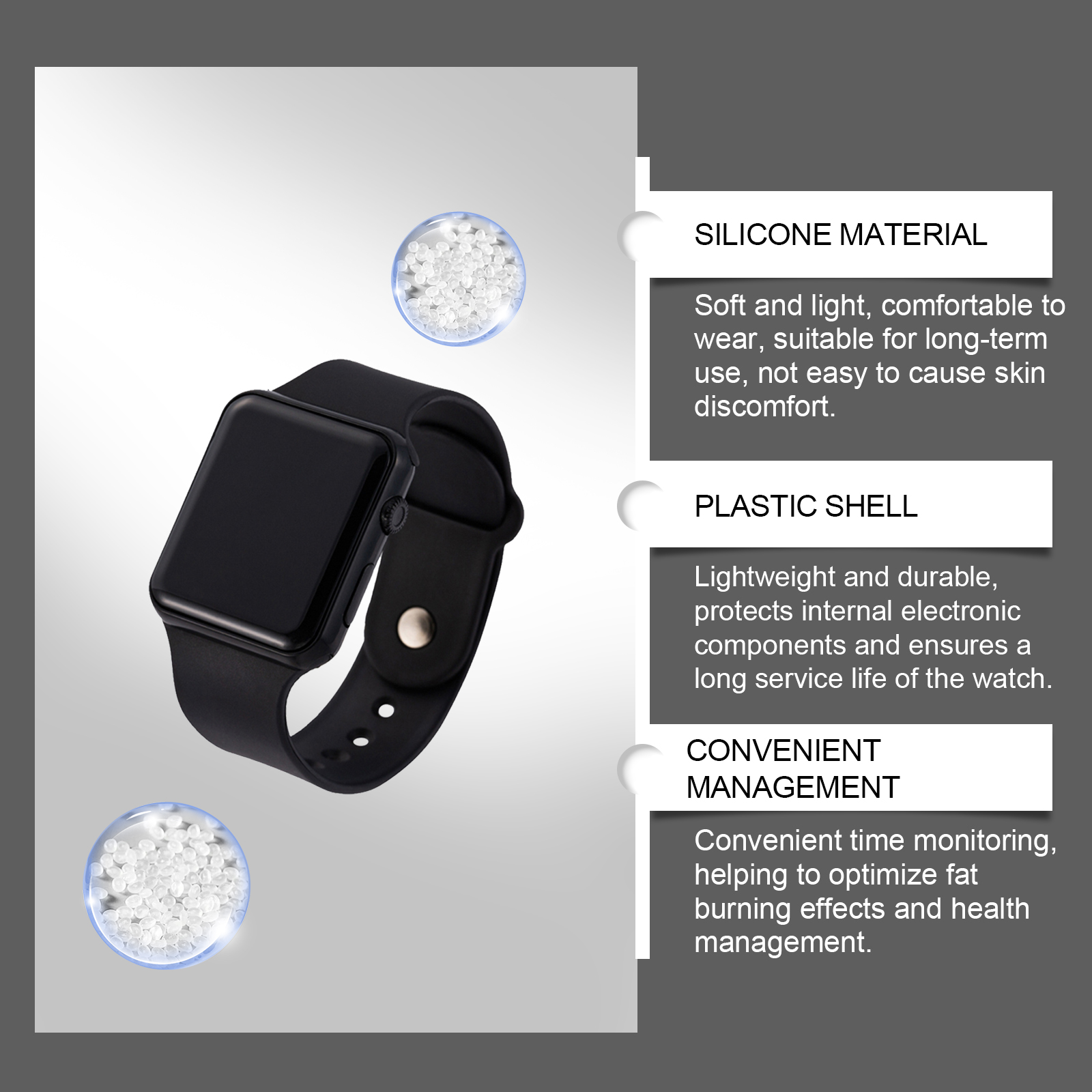 Our sports watches contain silicone. It can help optimize the metabolism of food and liquids and increase the efficiency of fat burning. Improve workout results and help users achieve their goals. The way to use it is simple: just wear the bracelet directly on your wrist. And it is not only a sports watch, but also shows the time, helping you to easily grasp the time during exercise.