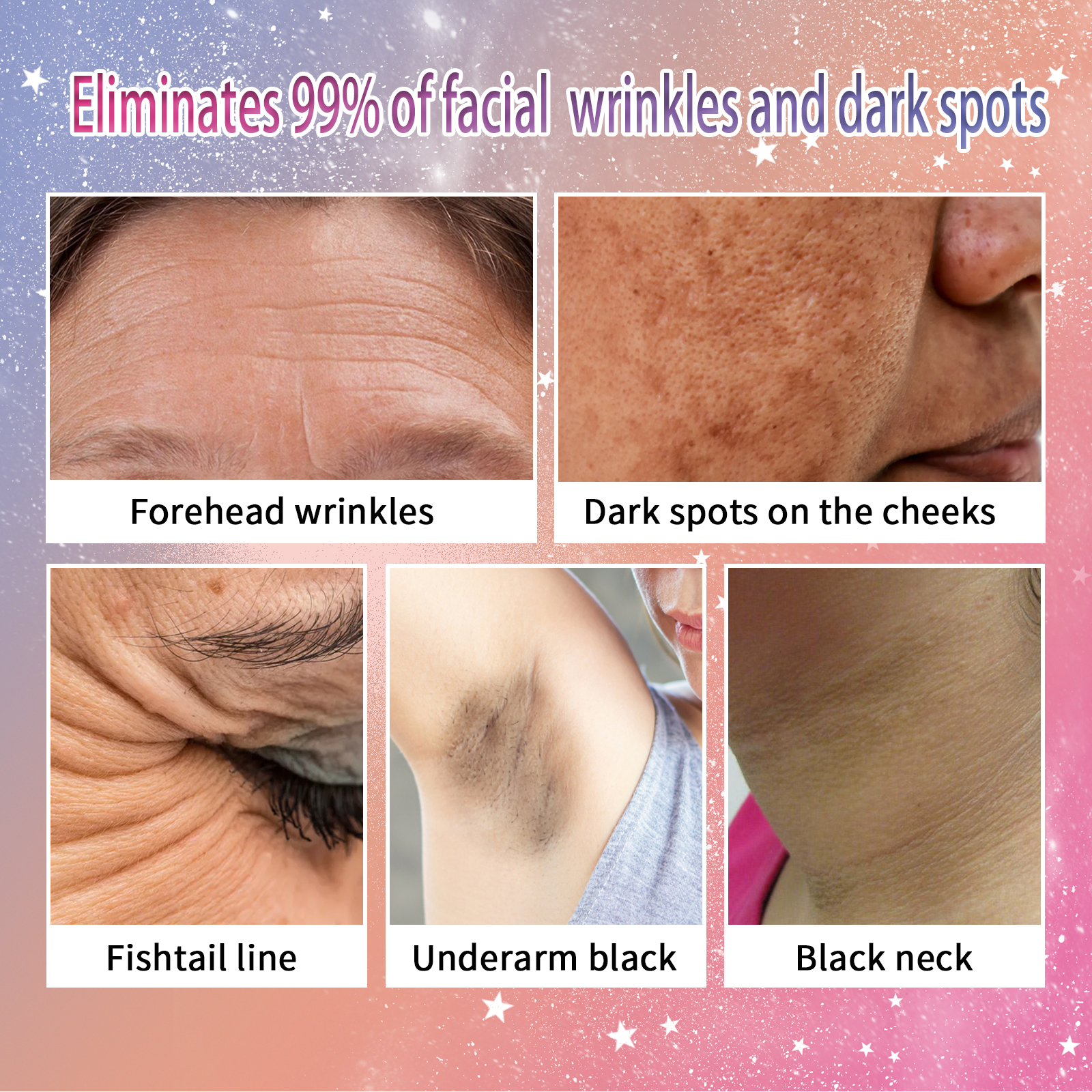 Our Freckle Removing Anti-aging Essence contains aloe vera, turmeric, ceramide. It can eliminate skin stains, lighten dull skin, effectively improve facial fine lines and wrinkles repair and nourish the skin. Its application method is very simple: before use, clean the skin parts that need to apply the essence, wipe off the water, and then take 3-5 drops of this product evenly apply to the skin (or face, body) until absorbed. Use once in the morning and once in the evening for best results. Improve skin safely and stably, gently block melanin transmission, smooth skin, nourish and moisturize, and make skin fairer and brighter.