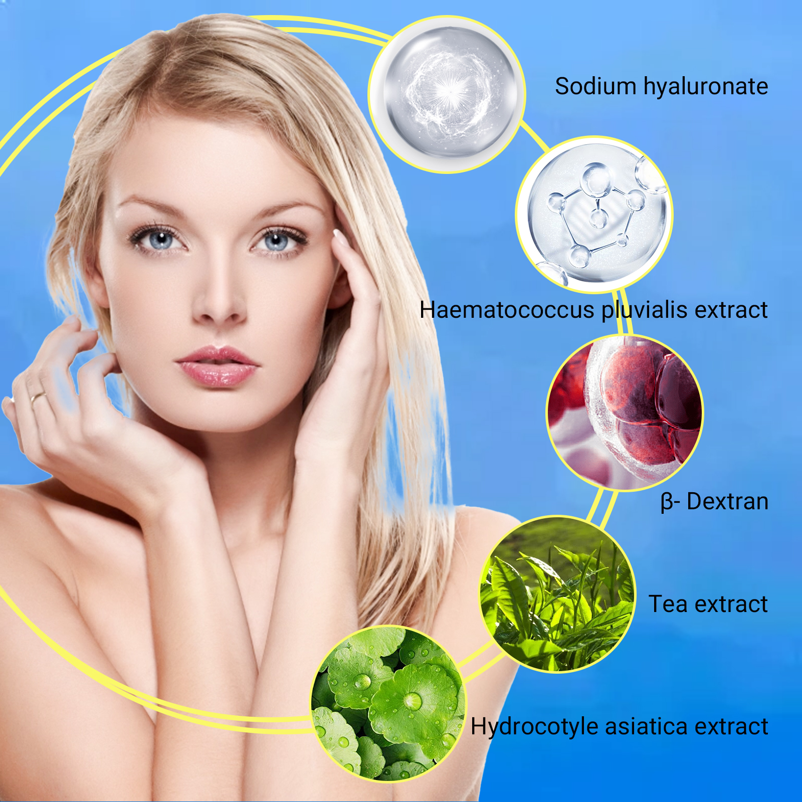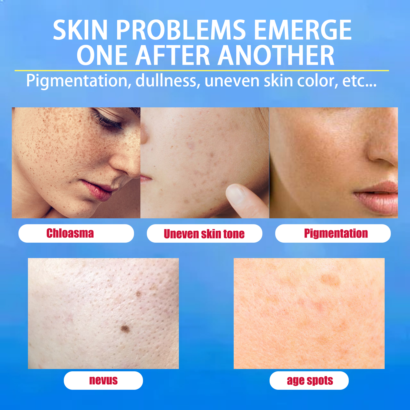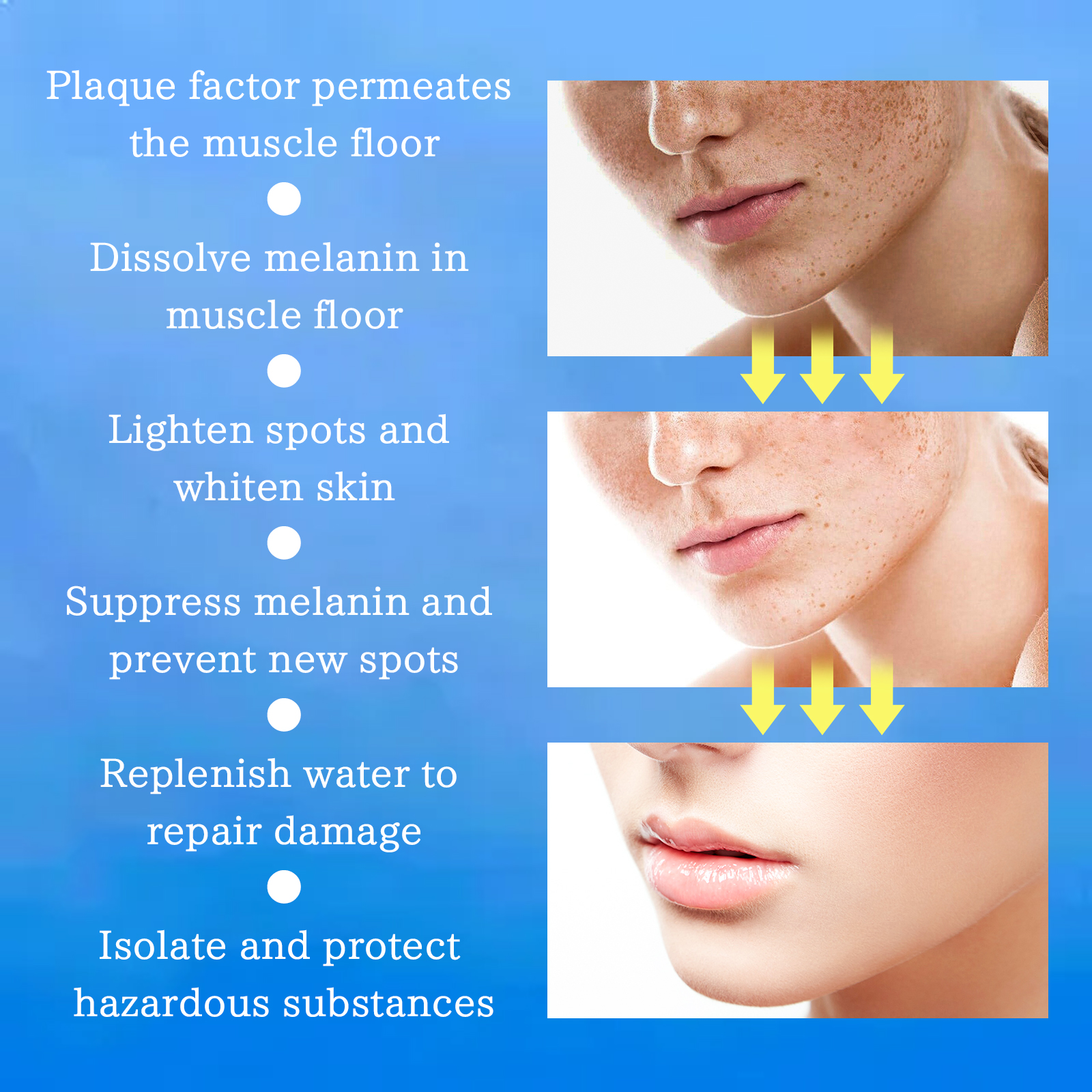 Our blemish cream contains tea extract. Centella asiatica extract, sodium hyaluronate. It can dissolve melanin, lighten spots, whiten skin, replenish moisture, repair damage, and isolate harmful substances in the skin. Its use is simple: First, wash your face and dry, then apply to the forehead, cheeks, nose tip and chin area, then apply to every inch of the skin, and finally, gently massage your face with your hand, the effect will be better, after use, it will help to deeply hydrate the skin, nourish the skin, fade the fine lines on the face, slow the aging of the skin, replenish collagen, provide comprehensive protection for your skin, make your skin white and beautiful.