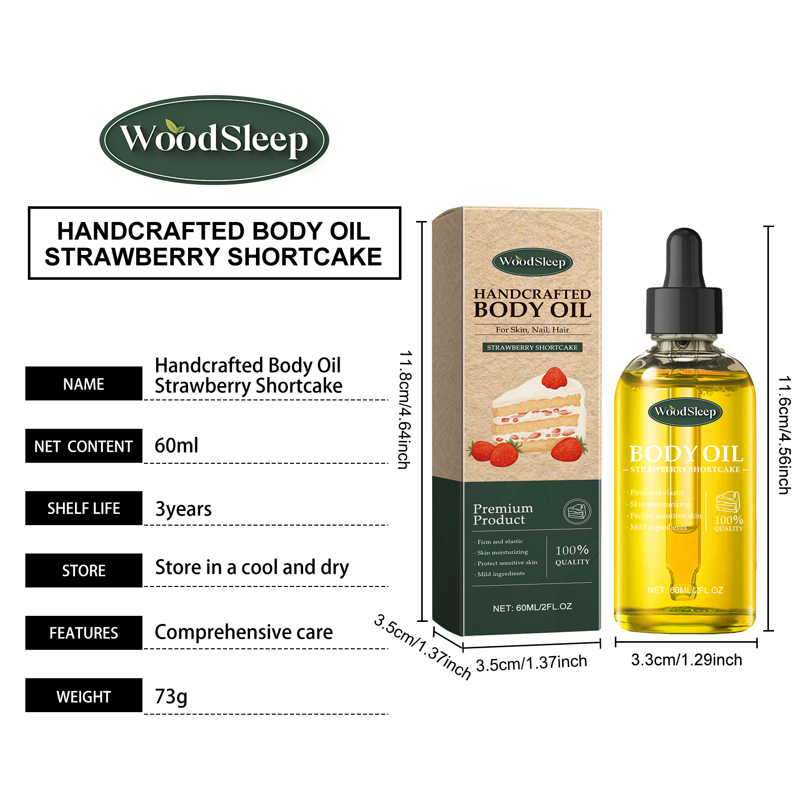 Our Strawberry Shortcake Body oil contains Jojoba seed oil and sweet almond oil. It can help condition and tighten the skin, making it look firmer and younger. It provides moisture to the skin and keeps it hydrated. Its use is very simple: Use as a hair care oil: first clean and blow dry the hair, take appropriate amount of this product evenly apply to the scalp and hair, massage gently with fingertips to promote absorption. Used as body oil: can be mixed with body lotion and applied to the whole body after bathing. Use as a nail protection oil: Clean your nails thoroughly first, apply this product directly to your nails, and wait for absorption. And it can be used all over the body to nourish.