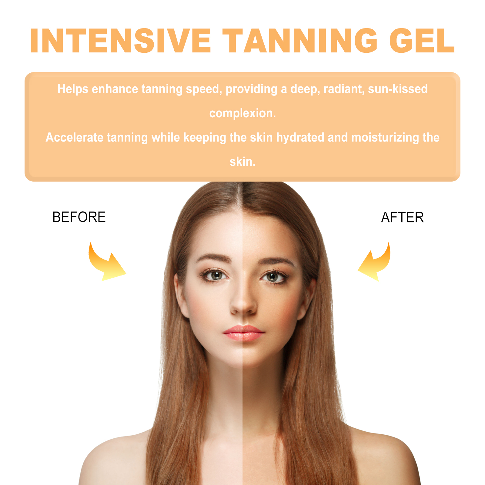 Our Intensive Tanning Gel contains Daucus Carota Sativa(Carrot)Root Extract, Cocos Nucifera(Coconut)Oil, Retinol. It helps you tan quickly while continuing to moisturize your skin during the tanning process, providing deep, rich, radiant tanned skin. The way to use it is simple: apply it evenly all over the skin before exposure to the sun. Create a natural summer tan that moisturizes against wrinkles, prevents light-induced skin aging, and gives you an even tan.