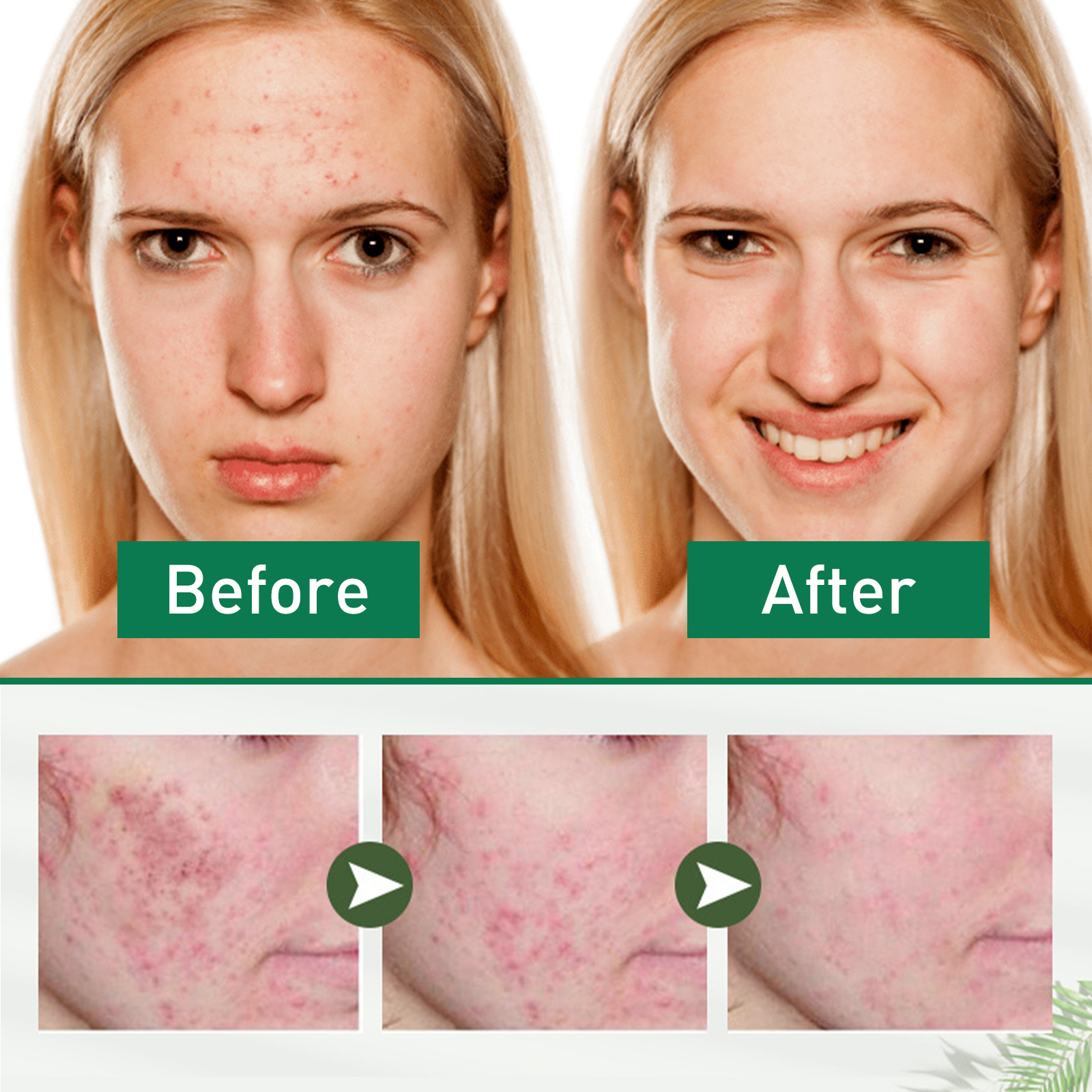 Our tea tree Oil Acne serum contains witch hazel, Rehmannia and yellow cedar bark. It can help improve acne blemishes and oil production, help prevent new pimples from developing, help hydrate the skin, remove mites, cleanse the skin, and is suitable for all skin types. Its application method is very simple: first clean the skin, then apply the cream to the dry skin, apply an appropriate amount of essential oil to the face, and gently massage until the skin is fully absorbed. After use, it helps to moisturize the skin, form a water-locking film, make the skin smooth, hydrate from the inside, repair and soothe, and brighten the skin.