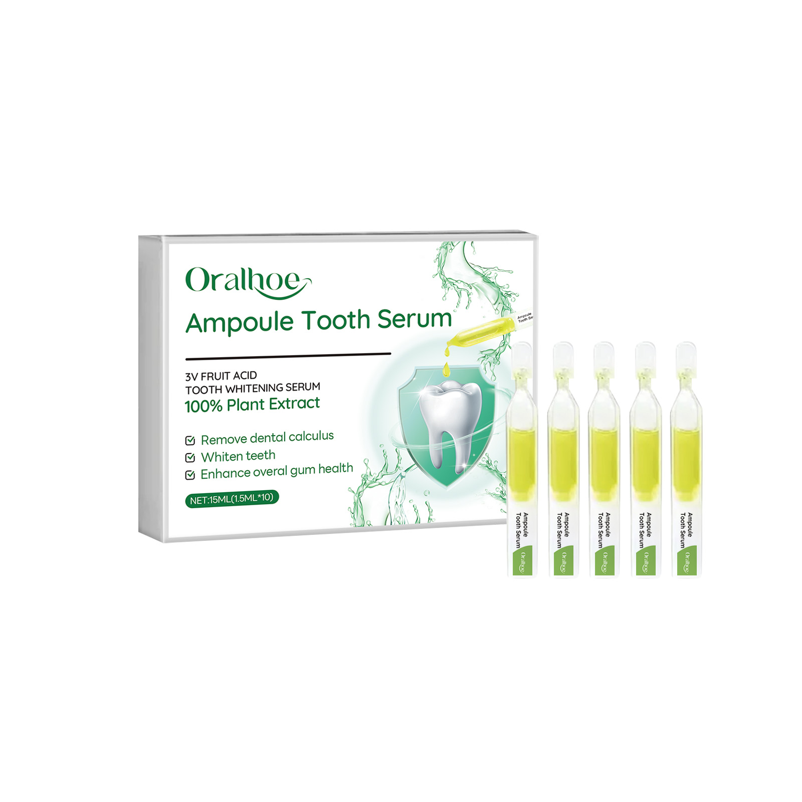 Our Teeth whitening serum contains baking soda, xylitol, lemon extract. It can help remove tooth stains, whiten teeth, make your teeth whiter, smile brighter, improve oral health, reduce bad breath, reduce gum inflammation, and make teeth healthier. Its use is simple: take out the serum, turn it on, squeeze the serum onto your toothbrush, or apply it directly to your teeth, brush it the right way for 2-3 minutes, and rinse your mouth with water. And it whitens your teeth.