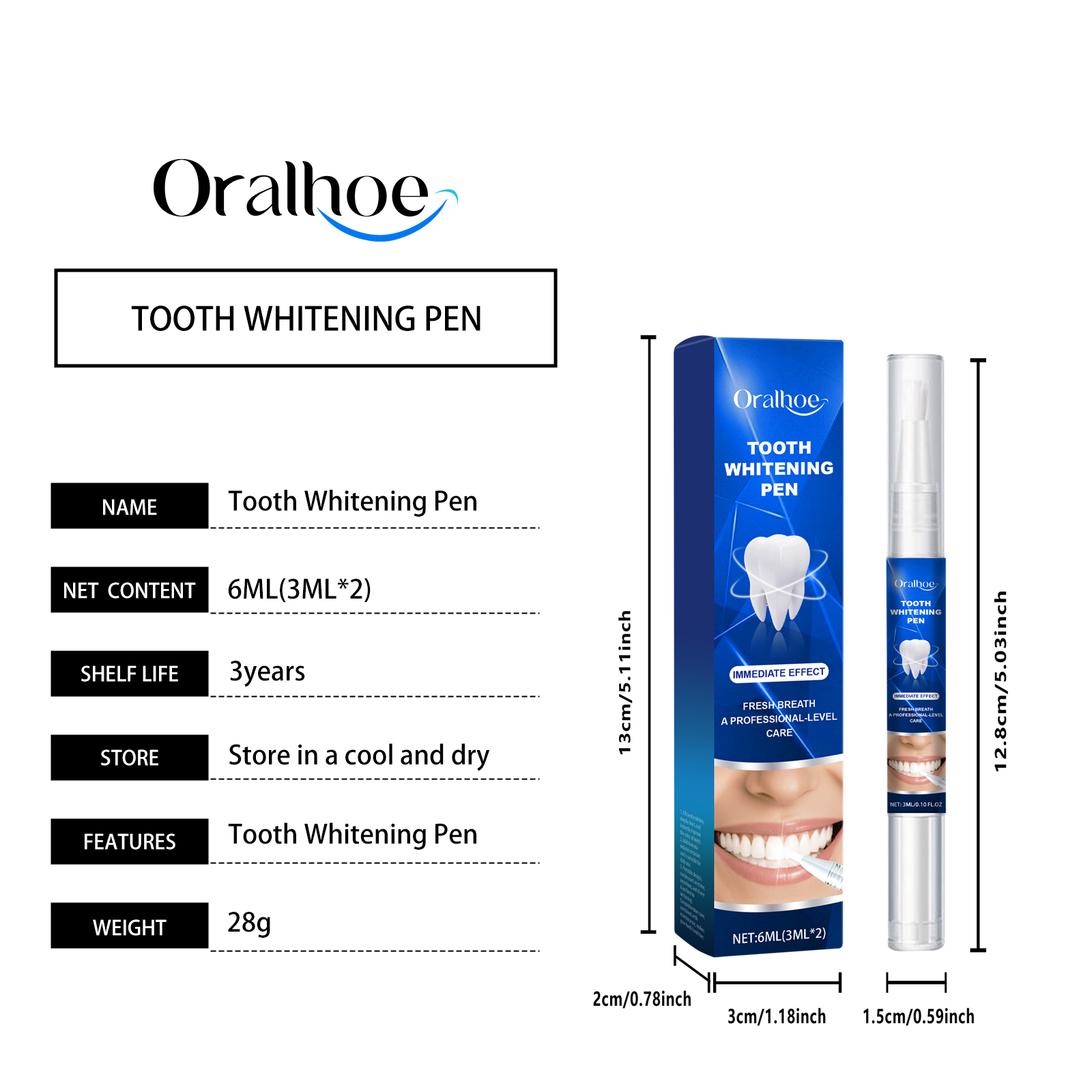 Our teeth brightening pens contain sodium bicarbonate, white willow bark extract, malic acid. It can gently and effectively break down tooth stains and regulate the acid-base balance in the mouth. Gently dissolves dirt and promotes tooth surface cleaning. Deep nourishment, forming a protective layer to protect teeth and gums health. Its use method is very simple: 1. Open the bottle cap, apply the product directly on the teeth with the tip of the pen; 2. Wait 5-10 minutes and rinse your mouth with water; 3. Use once in the morning and once in the evening. Teeth brightening pen instantly whitens, without a sweep, witnessing dazzling changes in an instant. Pen design, accurate stain location.