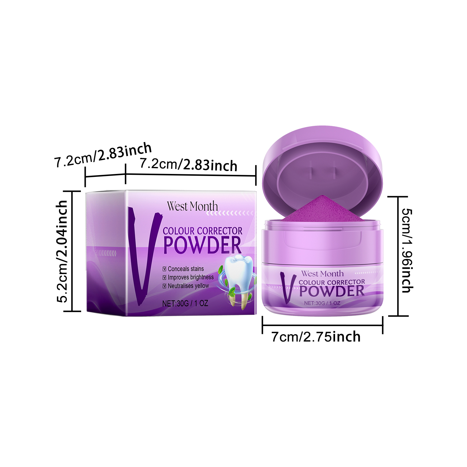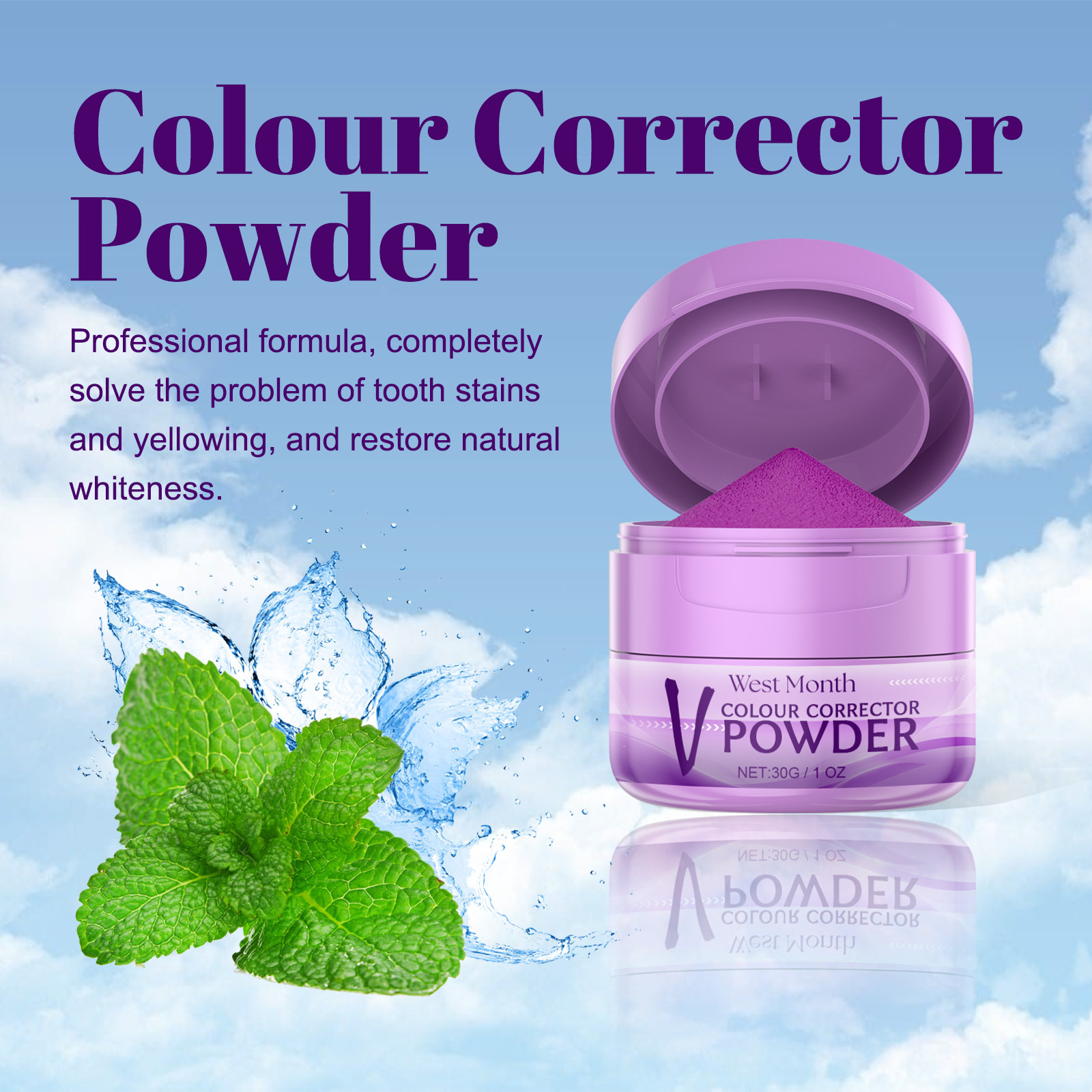 Our Colour Corrector Powder contains Glycerin, Poria Cocos Powder, Lonicera Caprifolium (Honeysuckle) Flower. It can completely solve the problem of plaque and yellowing, and restore natural whiteness. Its use method is very simple: apply tooth powder on the toothbrush, brush with the correct steps for 2 minutes, and rinse with water after brushing. It can awaken the bright white luster of your teeth and make your smile more attractive and eye-catching.