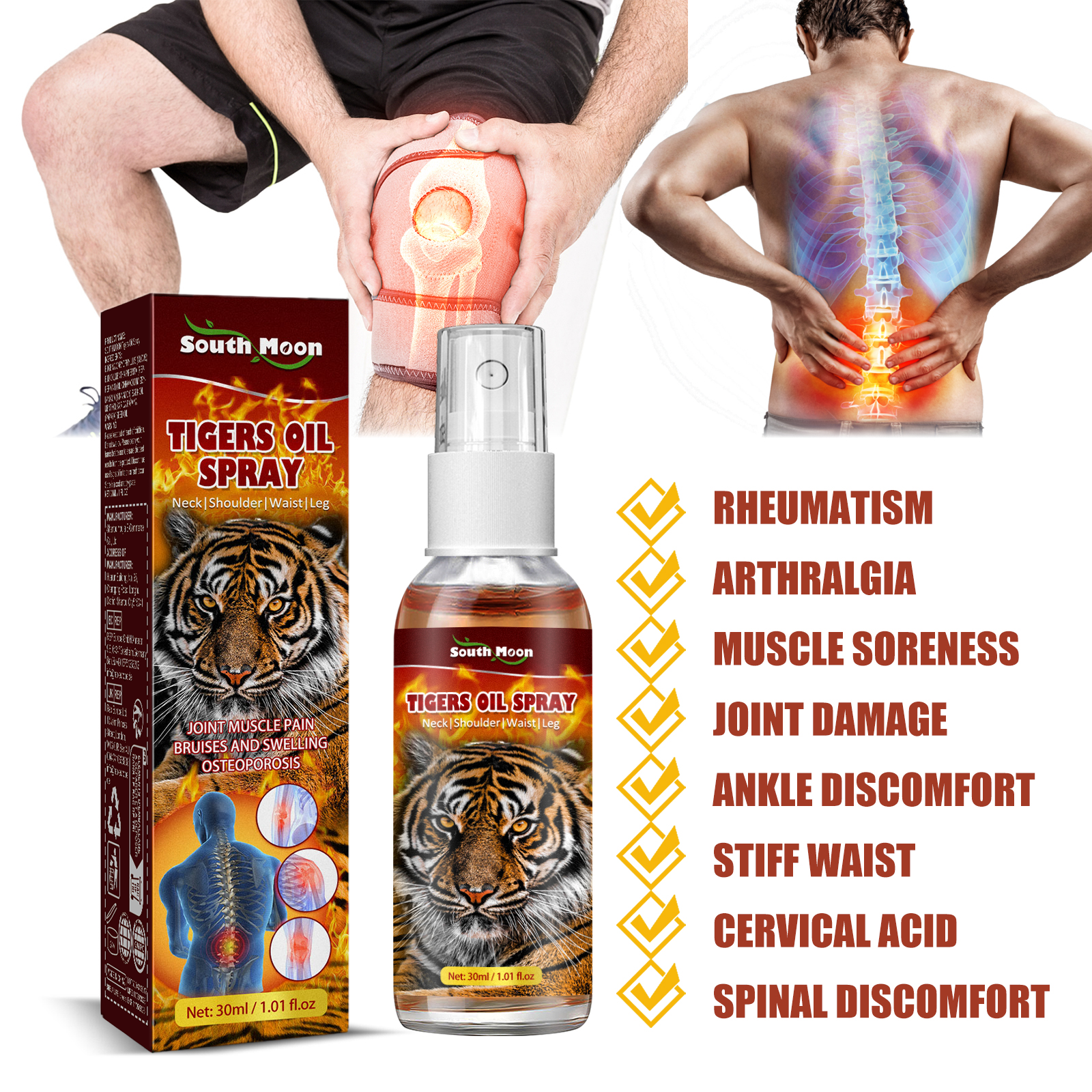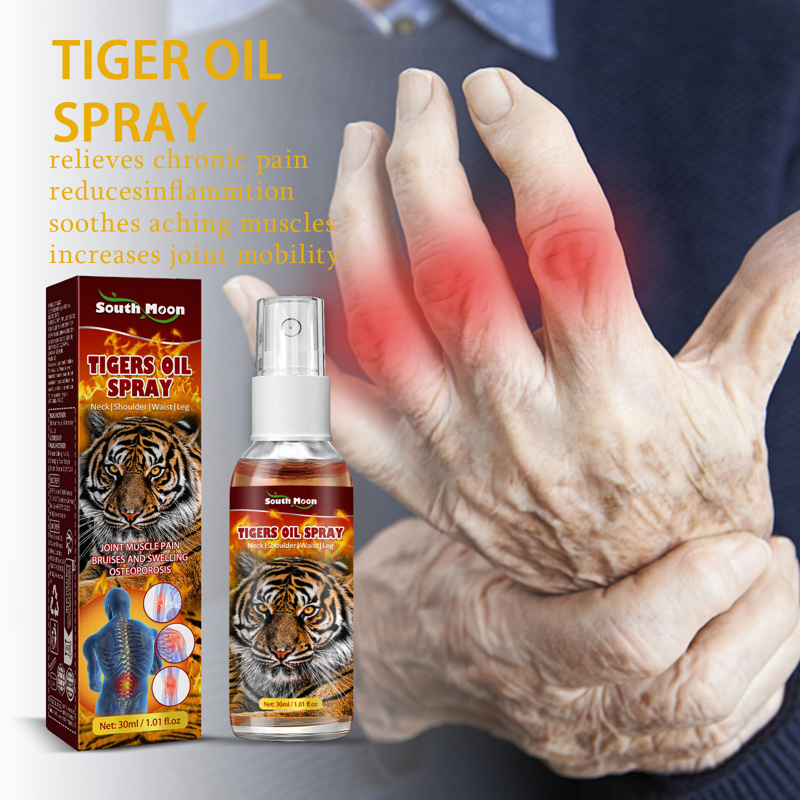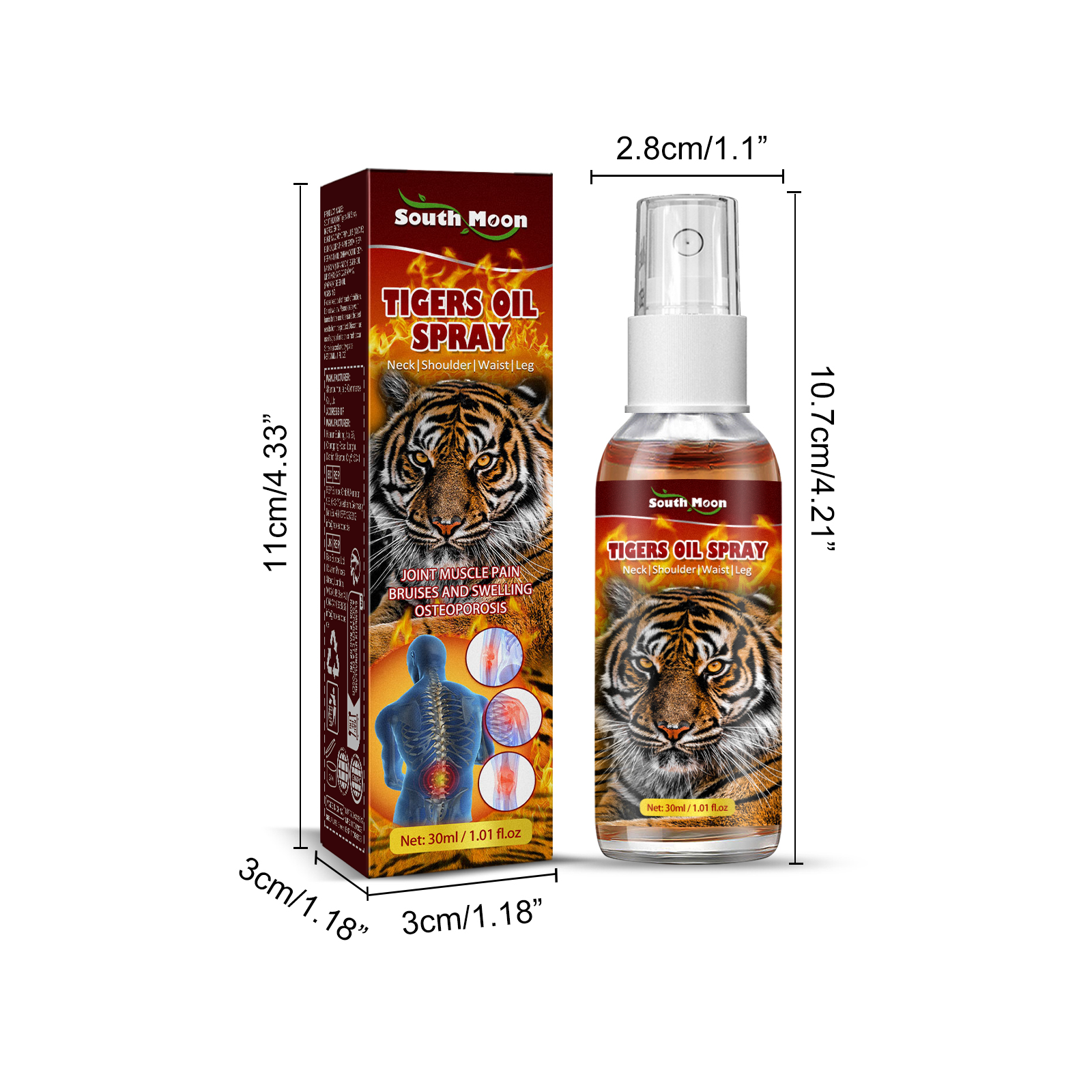 Our Tiger Oil Spray contains clove oil, peppermint oil, cinnamon oil. It can quickly repair damaged muscles, joint pain, congestion, rheumatism, arthritis, shoulder, neck, lower back and back pain. Its use method is very simple: spray the product on the pain area, massage until completely absorbed, 3-4 times a day, 7 days for a course of treatment, adhere to use, the effect will be more obvious. It can relieve chronic pain, reduce inflammation, relieve painful muscles, and increase joint motion.
