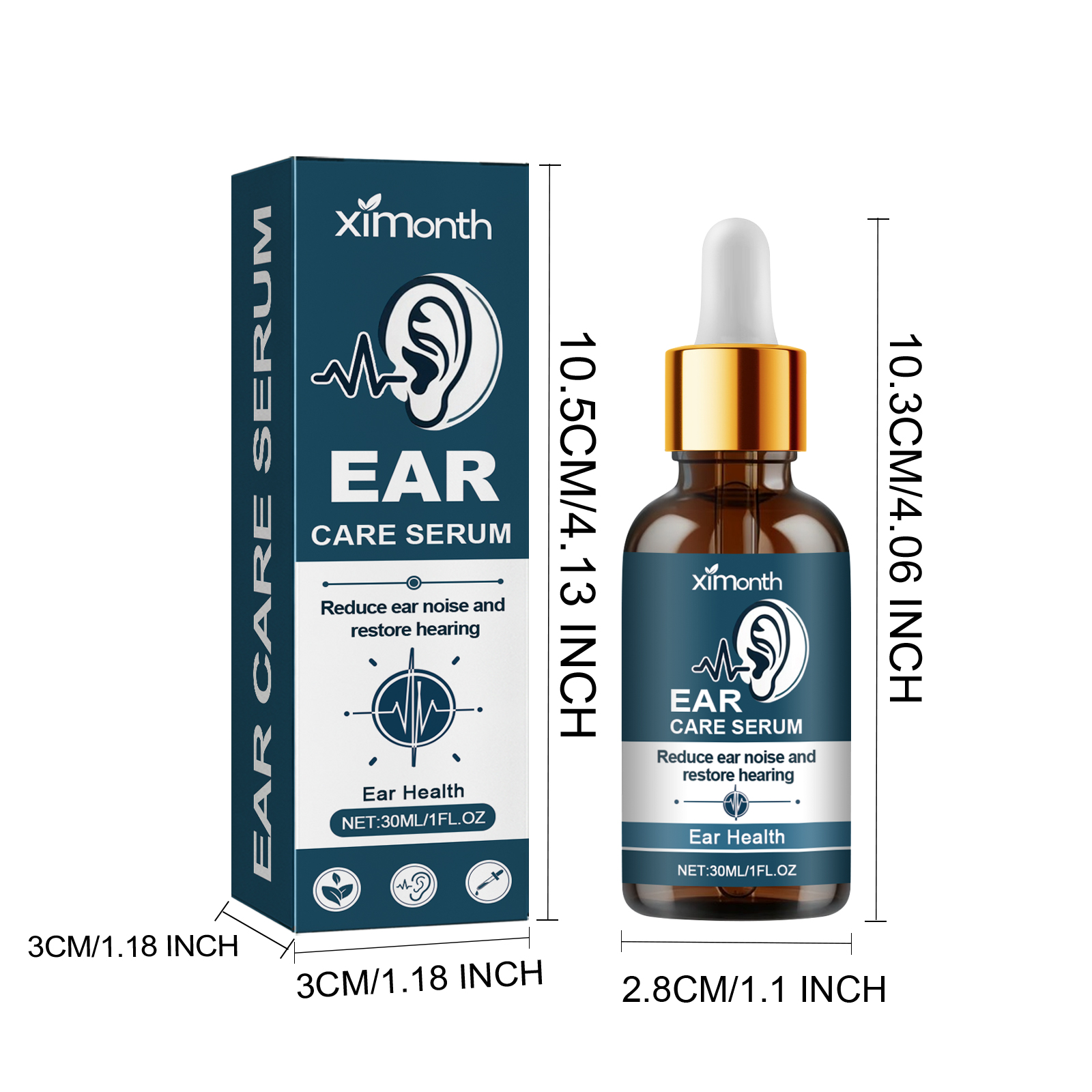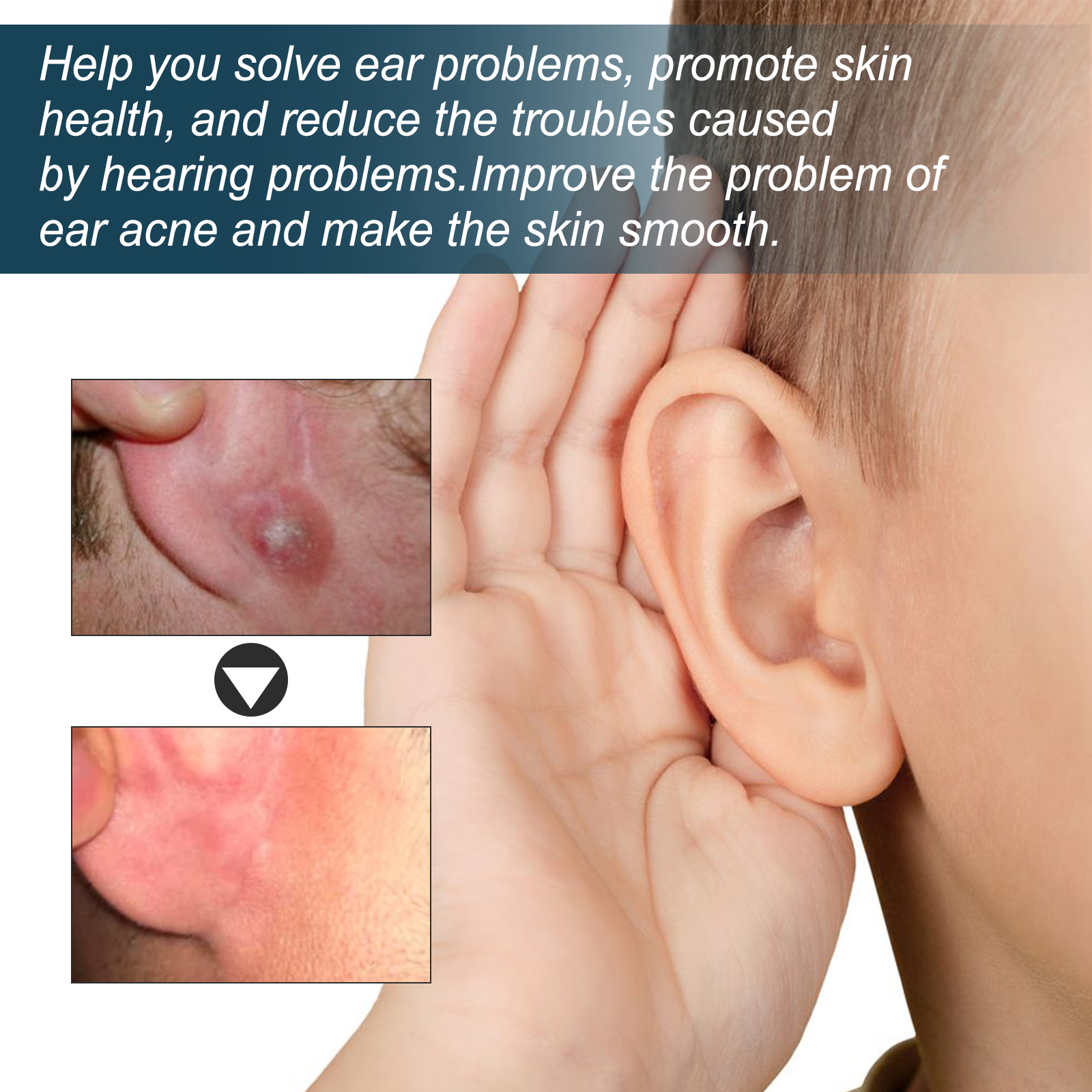 Our Ear Care Serum contains Ginkgo biloba extract, licorice extract, garlic extract. It can reduce ear discomfort, effectively relieve the symptoms of tinnitus, reduce ear sensitivity to noise, and improve ear acne problems. The way to use it is simple: clean and dry the ear, use an essence dropper to drop 1-3 drops of essence into the ear canal, lie on your side for 3-5 minutes, let it fully absorb, and then wipe off the excess essence. It can help you solve ear problems, promote skin health, reduce the annoyance caused by hearing problems, improve the problem of ear acne, and make the skin smooth.