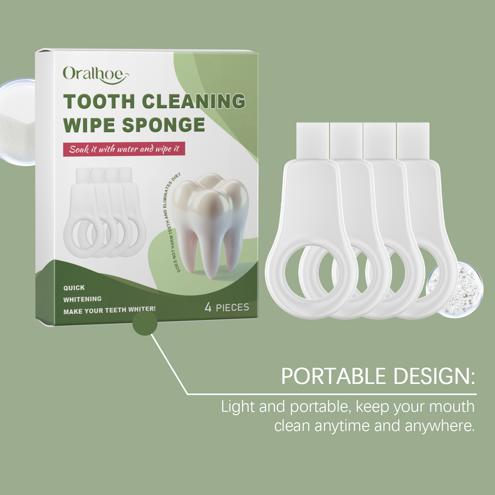 Our sponge tooth erasers contain nano melamine cotton and polypropylene. It can deeply clean stains on the surface of teeth. Effective removal of stubborn stains, such as coffee, tea stains, restore white teeth. Its use method is very simple: 1. Soak the sponge in water, and then gently wipe the dirt on the surface of the teeth, and then gargle; 2. Please wipe with the side first, and then wipe. 3. Gaps between teeth and rough surfaces on the sides of teeth cannot be cleaned with this sponge. Do not wipe the surface of the tooth with the narrow side of the sponge. Not suitable for dentures. Deep clean to remove stubborn stains. Comfortable to hold and easy to operate.