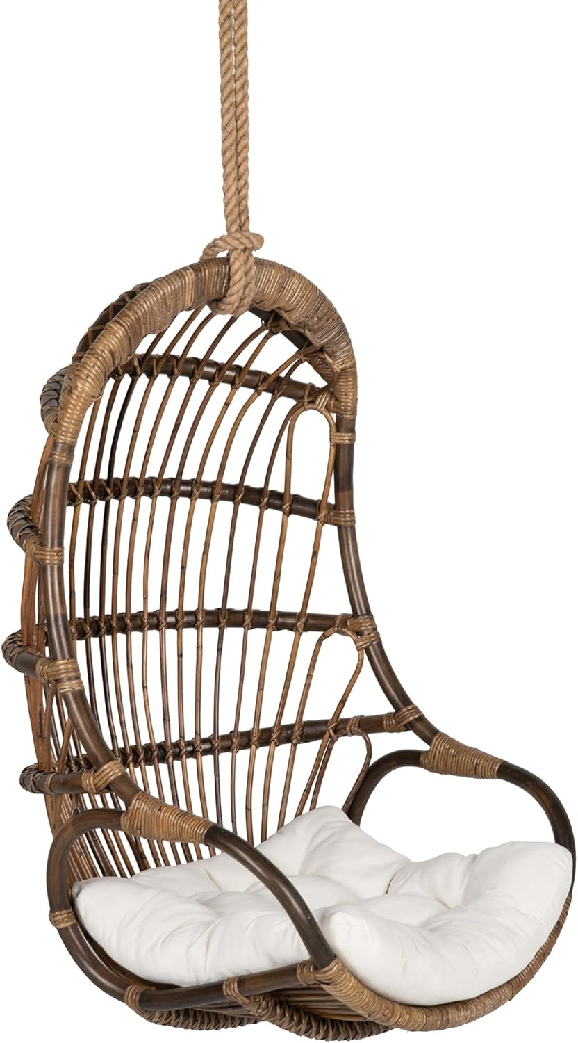KOUBOO pairs style with functionality to transform your space. The Hanging Rattan Swing Chair has a high-quality woven design and is available in three neutral colors that give your room a beachy boho aesthetic. Each piece is unique and is handwoven by artisans using natural rattan and age-old techniques. Bring the ultimate form of relaxation to your home. Hang this swing chair in your sunroom, living room, bedroom, flex room, or other cozy indoor nooks. Made with high-quality natural materials, like rattan throughout the chair and the strong hemp rope, you can safely and comfortably sit back and relax. The chair has a weight capacity of 250 lbs. With a soft and durable 24” x 26” seat cushion, you have plenty of room to sit in various positions comfortably to enjoy a good book or watch the sunset. The chair is easy to clean and maintain. Wipe rattan clean with a damp cloth and spot or dry clean the tufted seat cushion. Do not leave the chair exposed to the elements. Hanging hardware is not included, and professional installation is required.