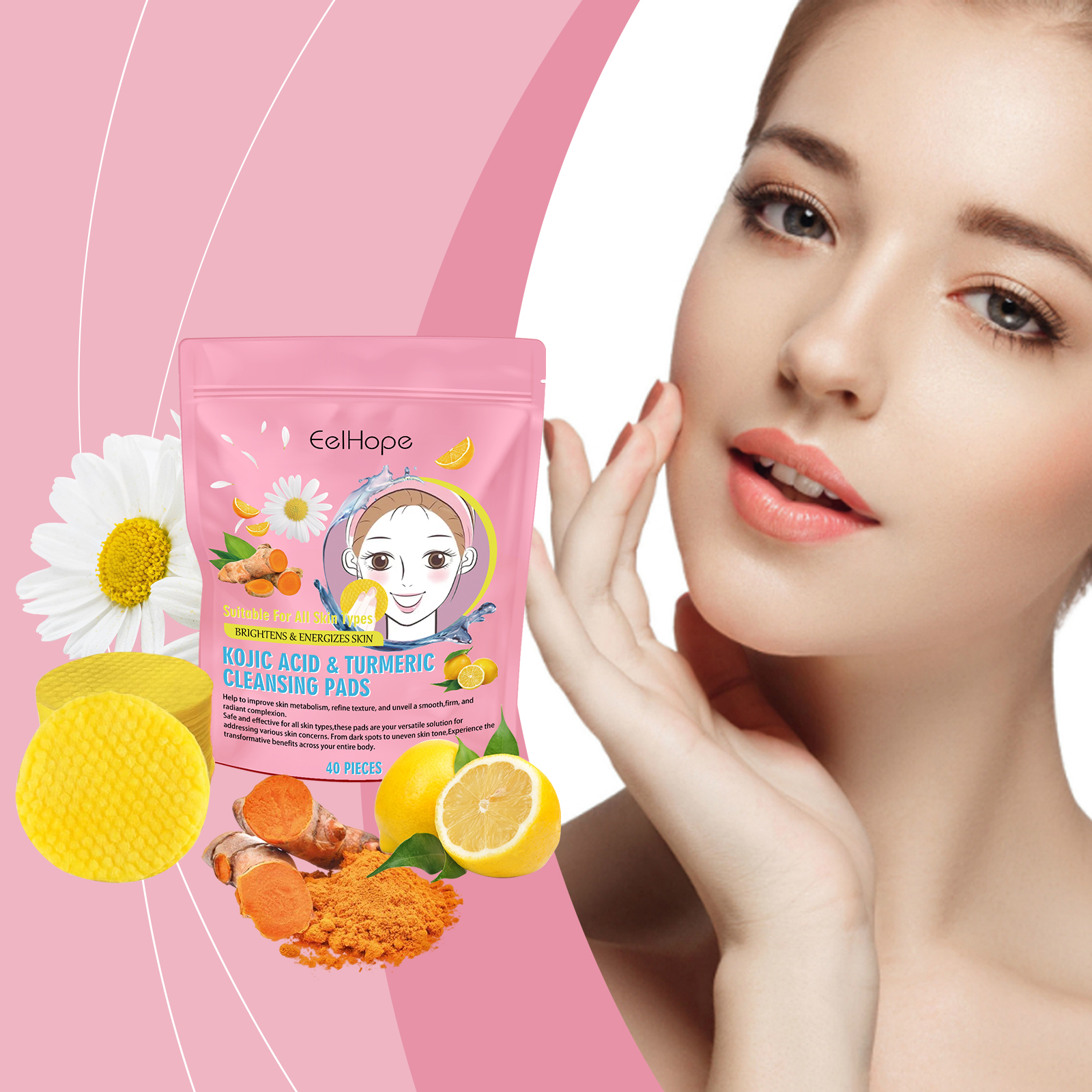 Turmeric Cleansing Pads Gentle Facial Cleansing Hydrating Moisturizing Skincare Pads