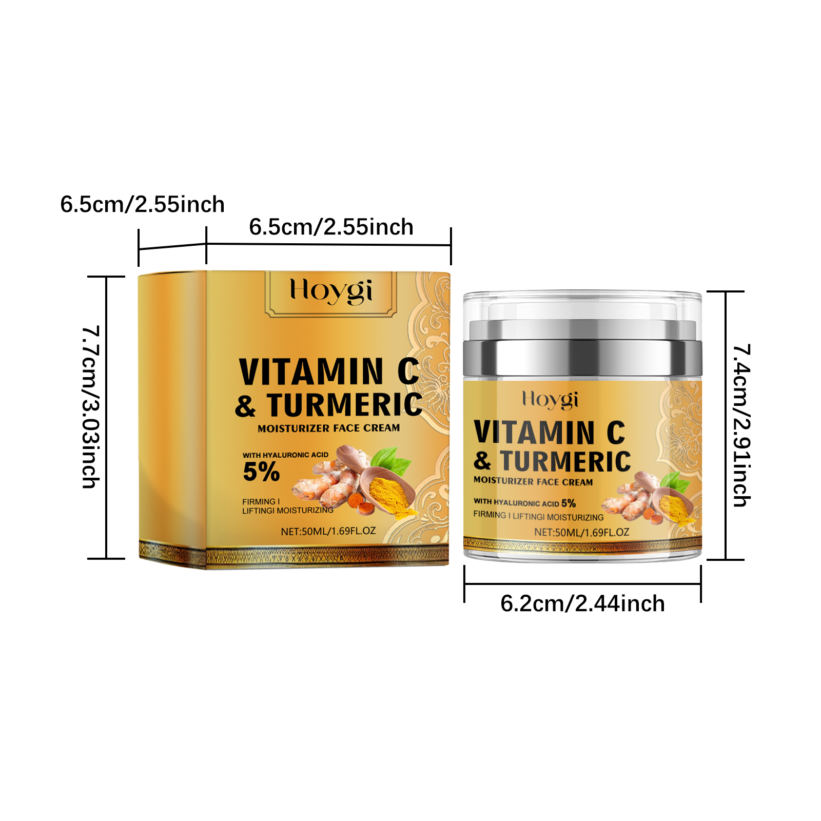 Our Moisturizer Face Cream contains Curcuma Longa (Turmeric) Root Extract, Hyaluronic Acid, Hydrolyzed Collagen. It can deeply moisturize the skin, promote the production of collagen, make the skin firmer, reduce the appearance of fine lines and wrinkles, and make the skin smoother and more delicate. The way to use it is very simple: after cleansing, evenly apply the cream to the face and gently massage until it is completely absorbed. It can reduce facial wrinkles, support skin elasticity and improve skin firmness.
