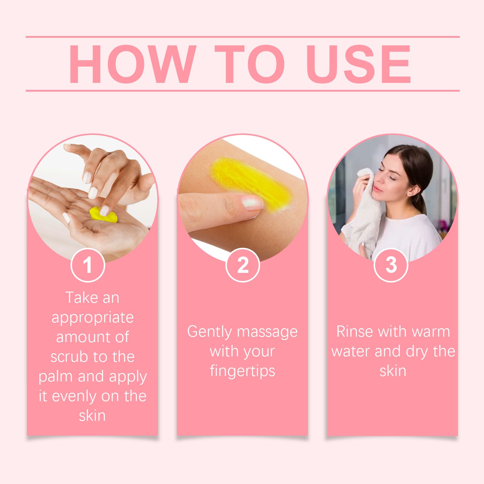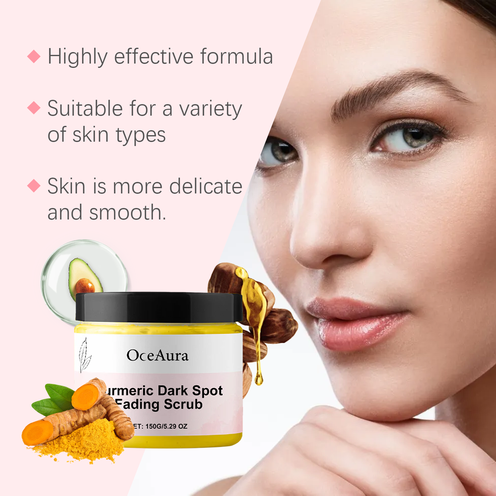 Our turmeric beauty scrub contains turmeric root extract, avocado tree oil, Jojoba seed oil. It can effectively lighten dark spots and pigmentation and even out skin tone. Jojoba oil helps to lighten the skin. Its use method is very simple: 1. Take an appropriate amount of scrub in the palm, evenly smear on the skin; 2. Massage gently with fingertips; 3. Rinse and dry skin with warm water. Contains avocado oil and gently exfoliates. Turmeric root extract deeply nourishes the skin.