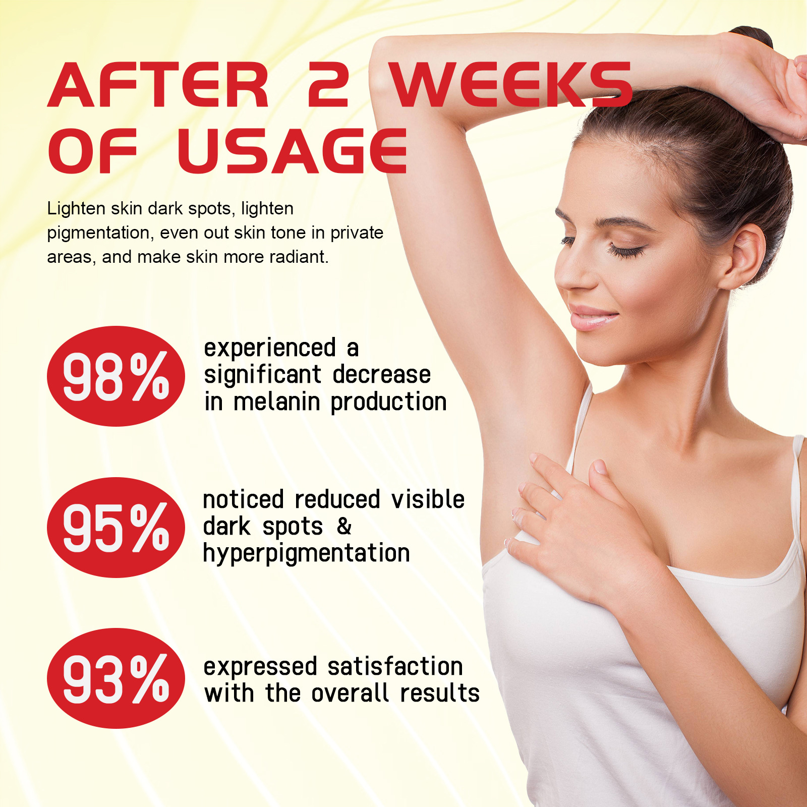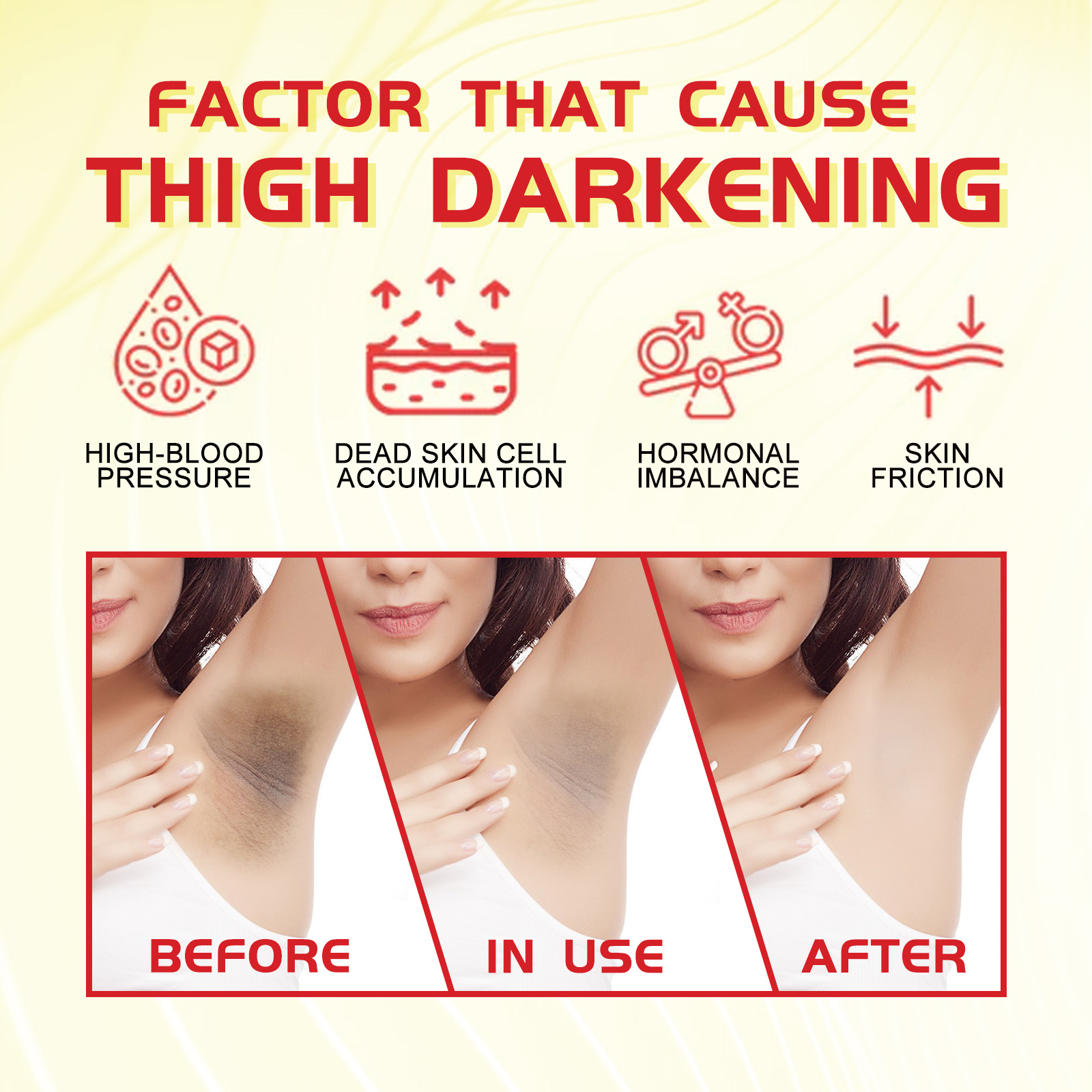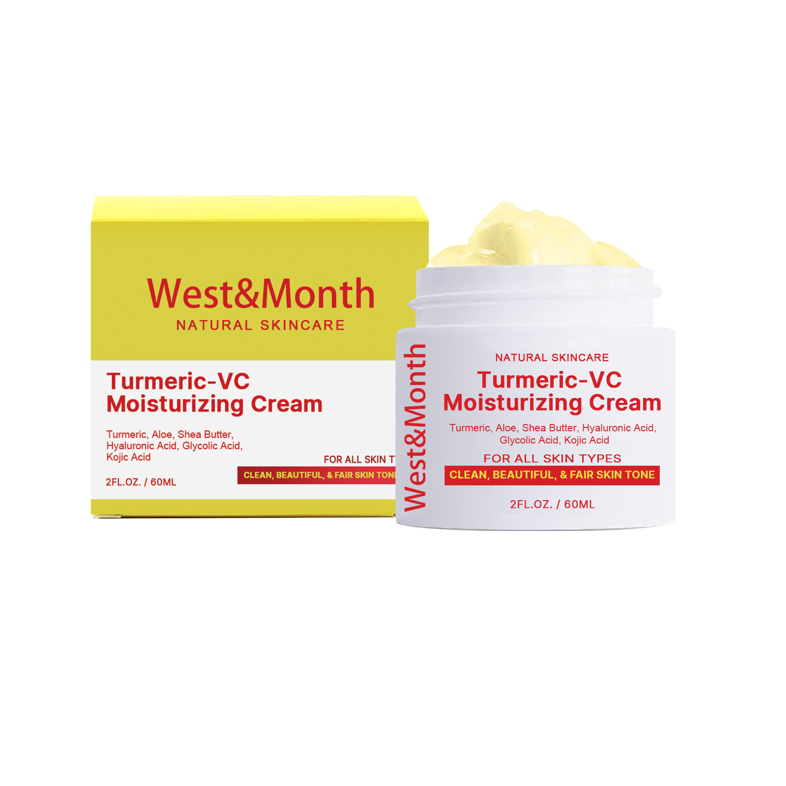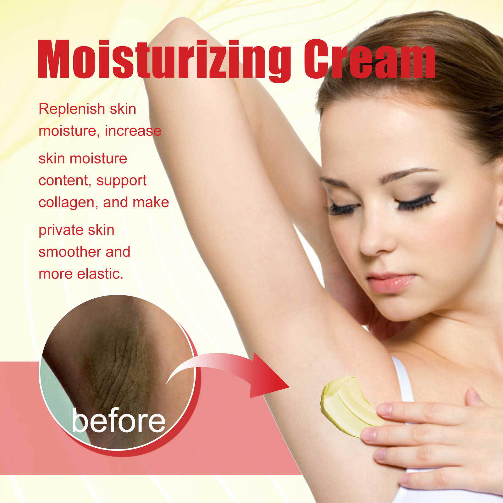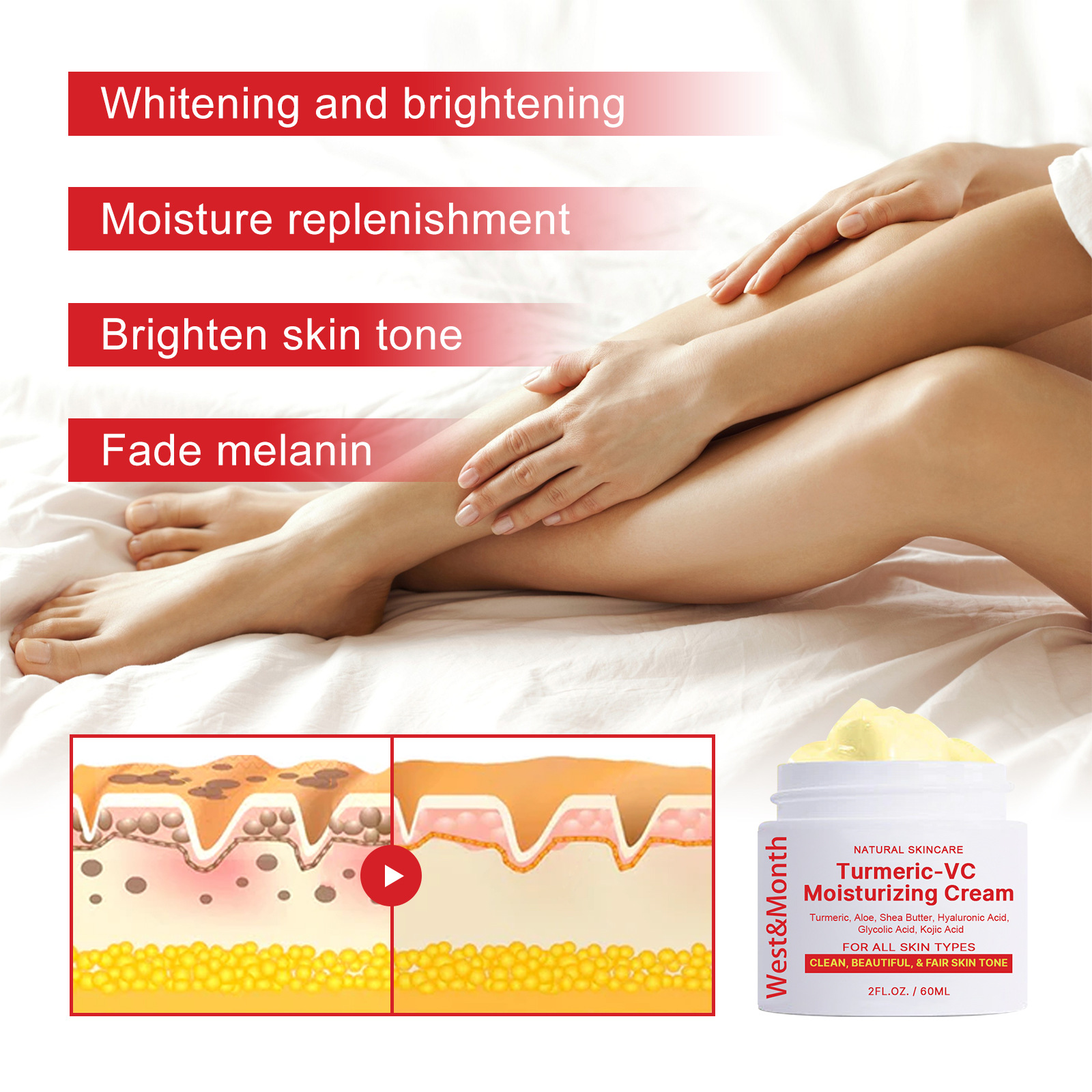 Our turmeric VC whitening cream contains kojic acid, glycolic acid, turmeric extract, shea butter. It can replenish skin moisture, increase skin water content, replenish collagen, and make underarm skin smoother and more elastic. Its use method is very simple: take an appropriate amount of cream evenly apply on the skin, use the hand in a circular motion, gently massage until absorbed, clean and dry the private skin, daily use can get better results. And can whiten and brighten, replenish water, lighten skin color, fade melanin.